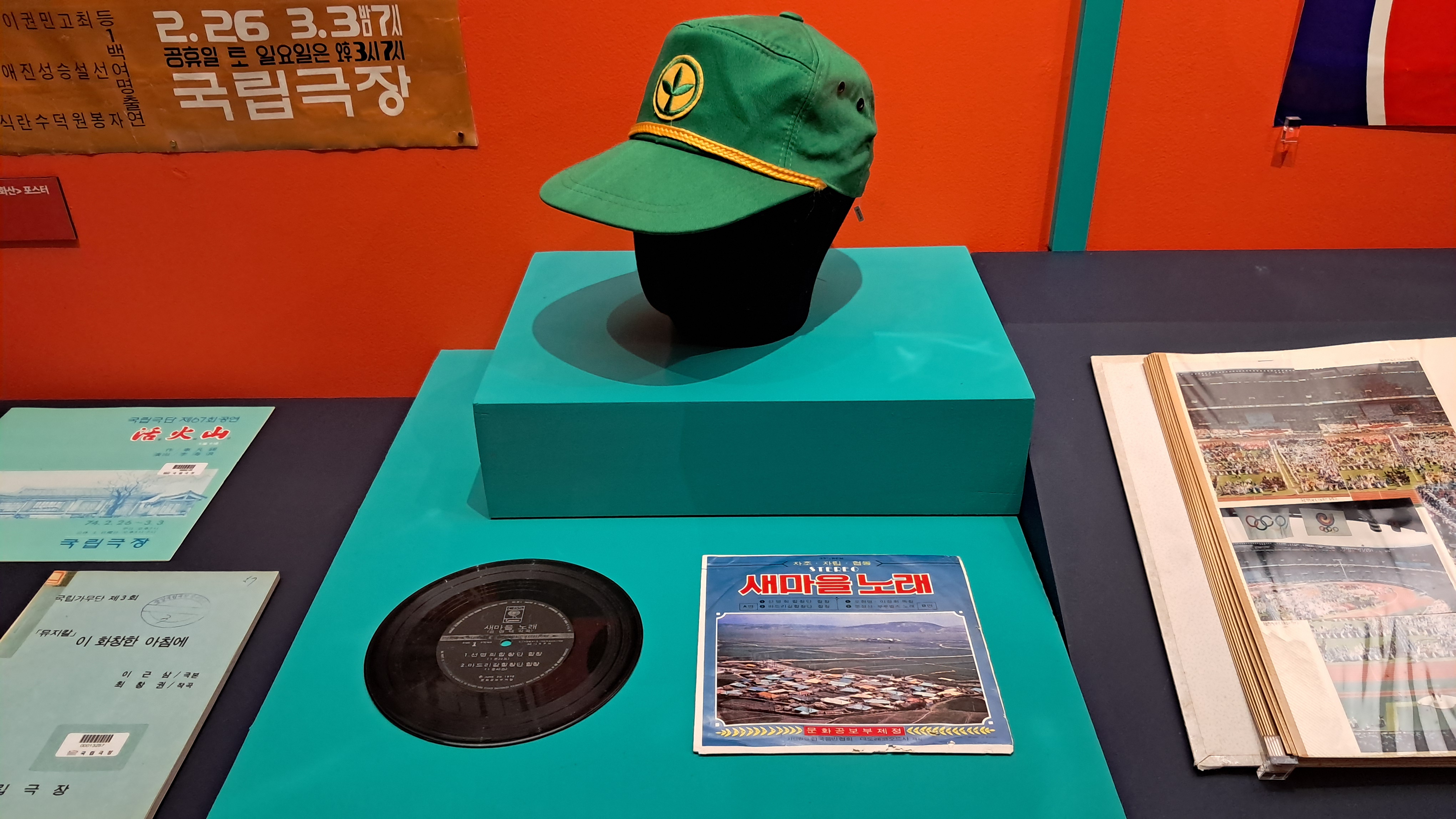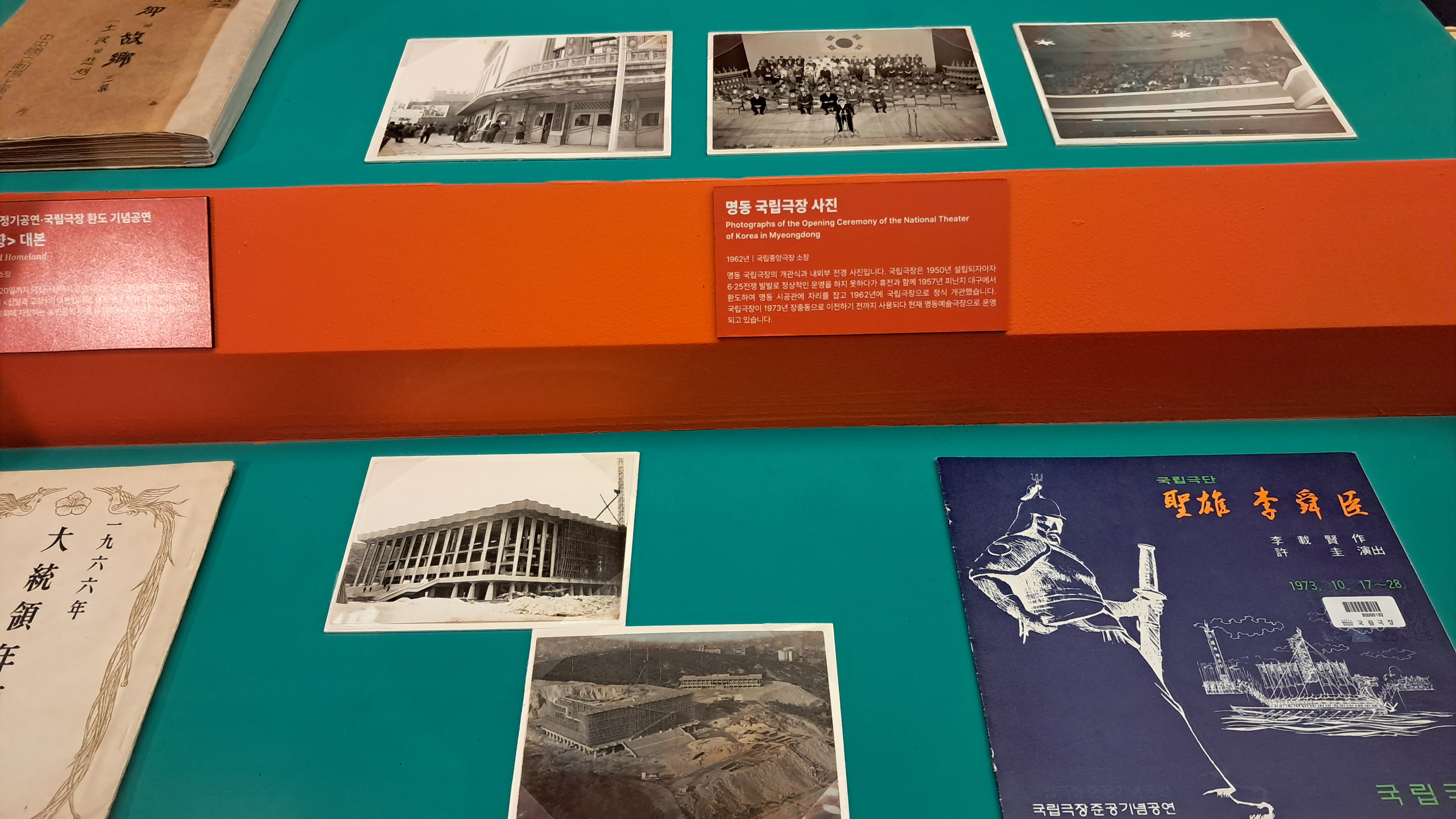 장충동으로 이전(1973년) 모습과 준공기념 공연 프로그램북이 전시되어 있습니다.