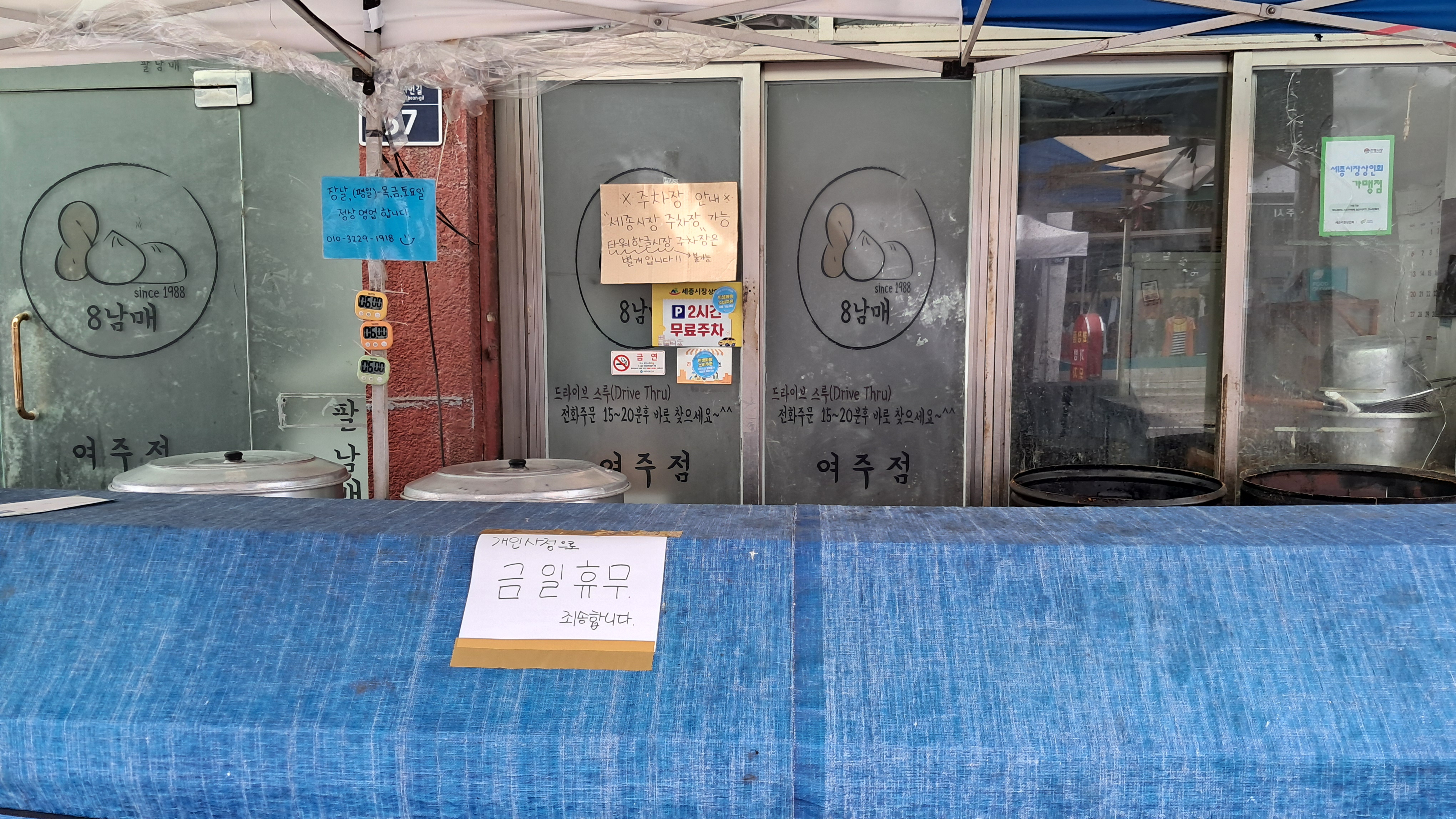 시내의 시장에 있는 만두집이 오늘은 쉽니다.