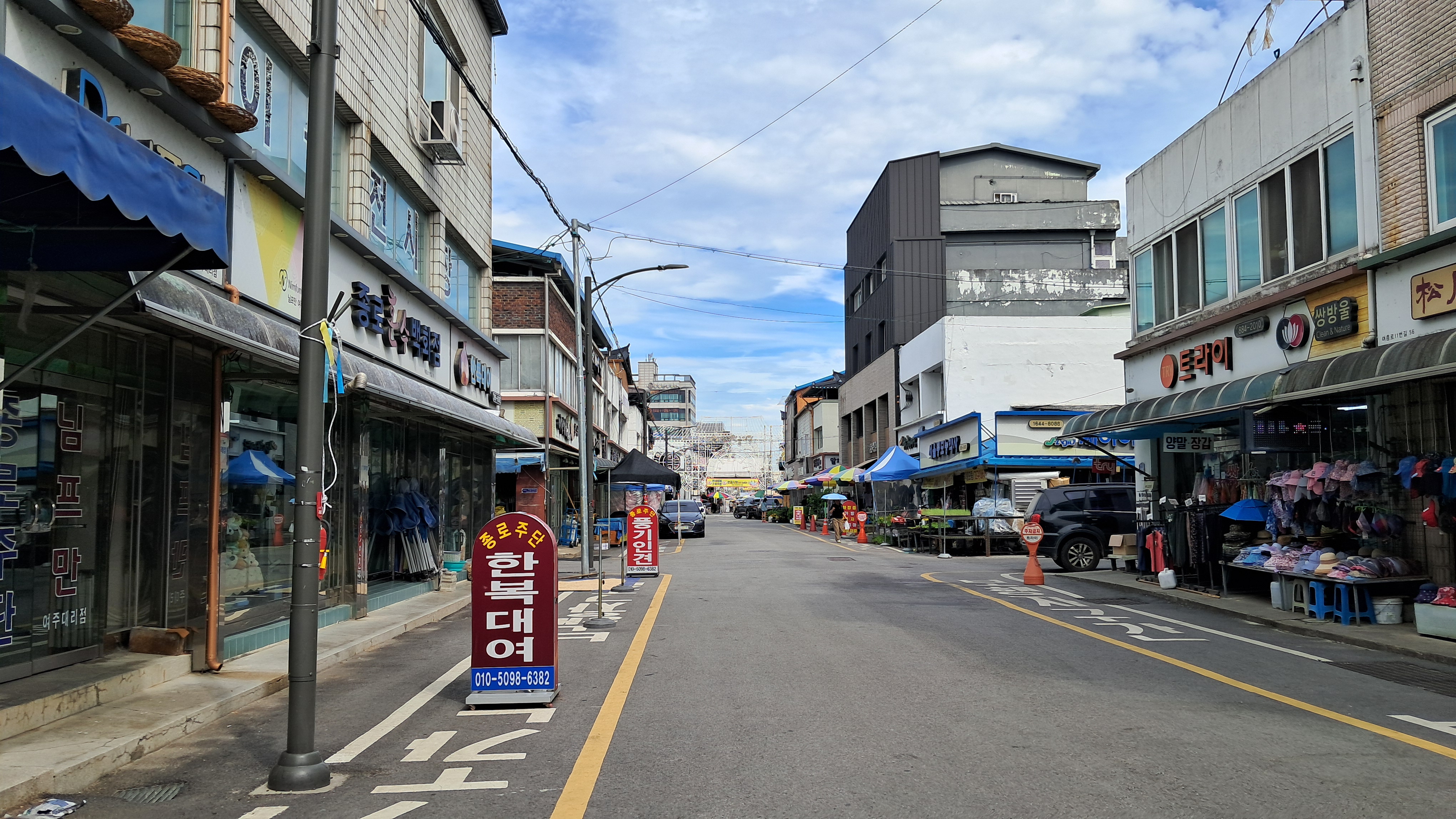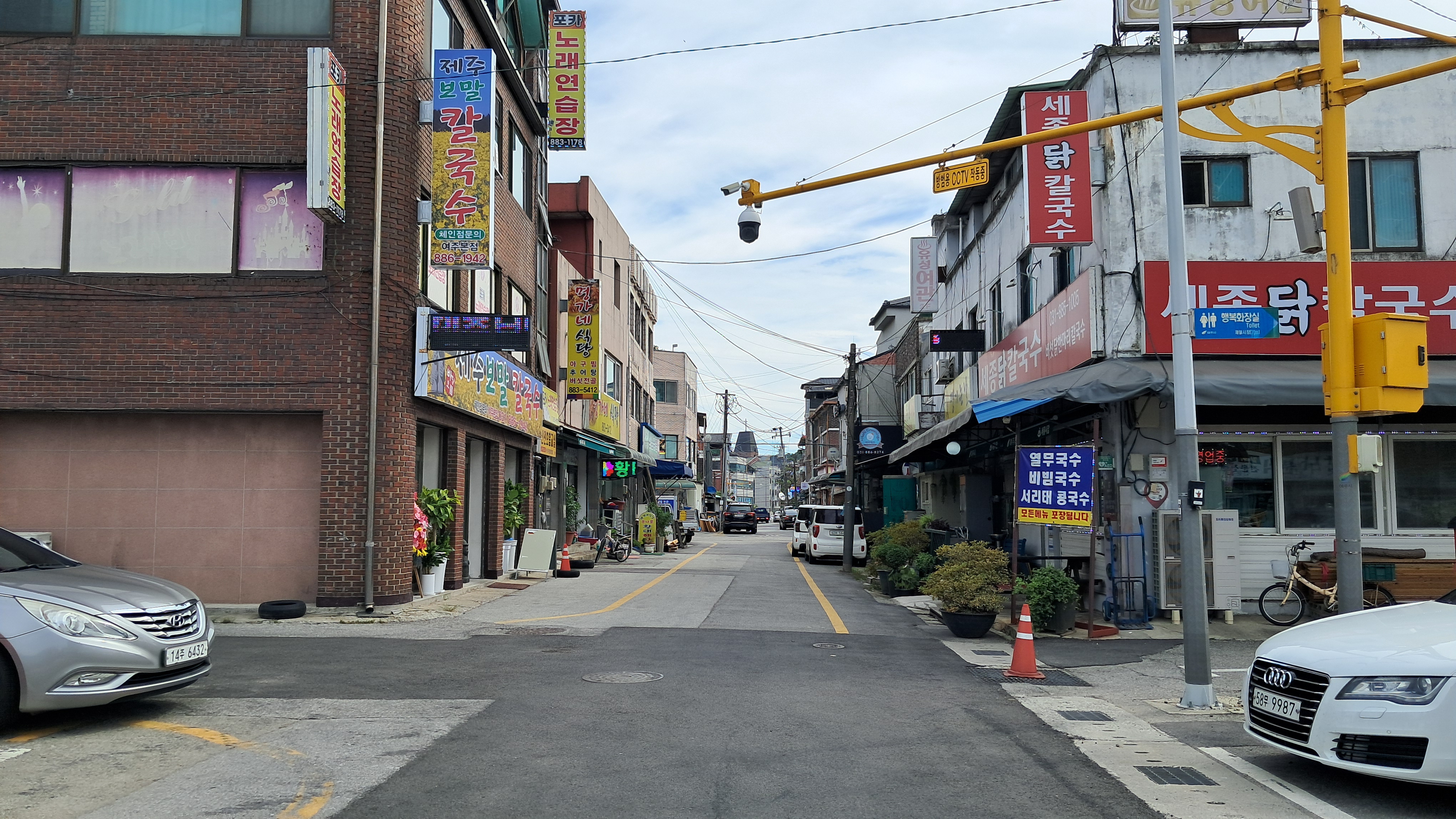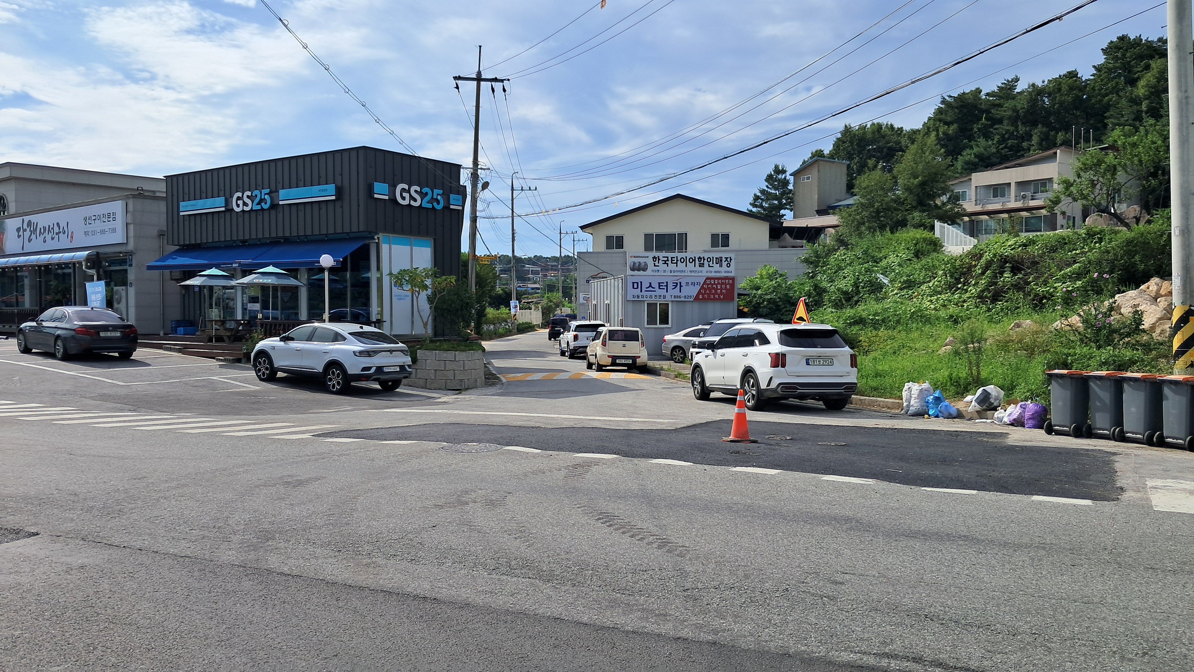 도로를 만나면 길을 건너 편의점 골목으로 들어갑니다.
