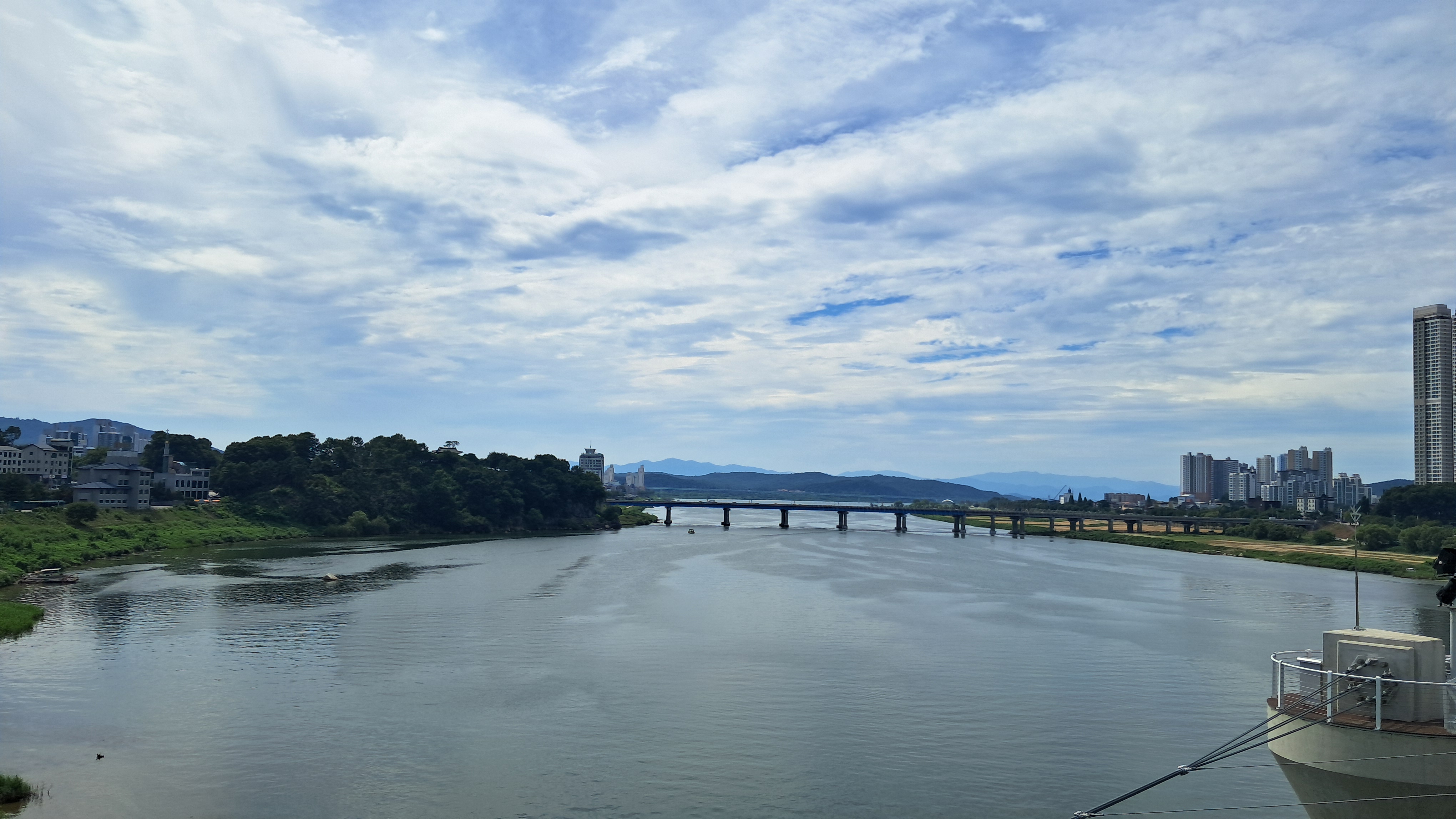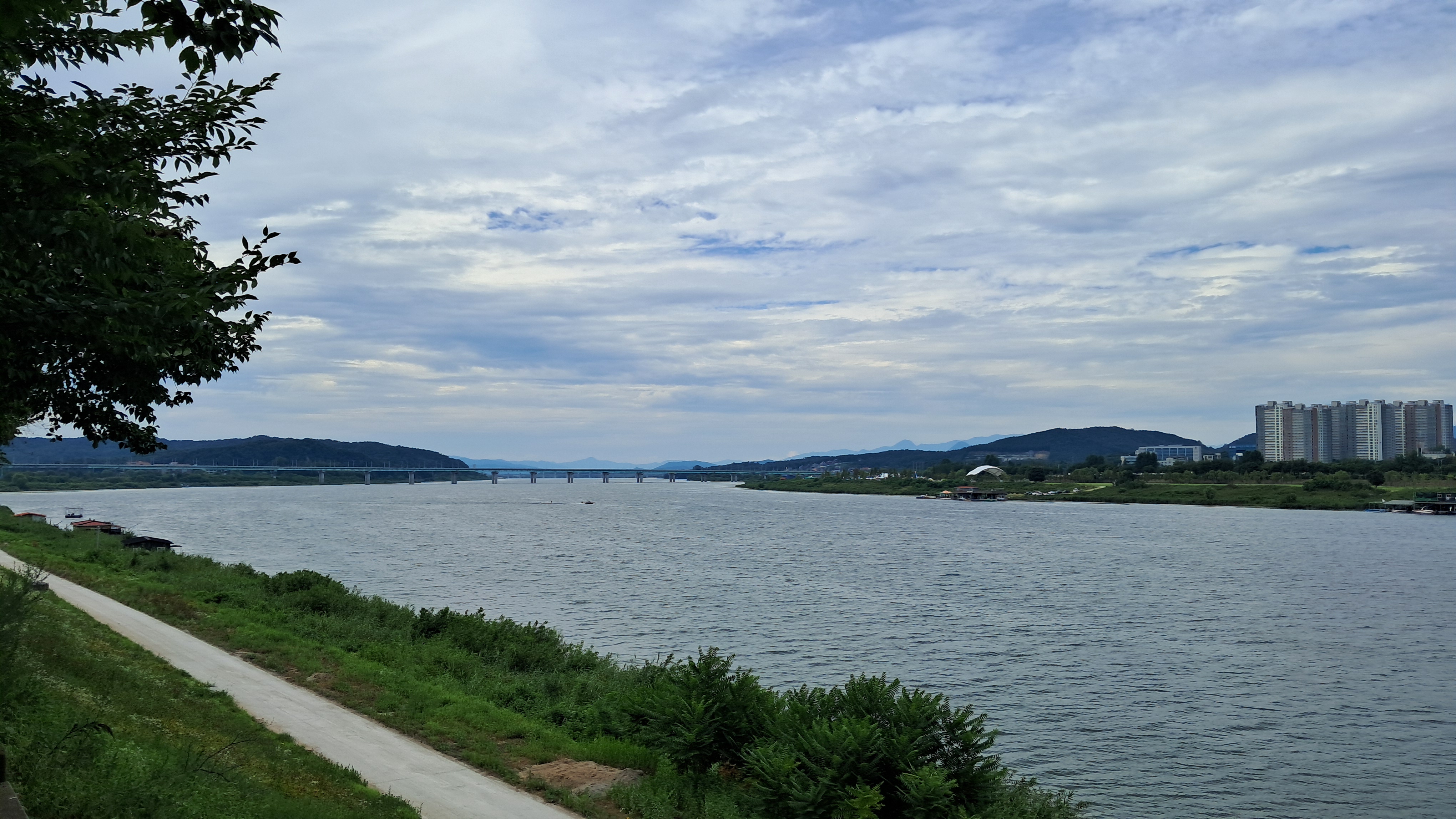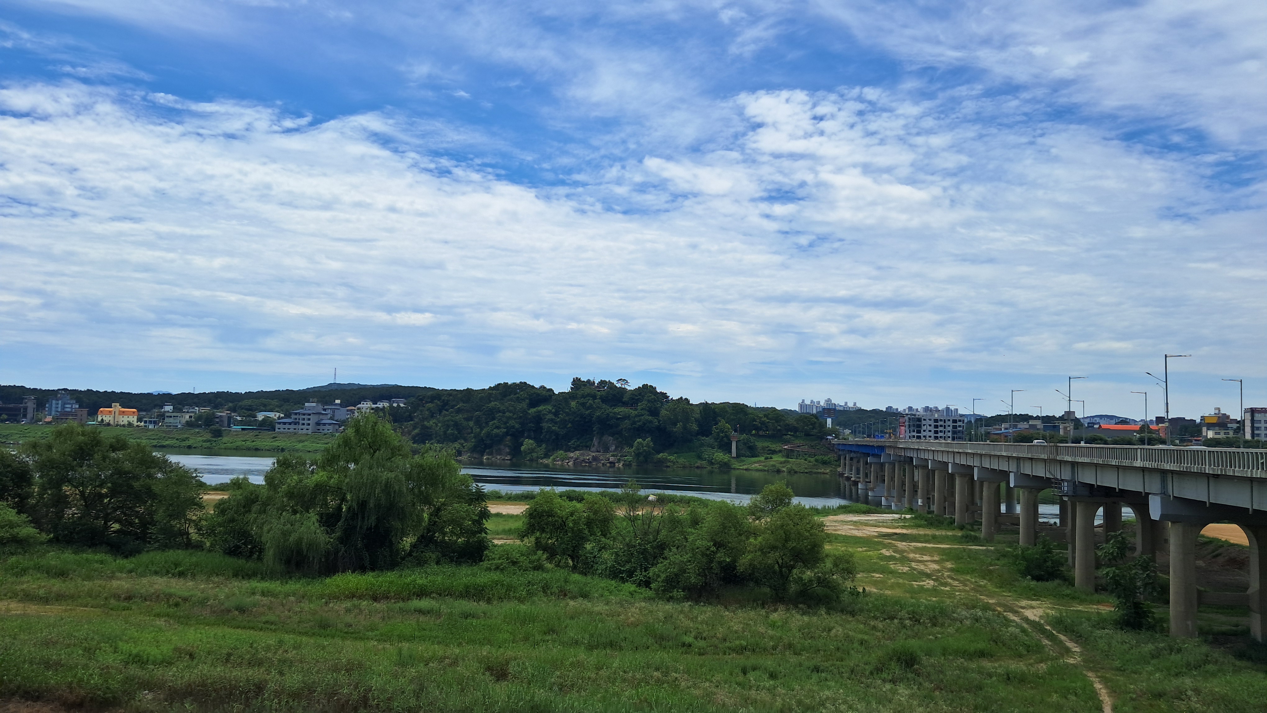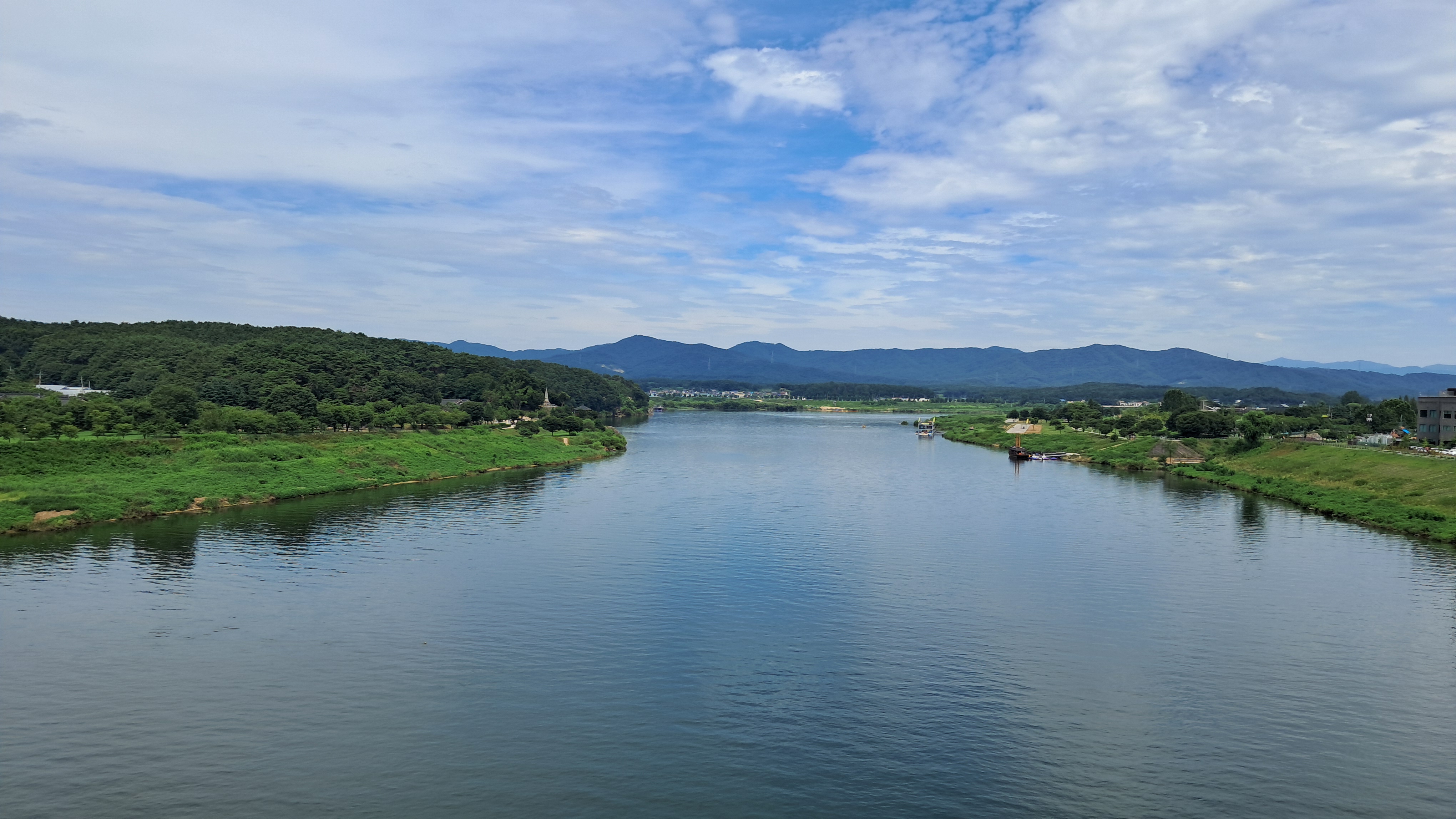 여주시내를 흐르는 남한강 강물은 폭이 매우 넓습니다.