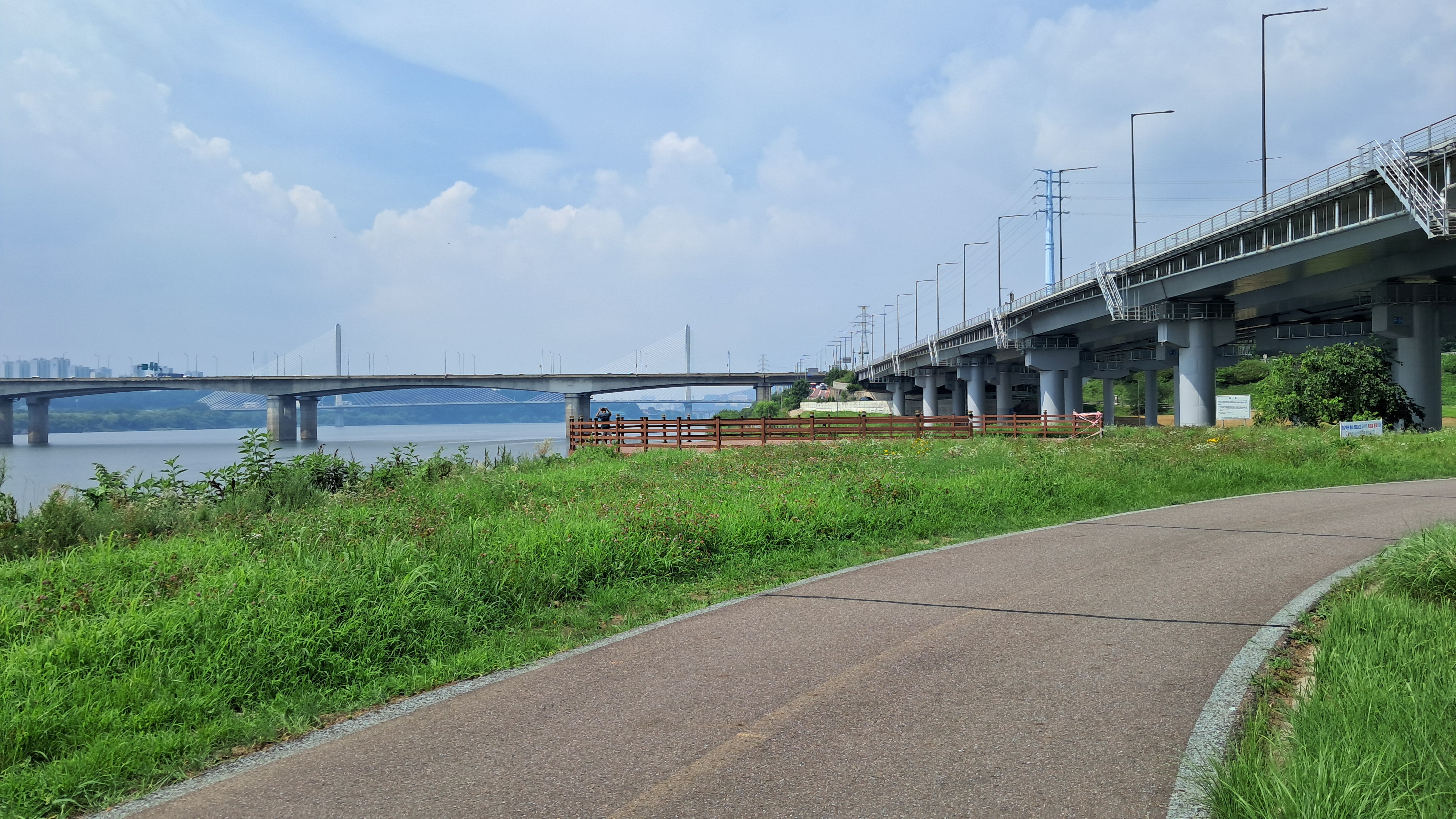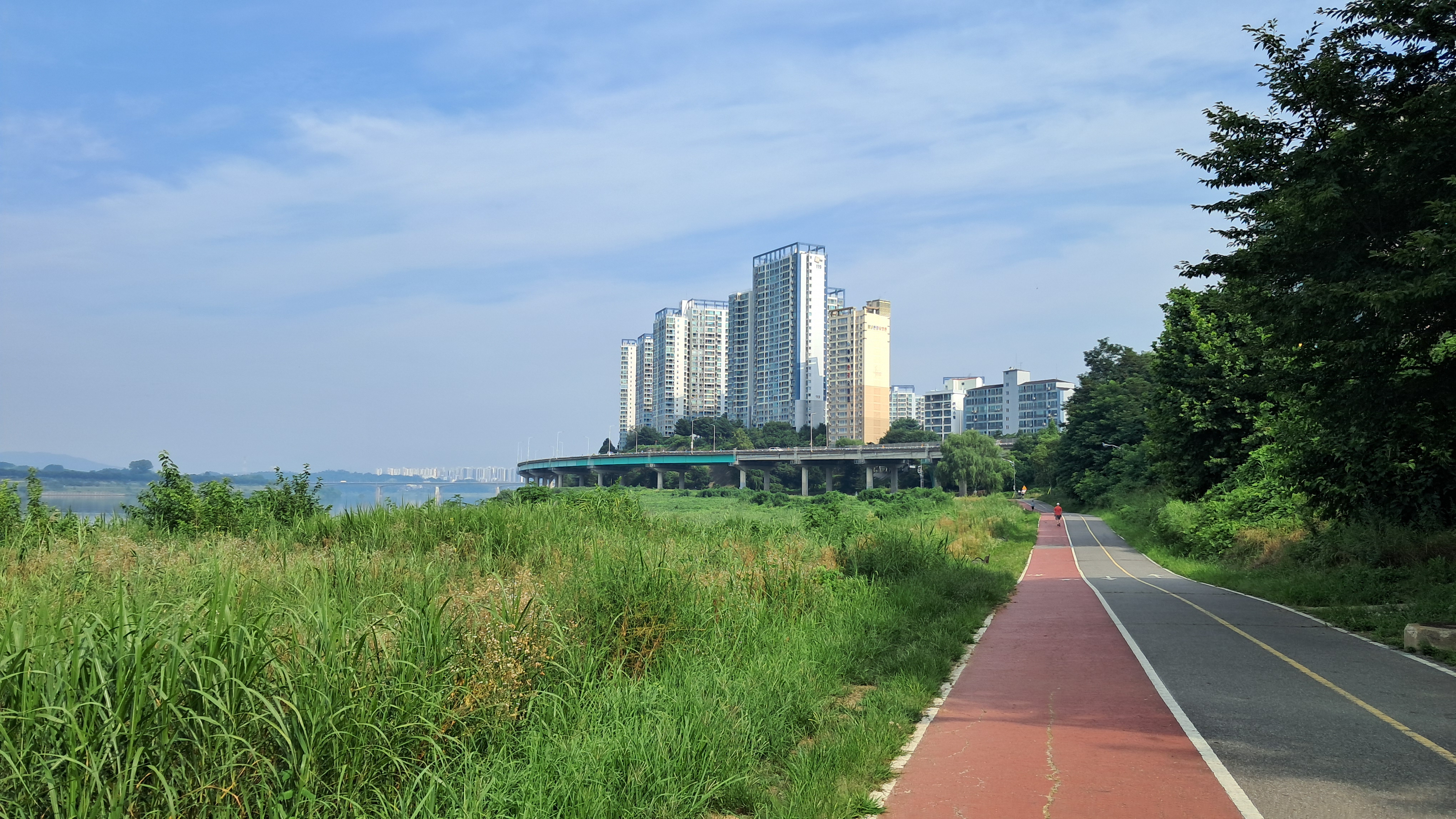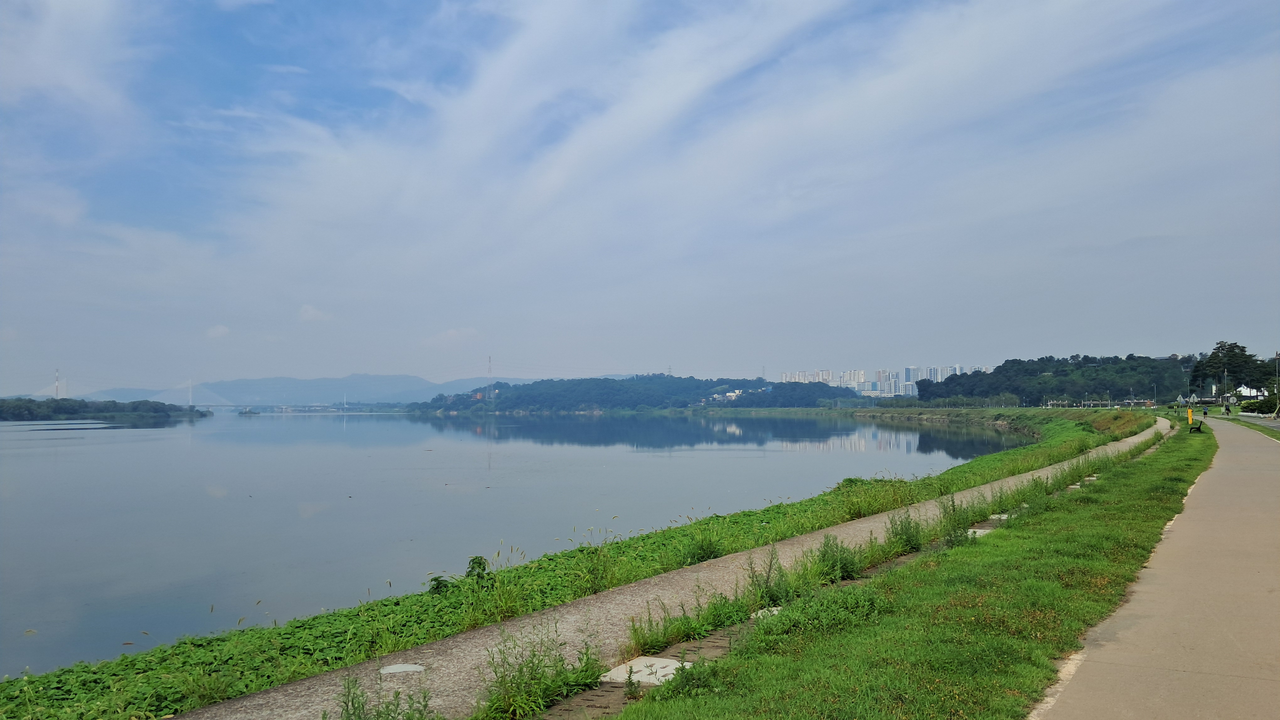 저 멀리 수석교와 강동대교가 보입니다.