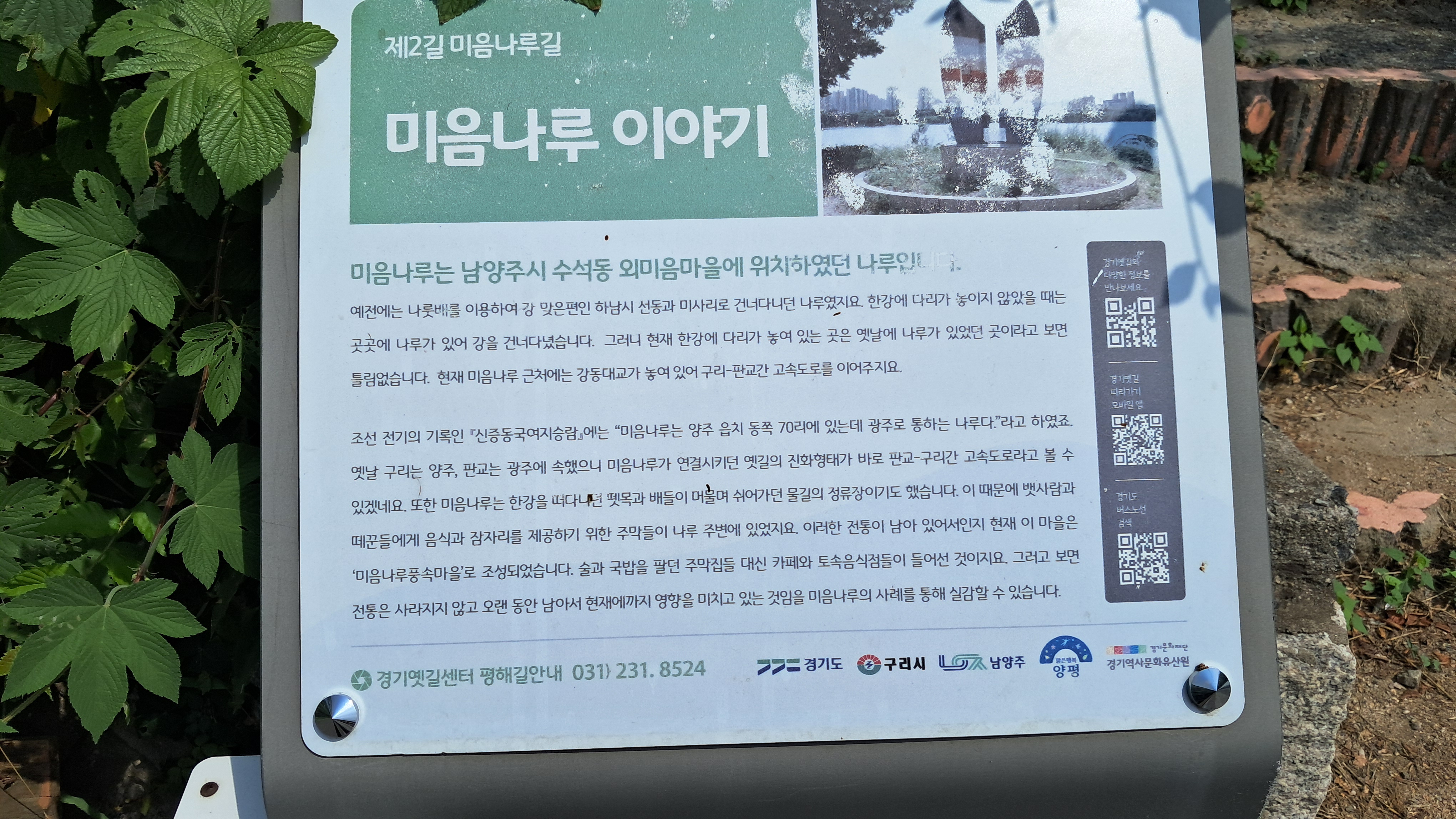 미음나루길의 이름이 유래된 미음나루는 남양주시 수석동 마을에 위치했던 나루라고 합니다.