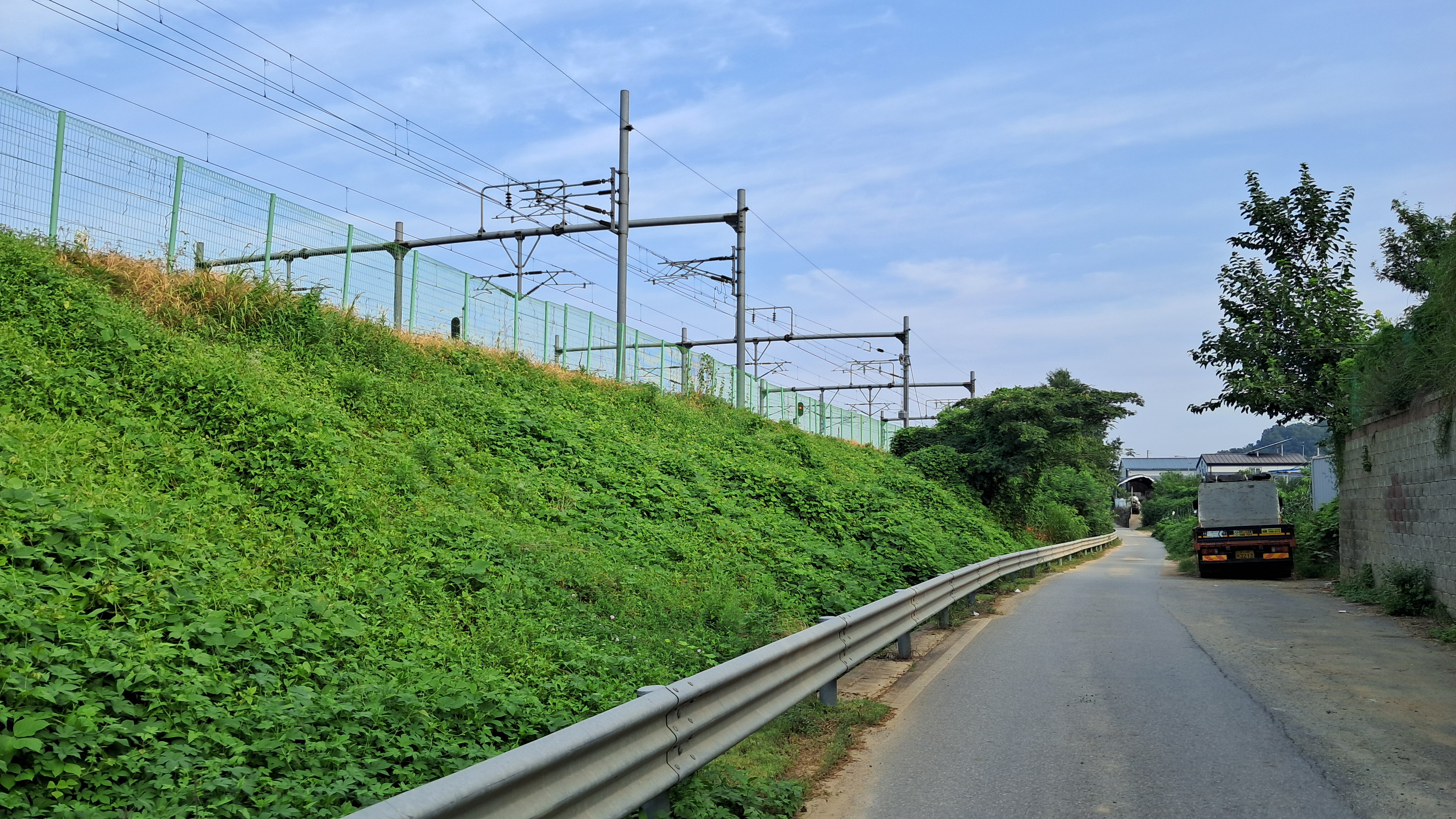 굴다리를 통과하면 철길과 나란히 자동차 한 대가 지나갈 수 있는 한적한 길이 나옵니다.