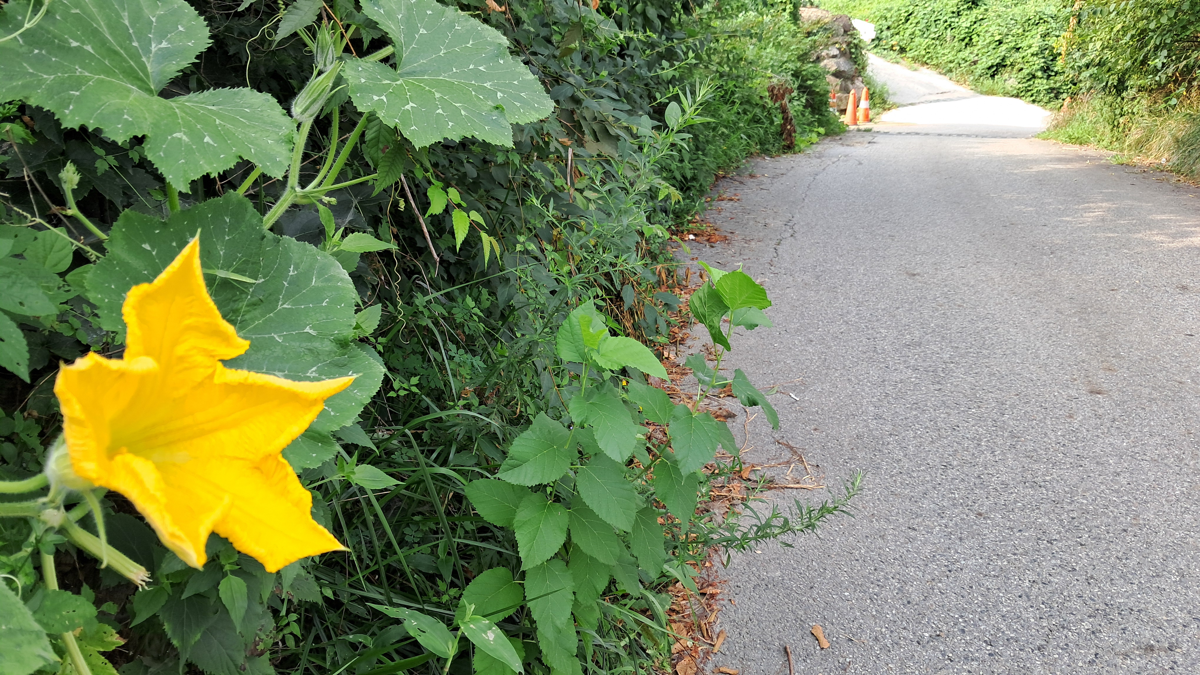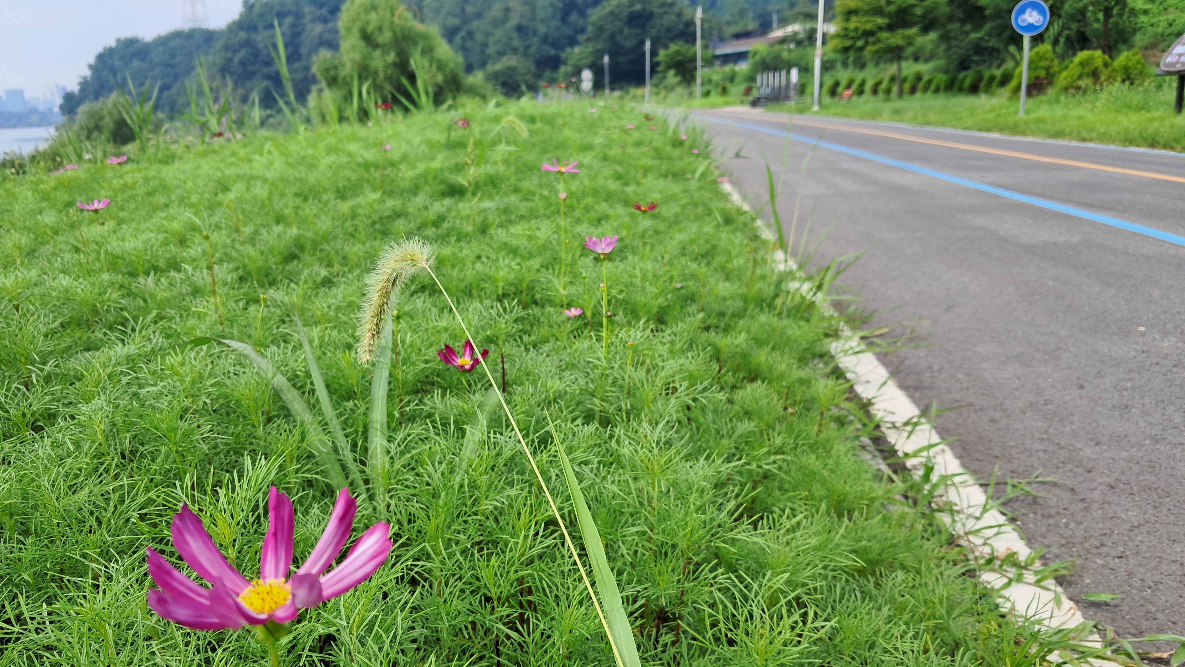 시골길을 걸어가면 도시와는 다른 한적한 길가에 풀이 가득합니다.