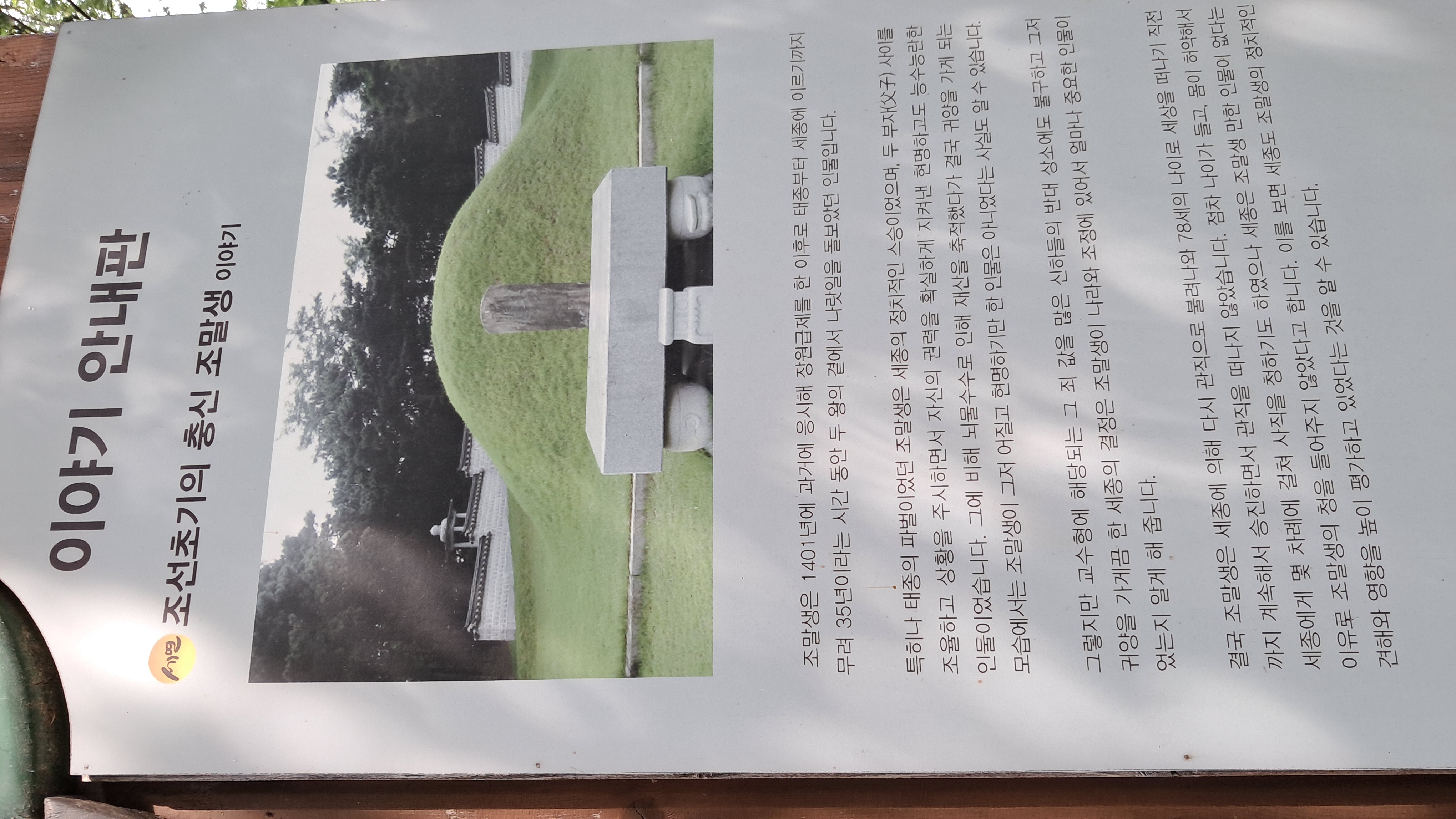 언덕 위에는 이곳에서 가까운 곳에 위치한 조선초기 세종시기 충신이었던 이말생의 묘 안내판이 설치되어 있습니다.
