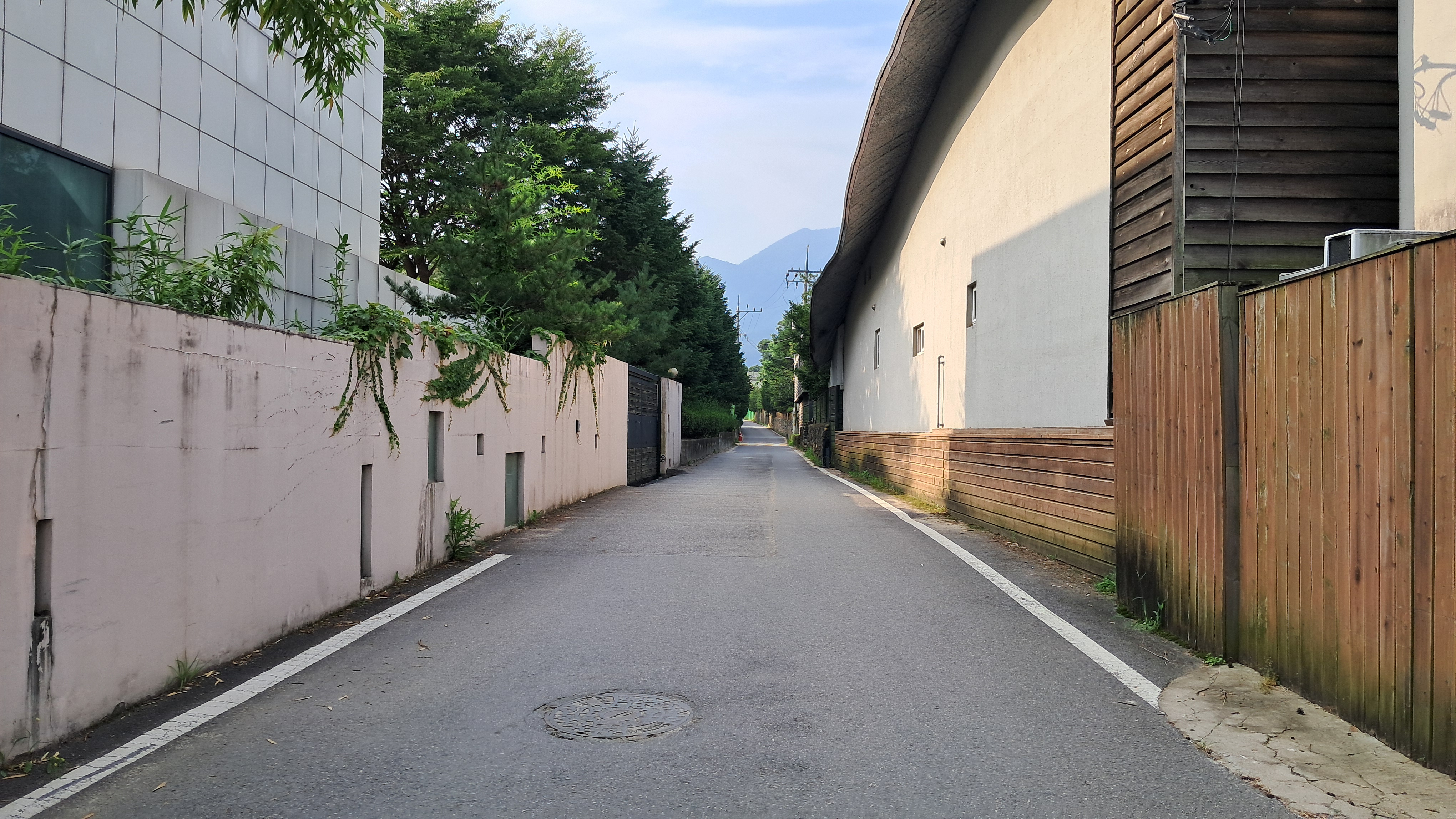 길은 고급 주택가로 이어집니다.