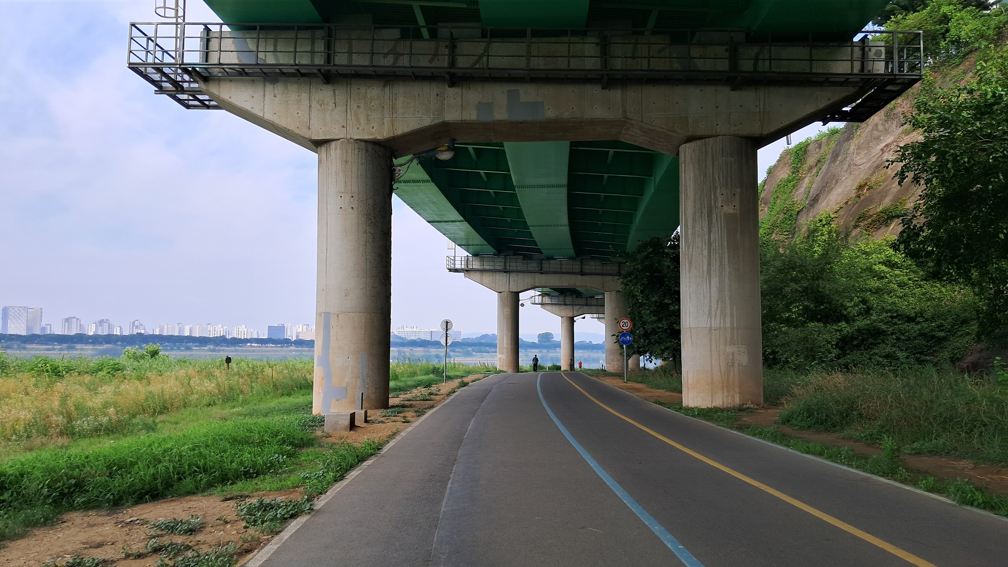 이제부터 교각 아래를 걷습니다.