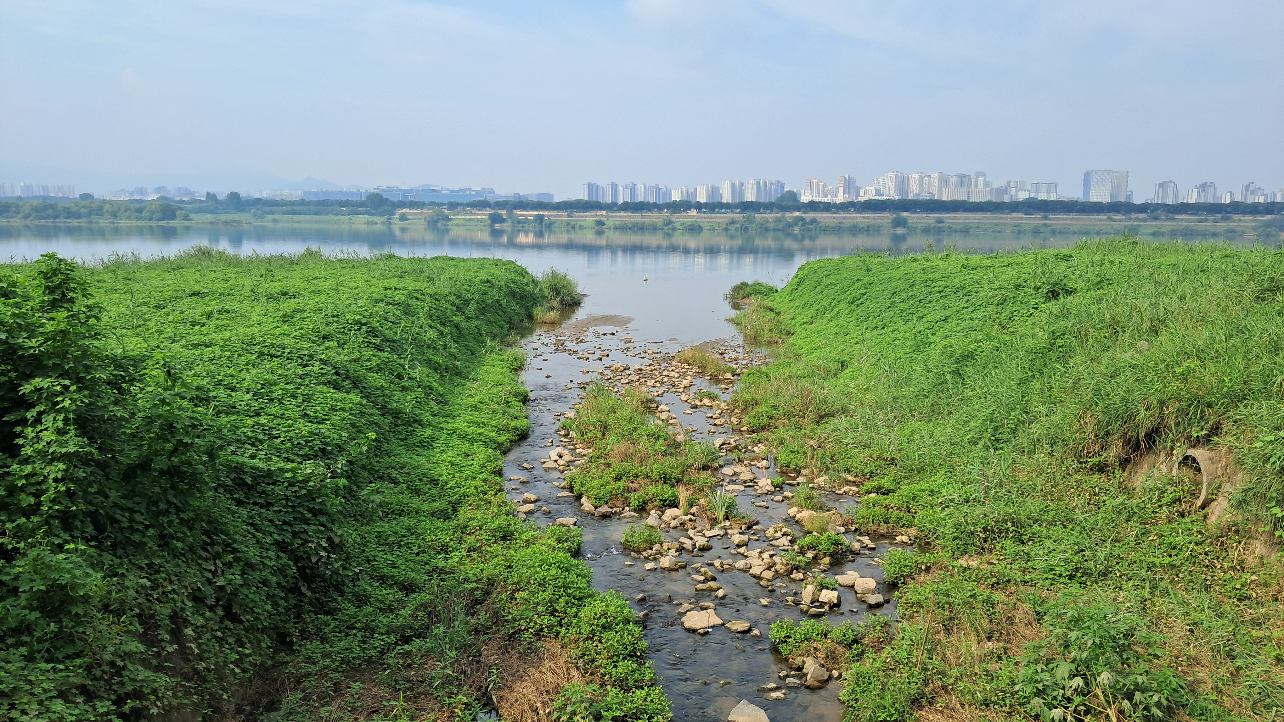 작은 하천이 한강으로 흘러갑니다.