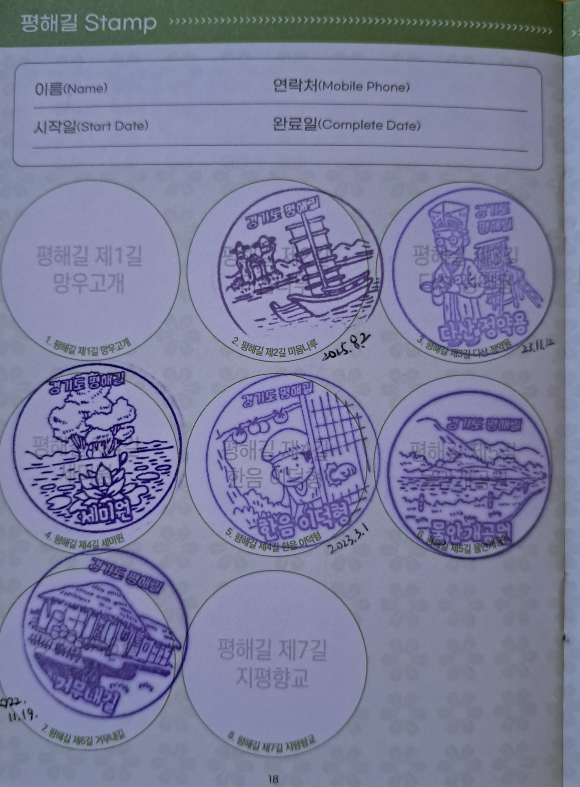 스탬프 도장을 찍으며 미음나루 구간 길 걷기를 마무리합니다.