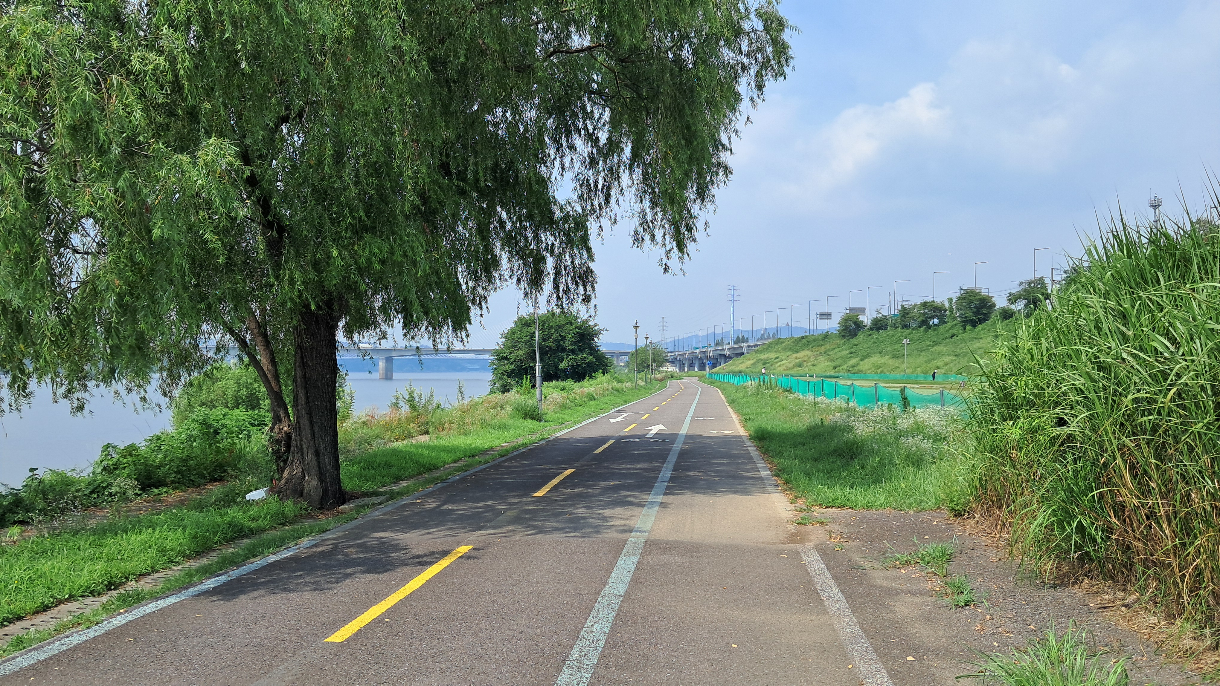 뜨거운 날이지만 휴일이라서 자전거 타는 사람이 생각보다 많습니다.