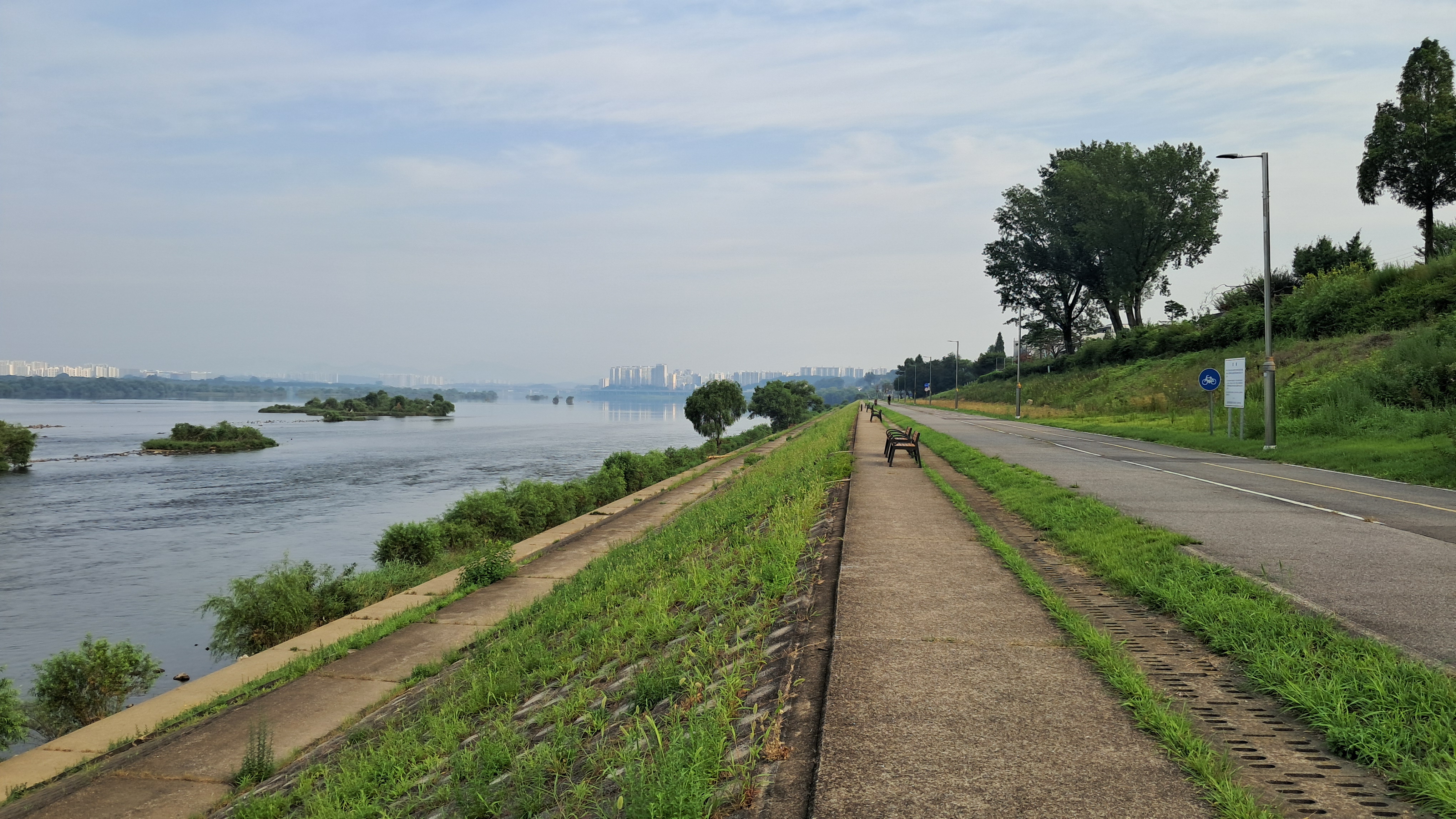 일자로 쭉 뻗은 제방길을 걸어갑니다.