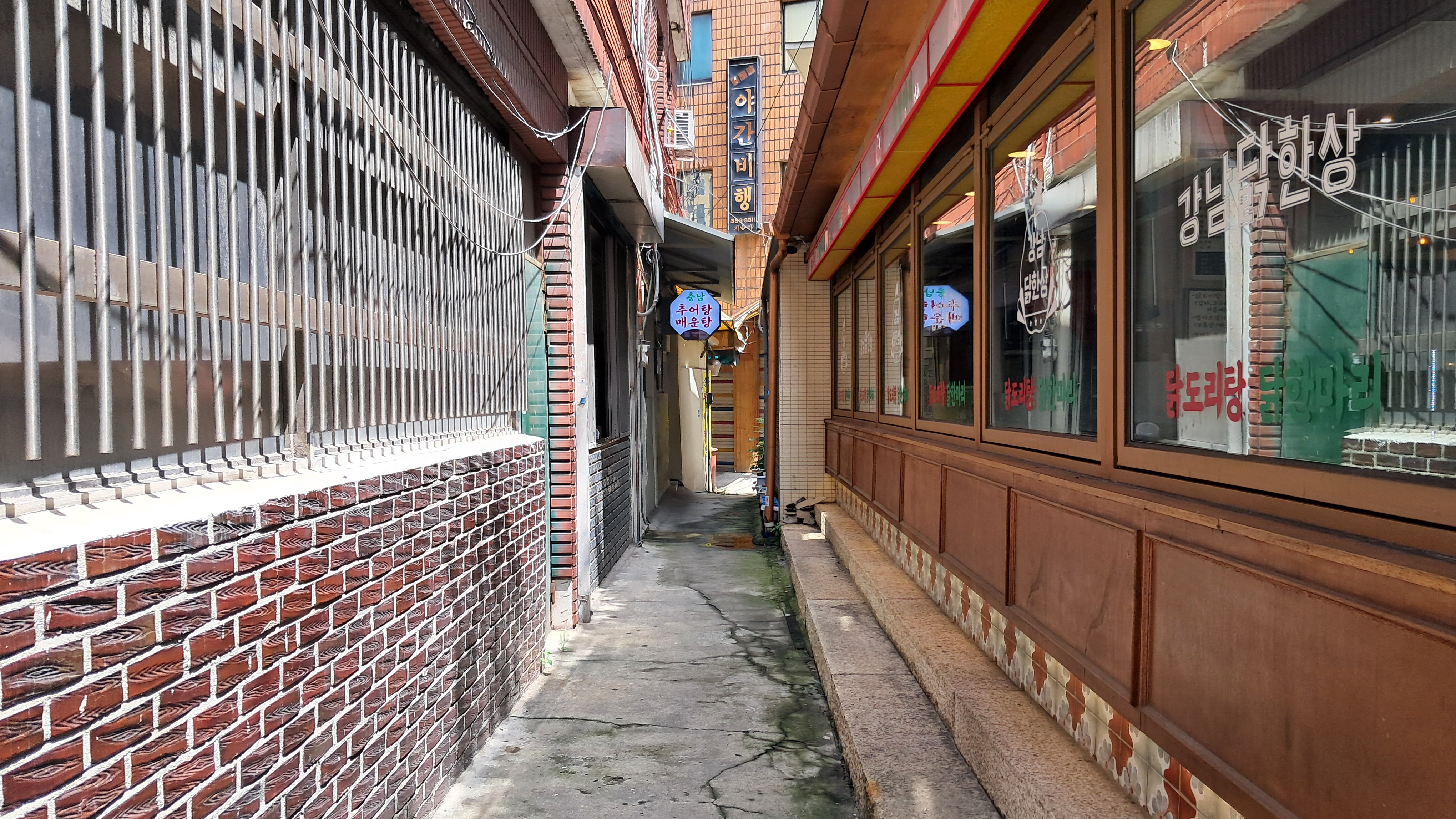 신협에서 맞은편 음식점과 떡방앗간이 있는 건물 사이로 들어갑니다.