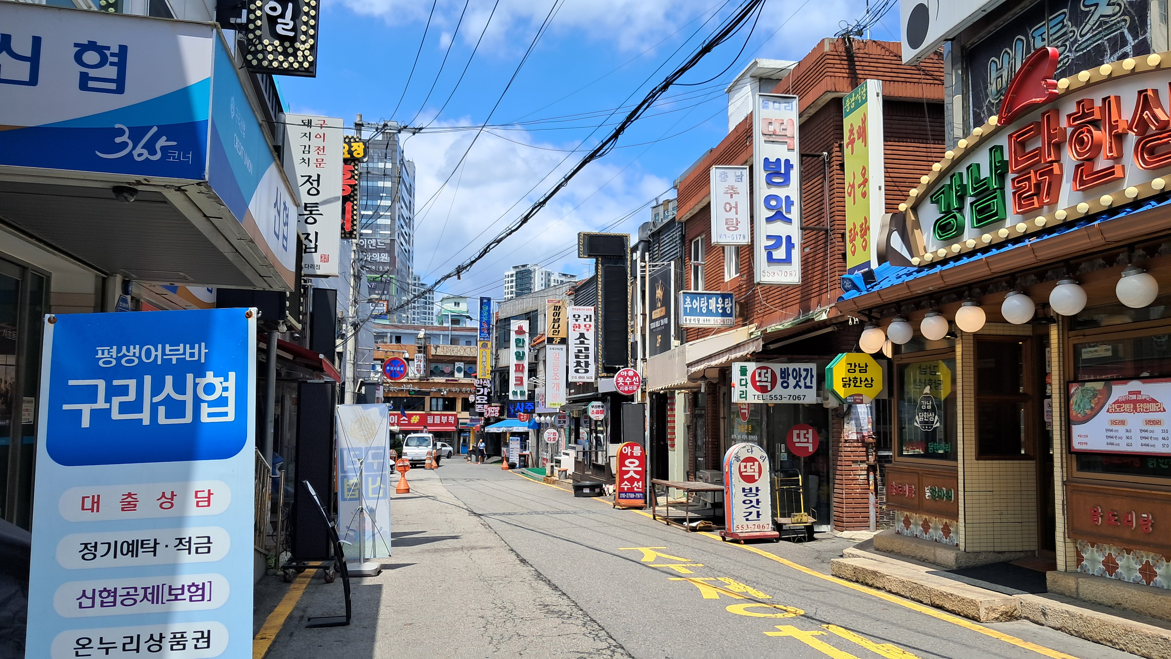 딸기원에서 출발한 구리왕숙길 걷기 중 구리전통시장 중심을 통과해서 지붕이 없는 곳으로 나오면 좌측으로 구리신협이 있는 골목이 있습니다.