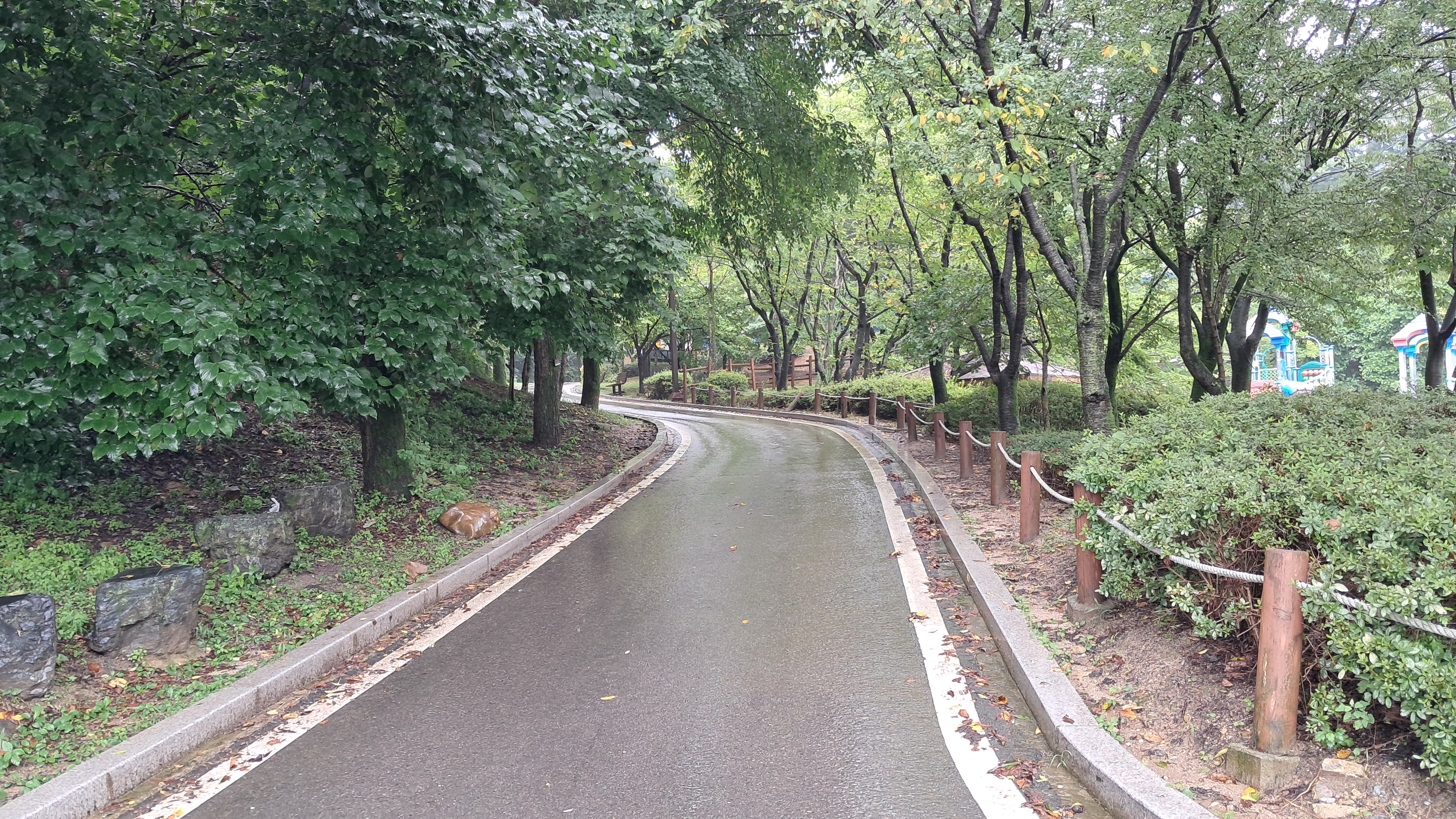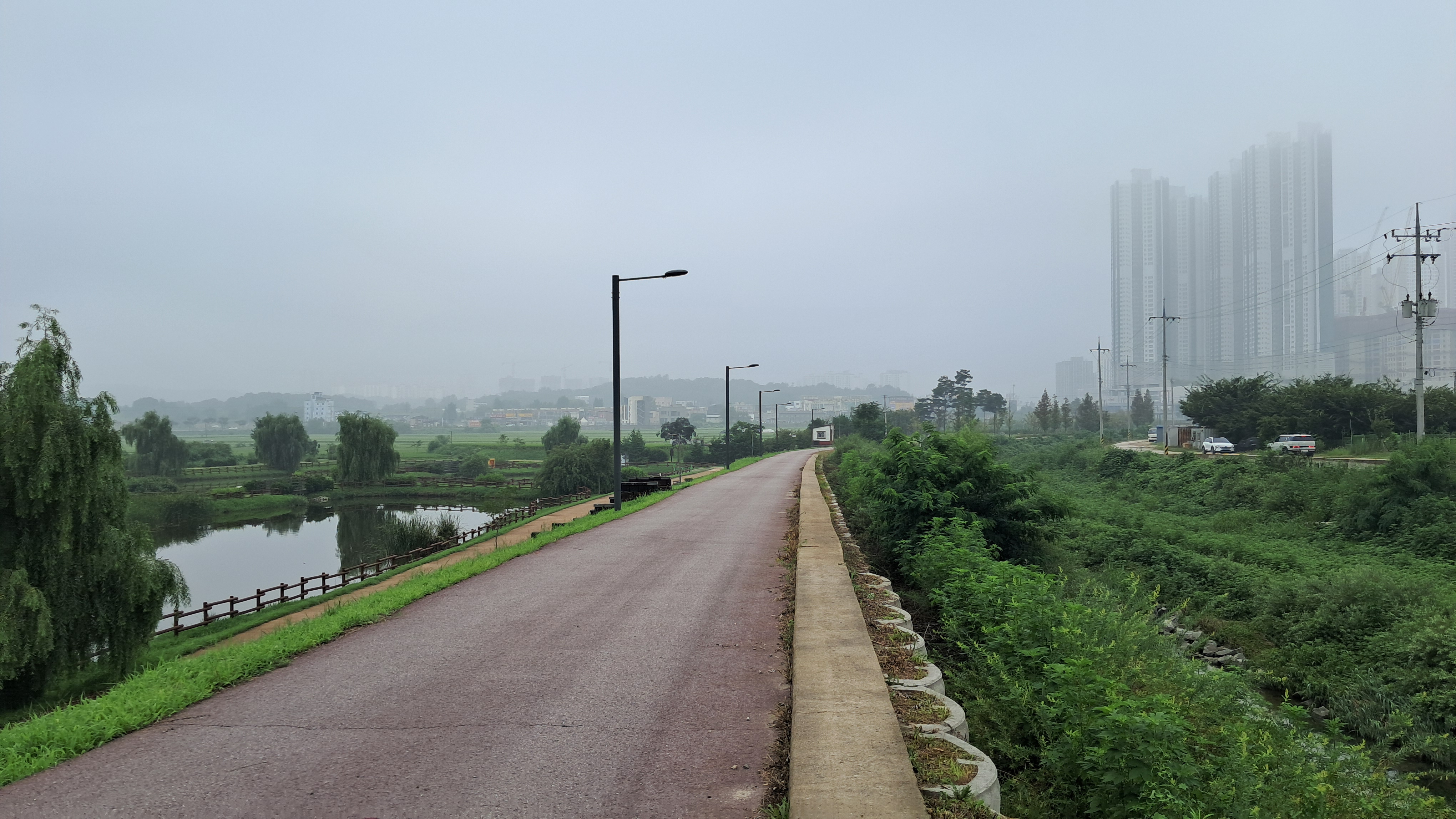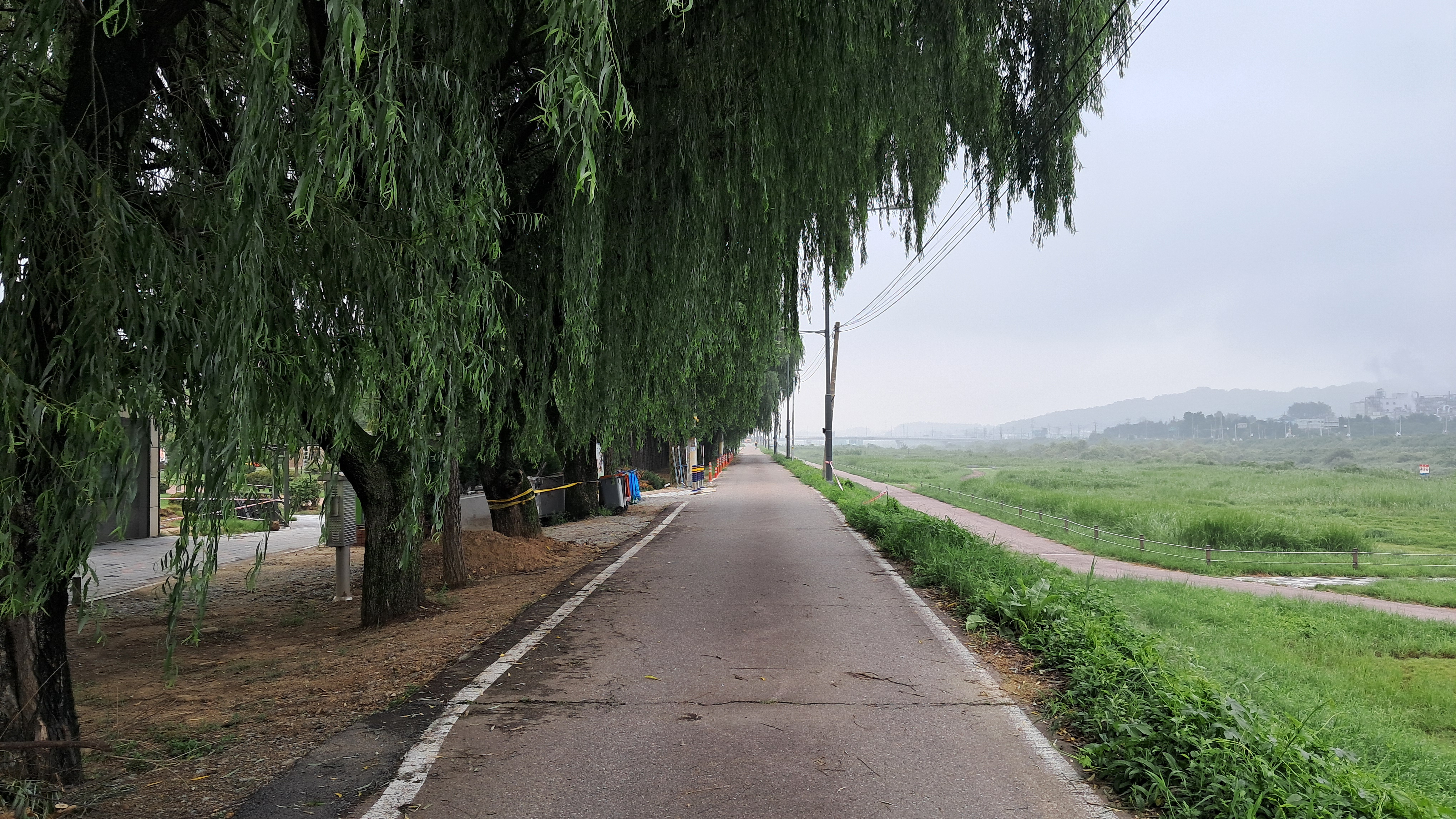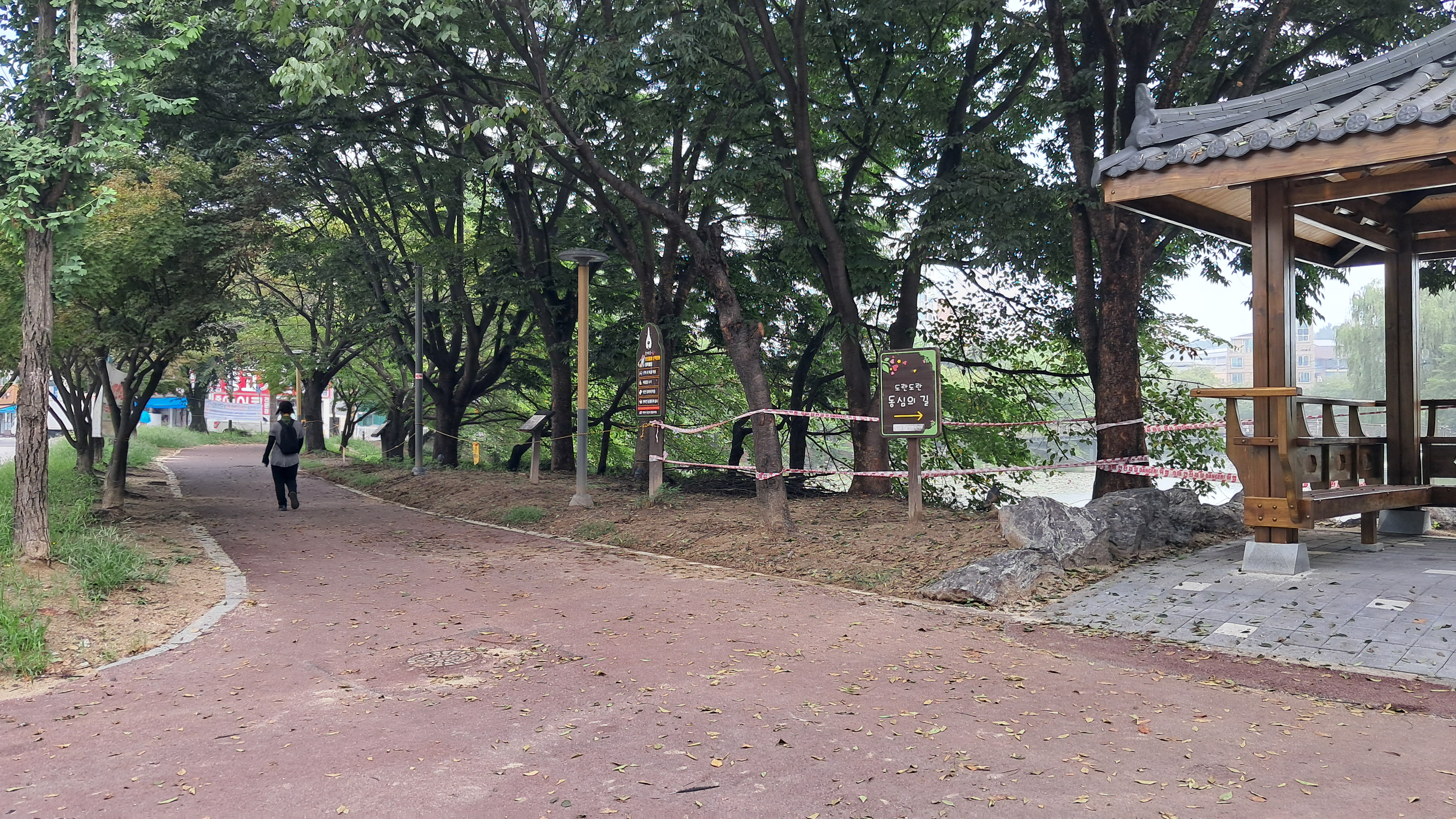 길의 좌측은 수변공원이고 우측은 중리천입니다.