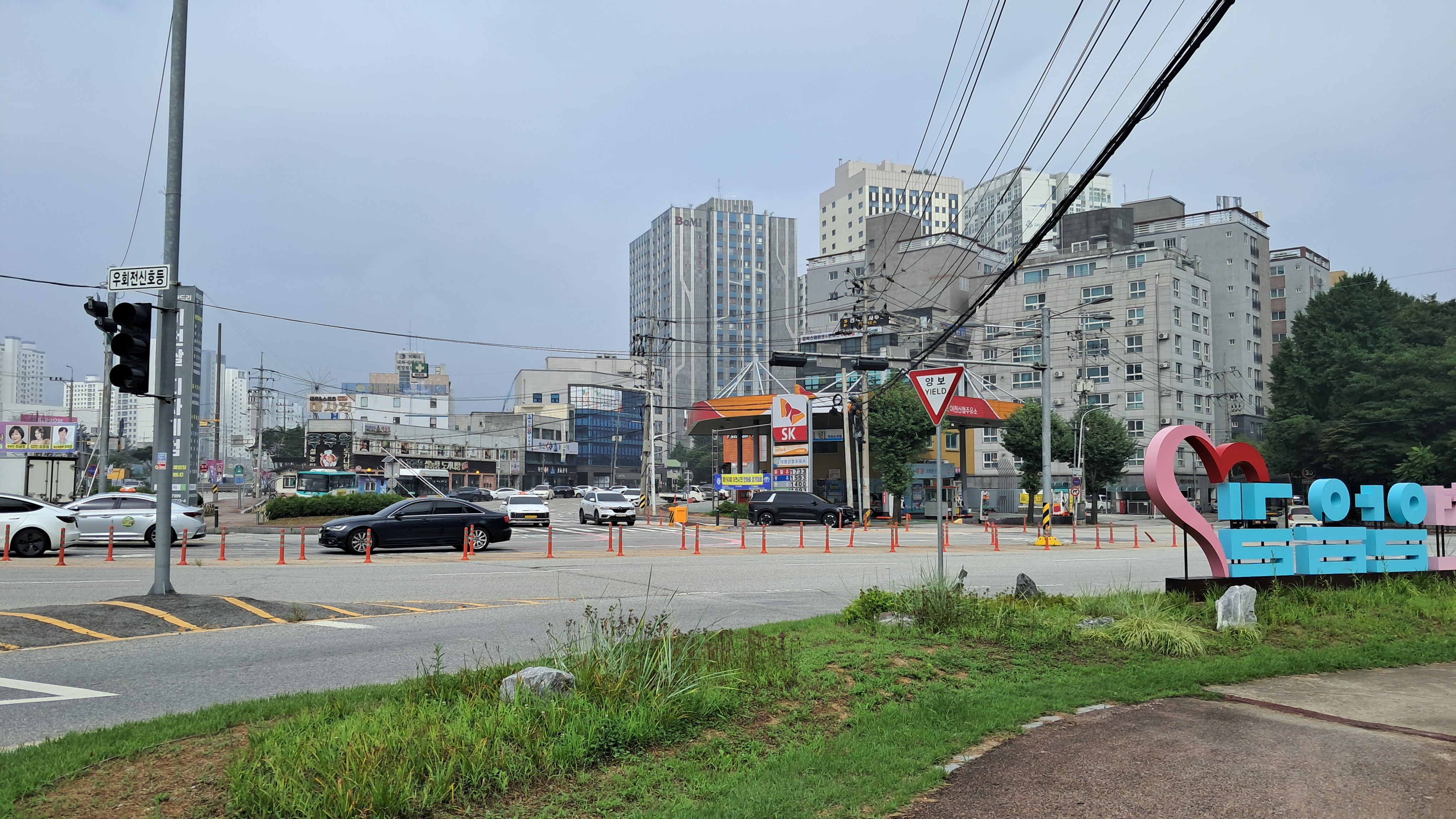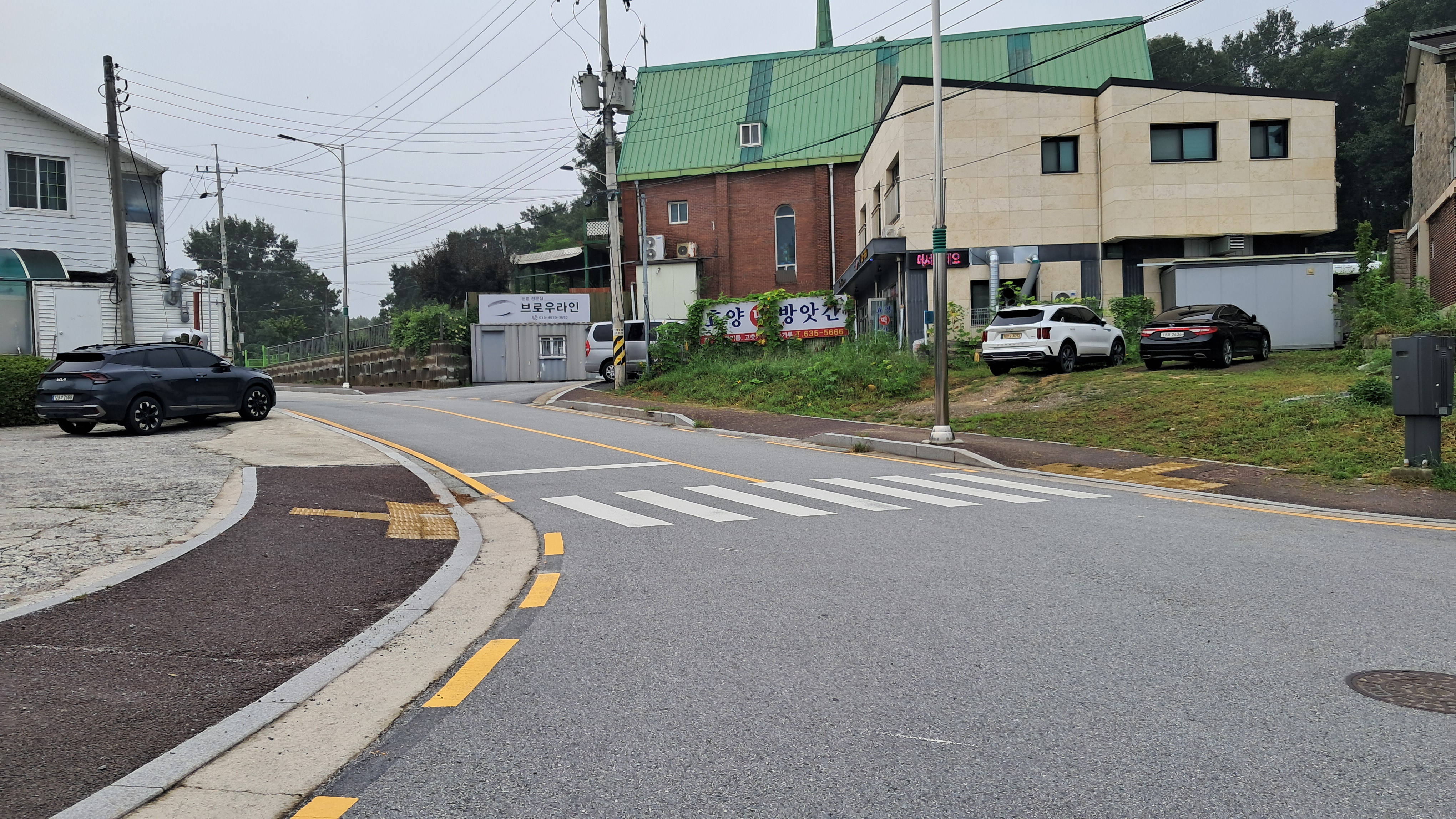 사거리를 하나 지나고 큰 교회를 지나면 교차로를 만납니다.