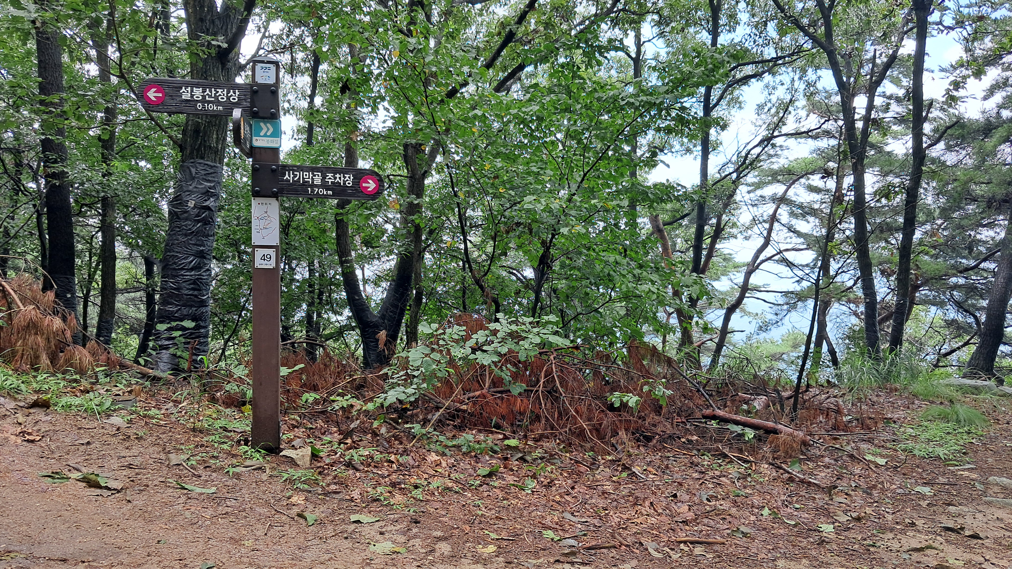 좌측의 설봉산 정상 방면 대신에 봉화길은 우측으로 안내합니다.