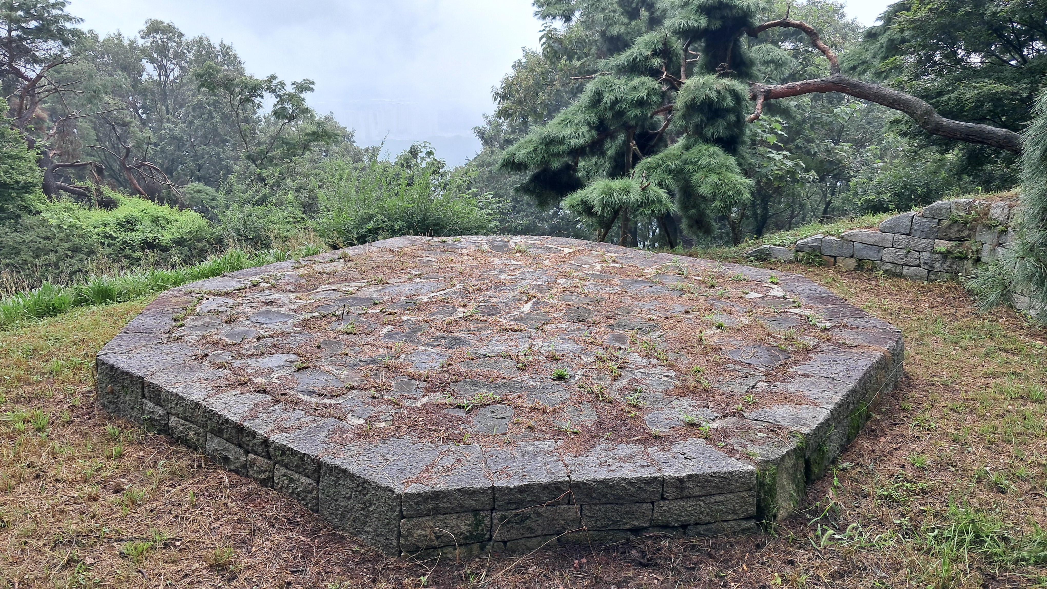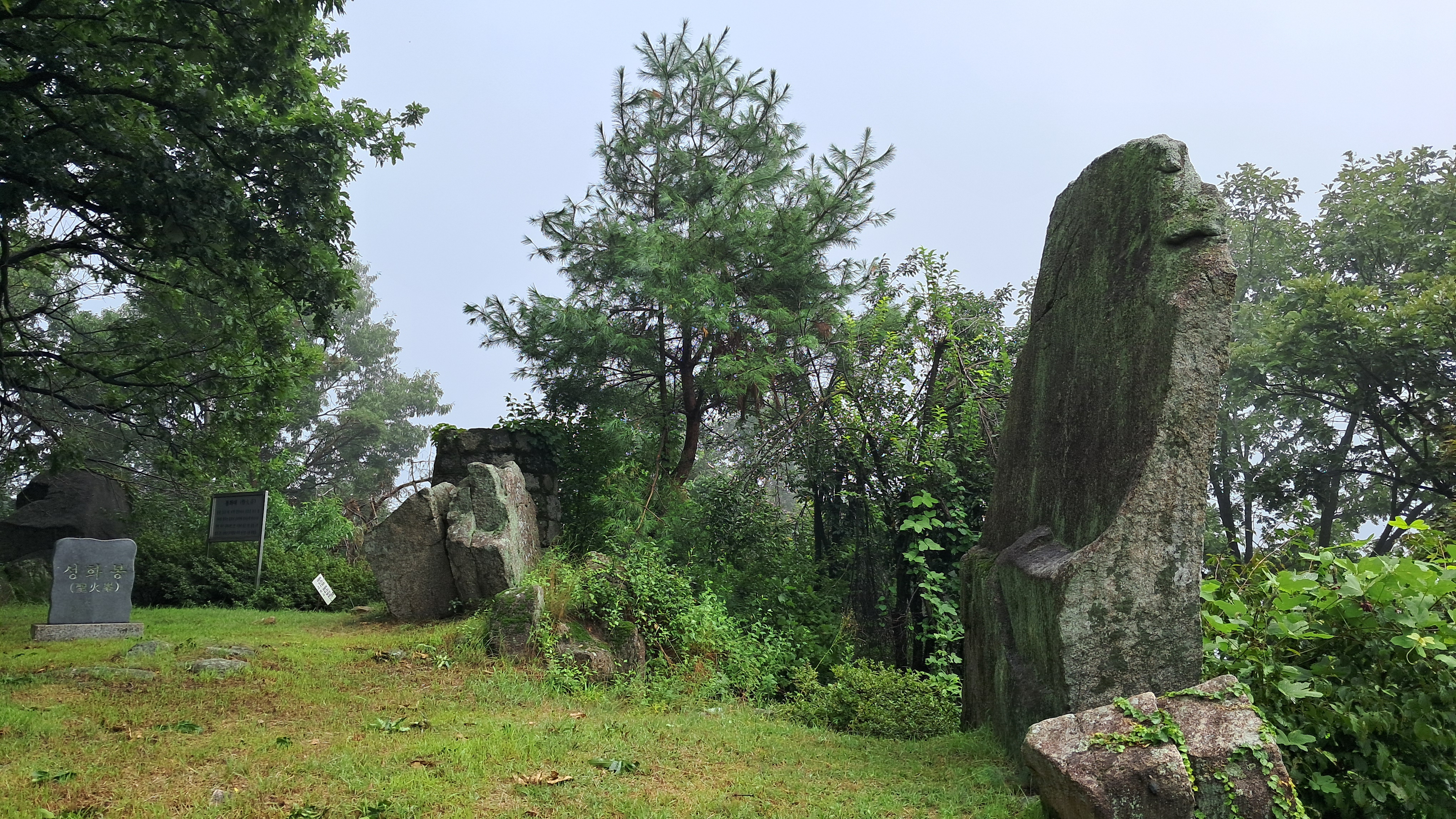 성곽을 지나서 산길을 따라가면 잔디로 조성된 평평한 구역이 나옵니다.