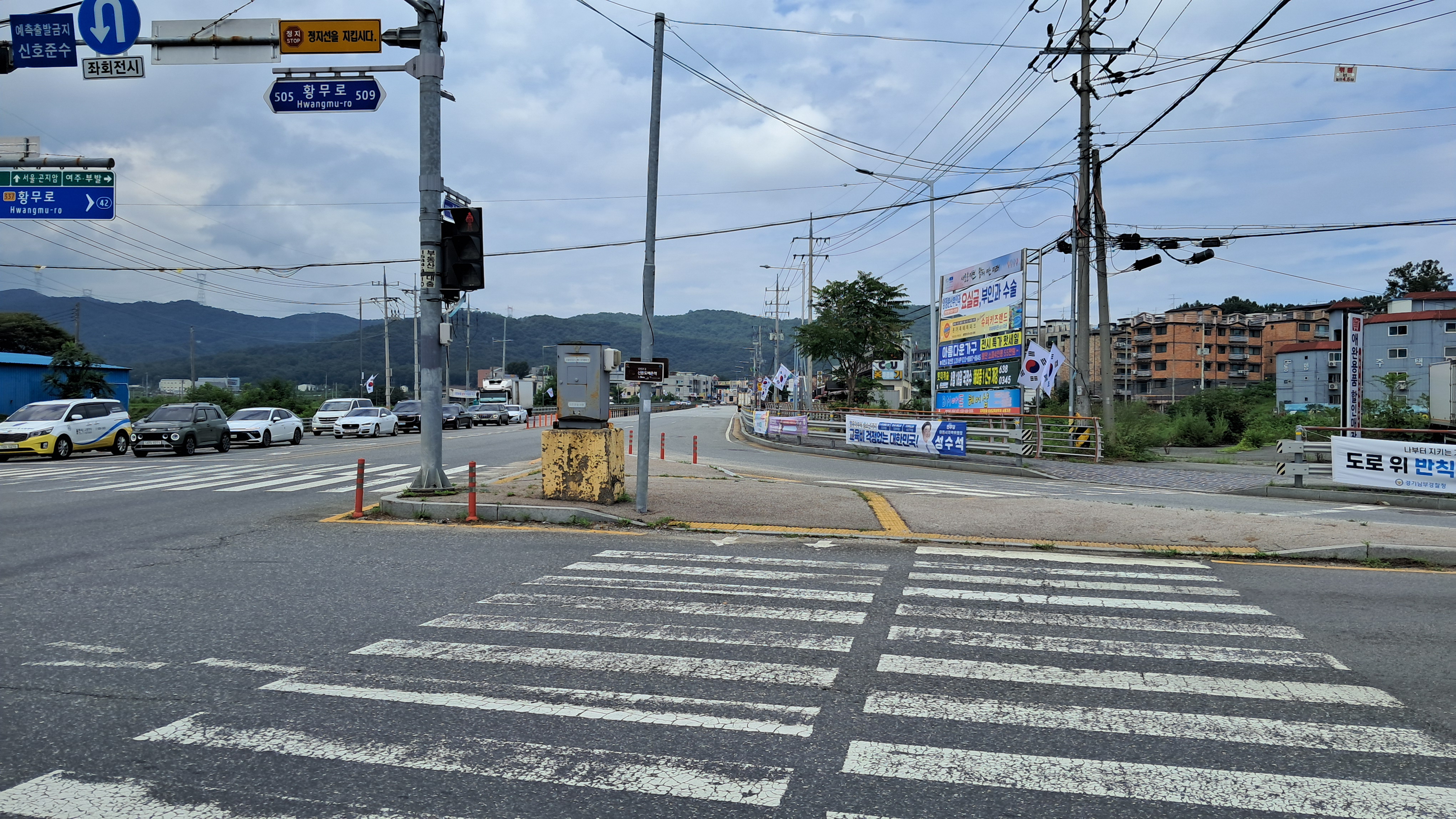 경충대로의 바쁜 교통량과는 반대로 이곳 도로는 한적합니다.