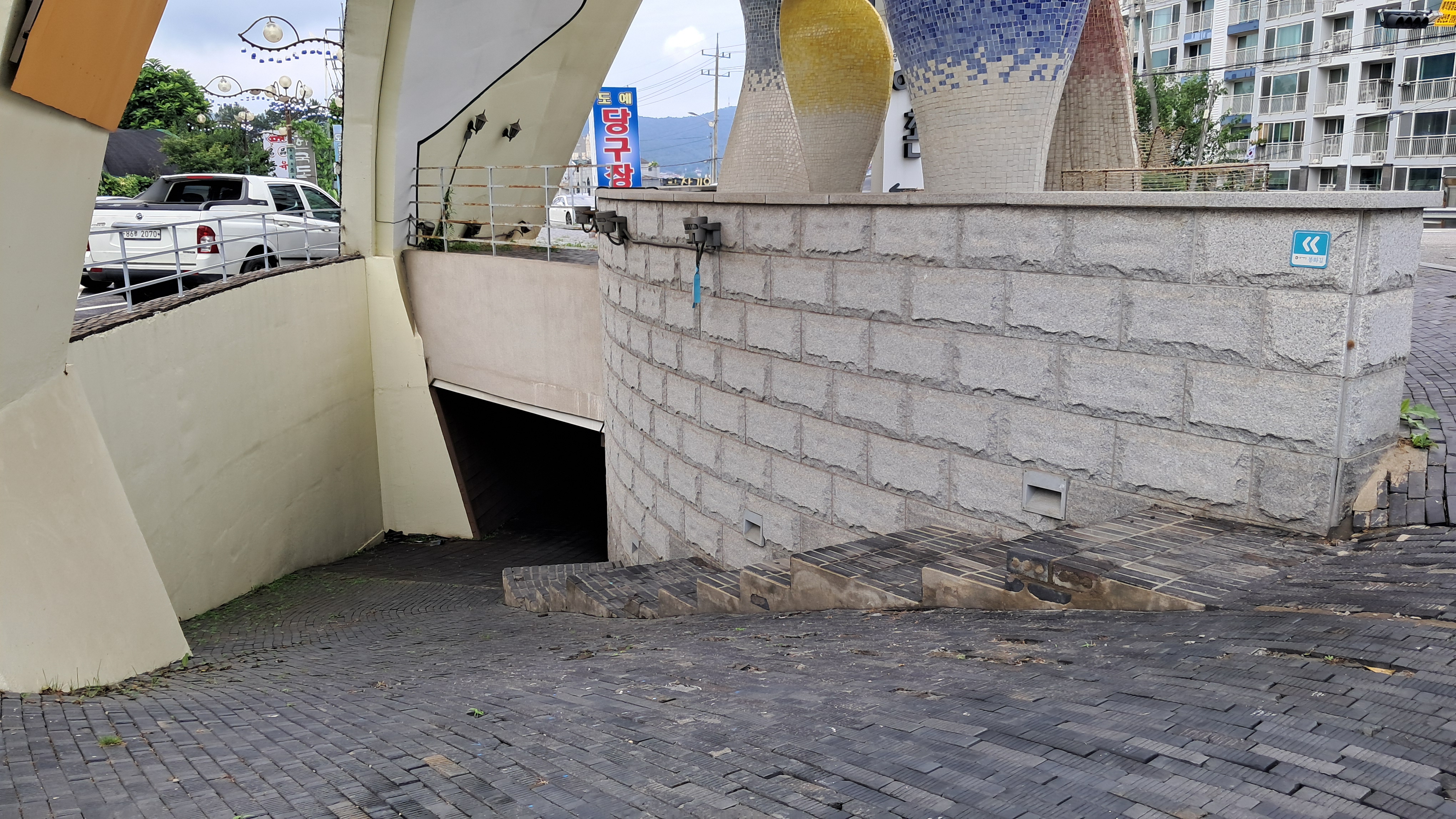 좌측에 굴다리를 통과해서 도로 건너편으로 넘어갑니다.