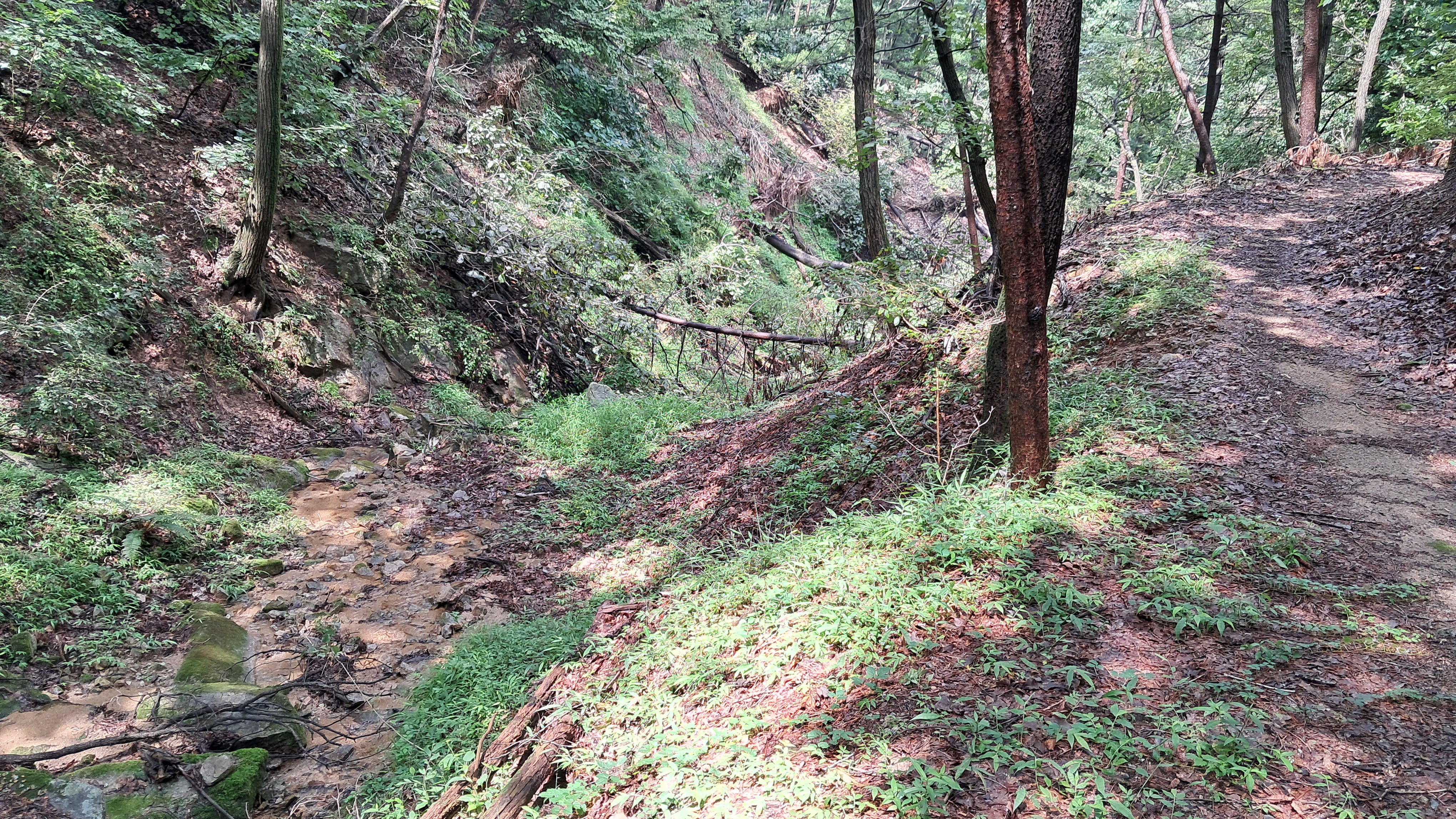 계곡물에 세수를 하고 싶지만 골짜기가 깊어서 접근할 수가 없습니다.