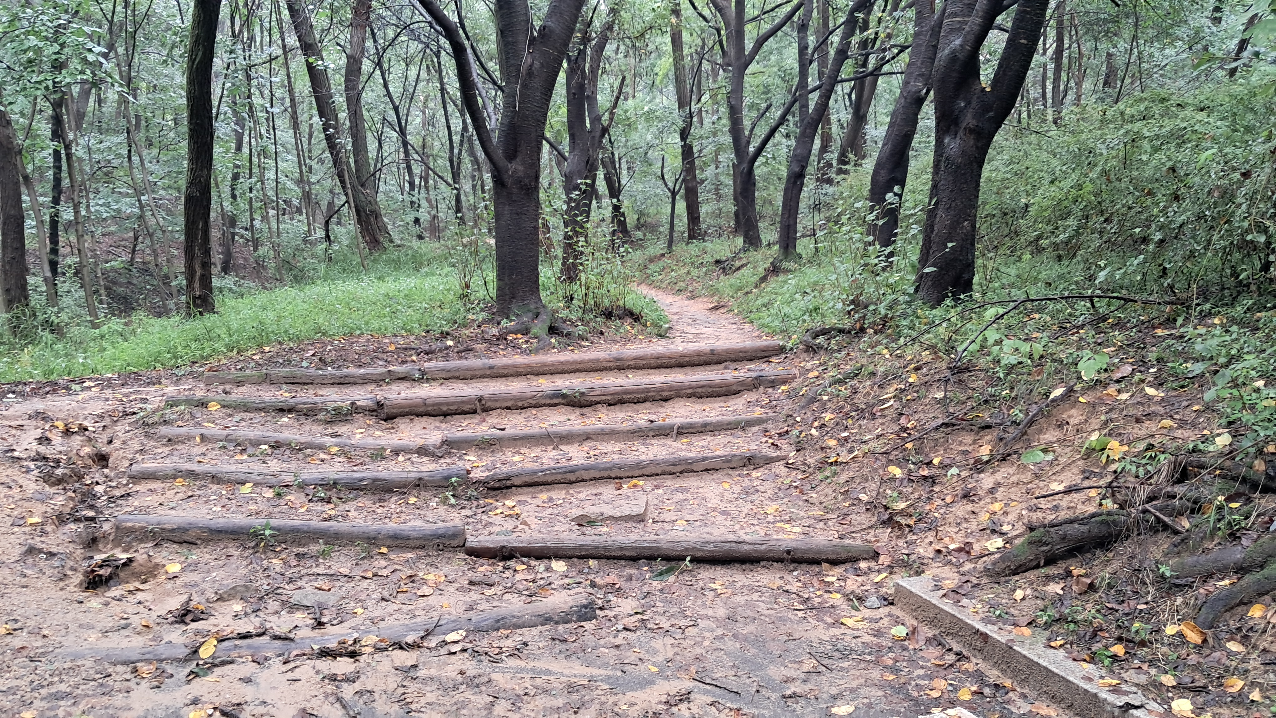 조금 전에 내린 비로 비포장의 등산로는 젖어있습니다.