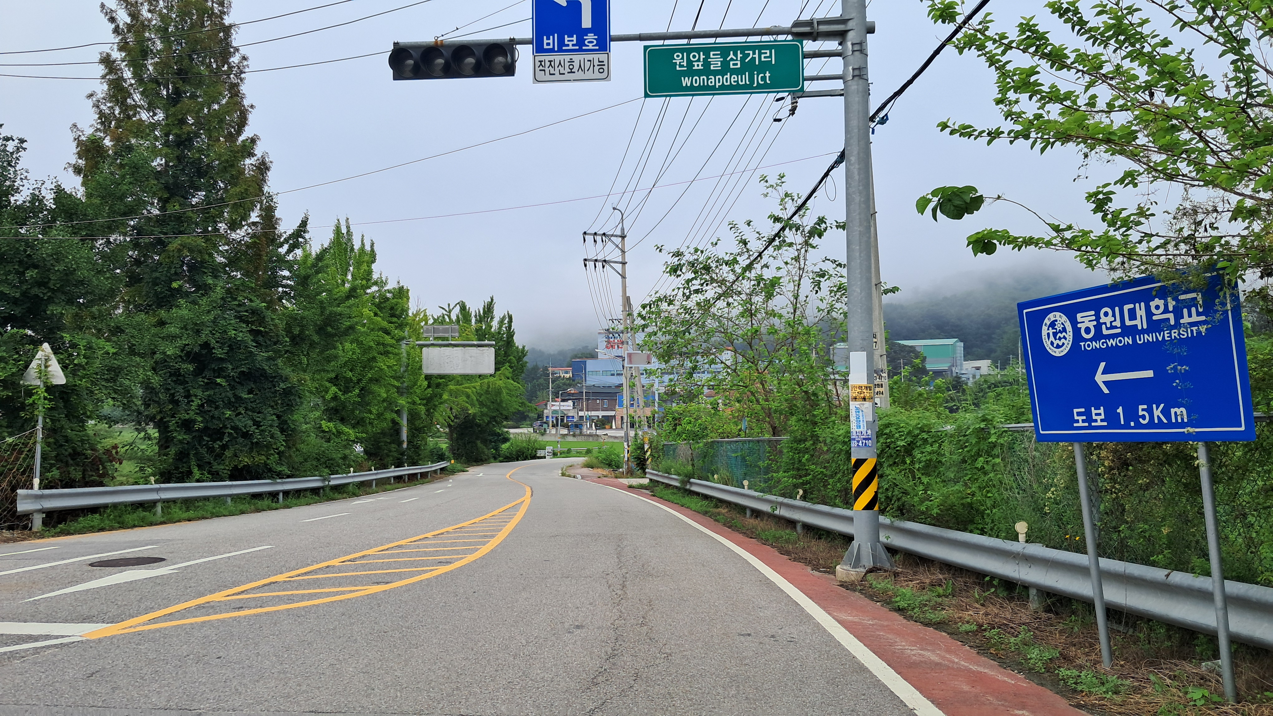 처음 만나는 삼거리에서 동원대학교 방향으로 좌측으로 향합니다.