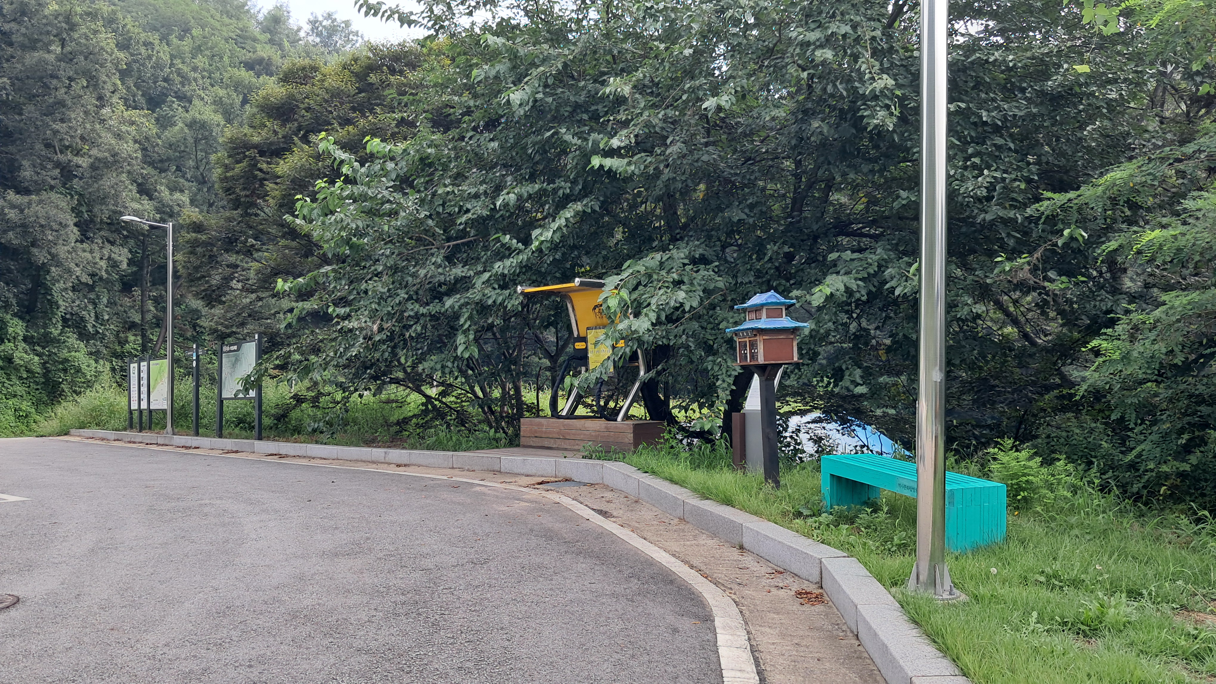 임도길에는 의자와 평상이 설치되어 휴식할 수 있는 공간도 있습니다.