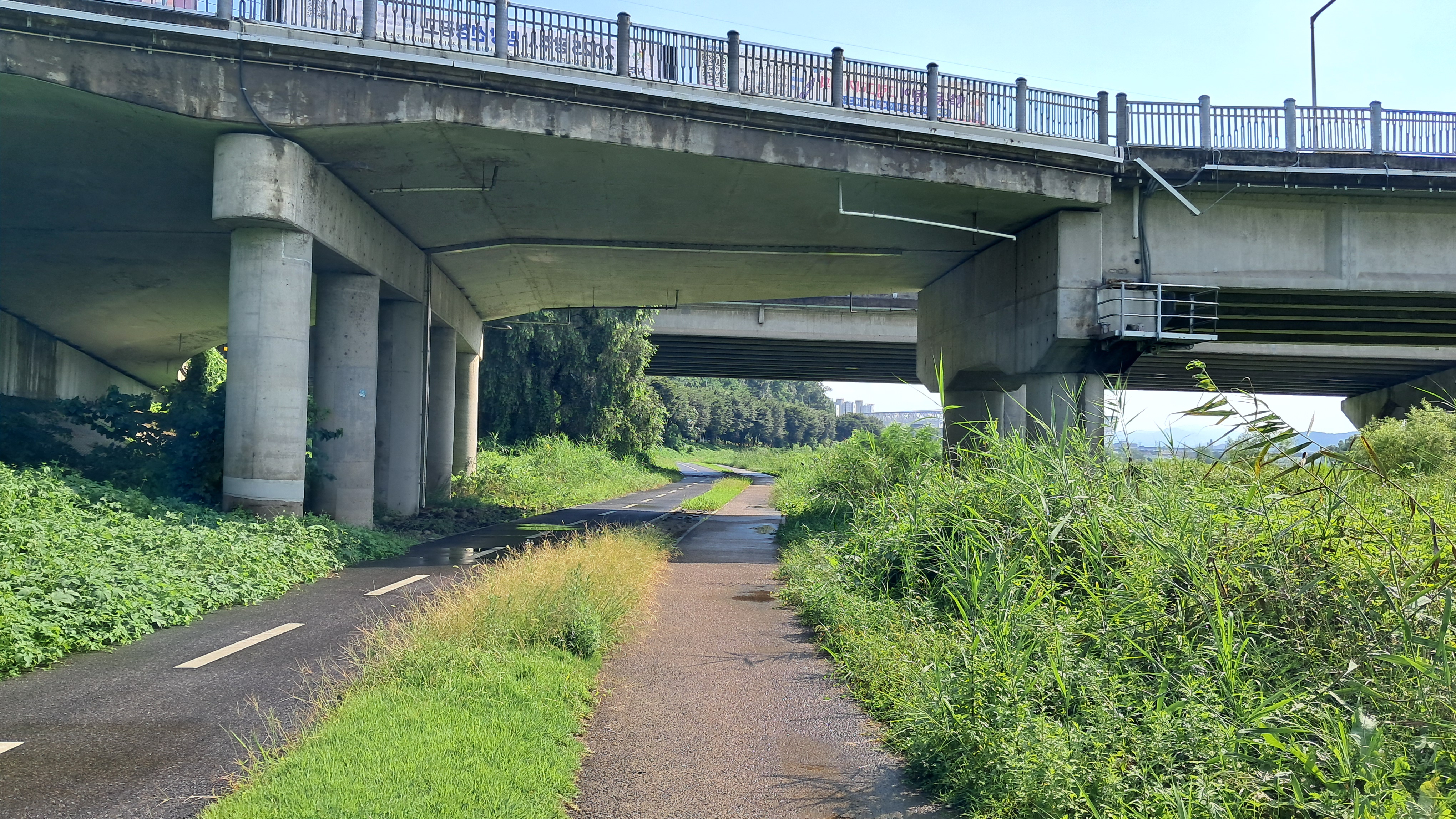 인도 교각 아래에 재방 위로 올라가는 계단이 있습니다.