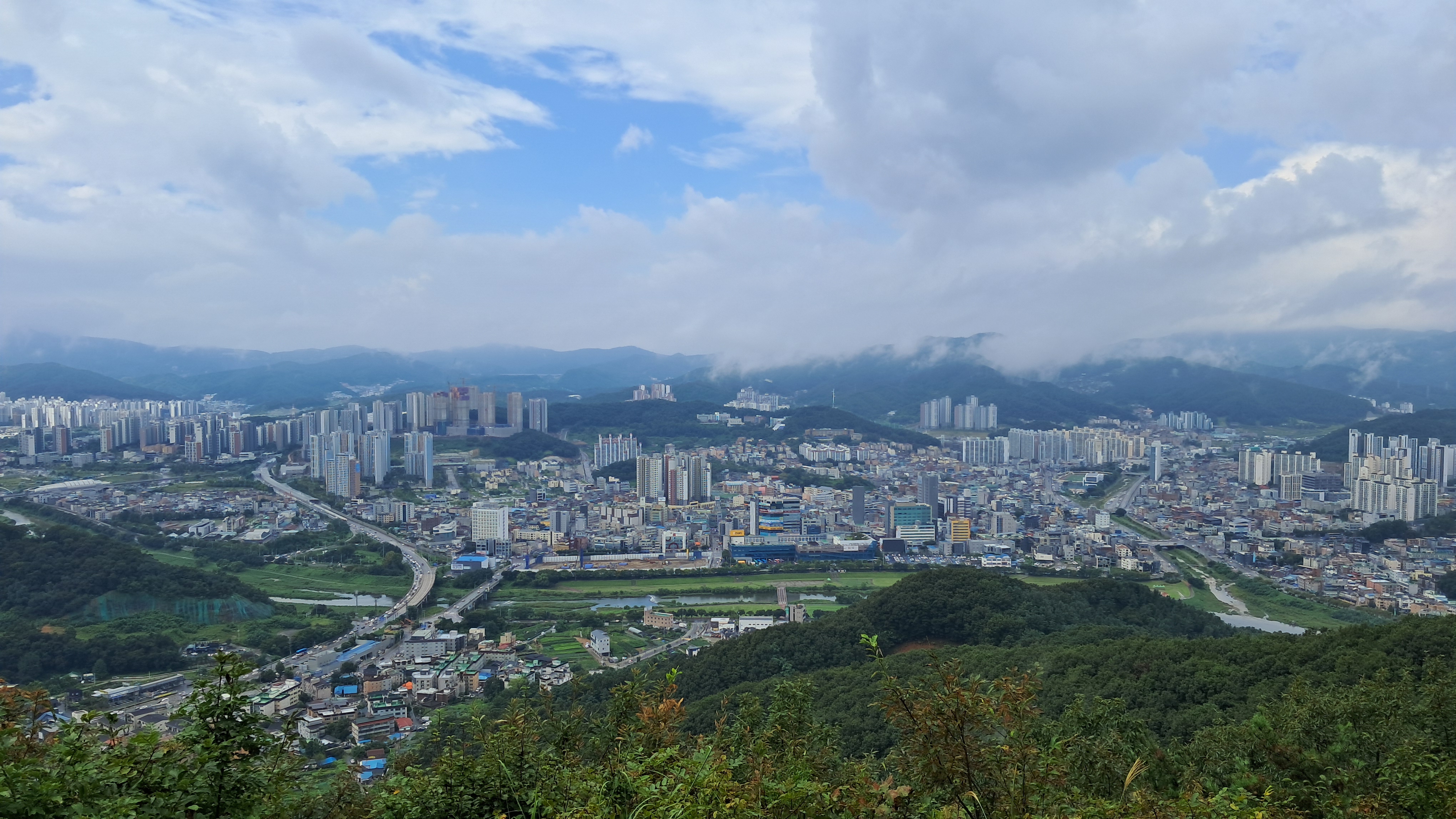 산아래로 흐르는 경안천을 중심으로 좌측 끝에 보이는 것은 경기광주역이고 우측으로는 목현천이 보입니다.