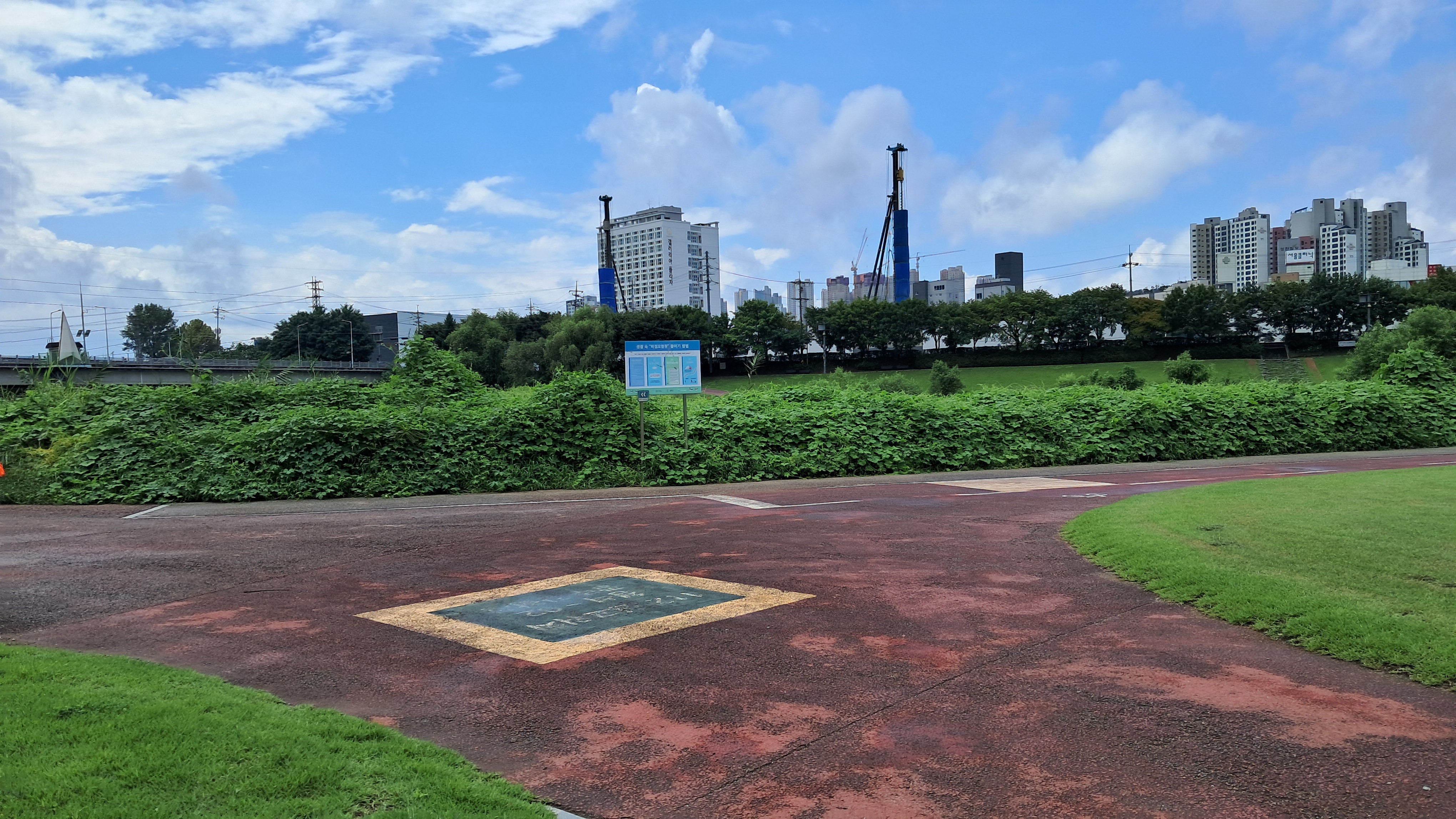 우방아파트는 고립된 느낌은 있지만 다리를 건너면 경기광주역이 있고 앞에는 운동장이 만들어지고 있습니다.