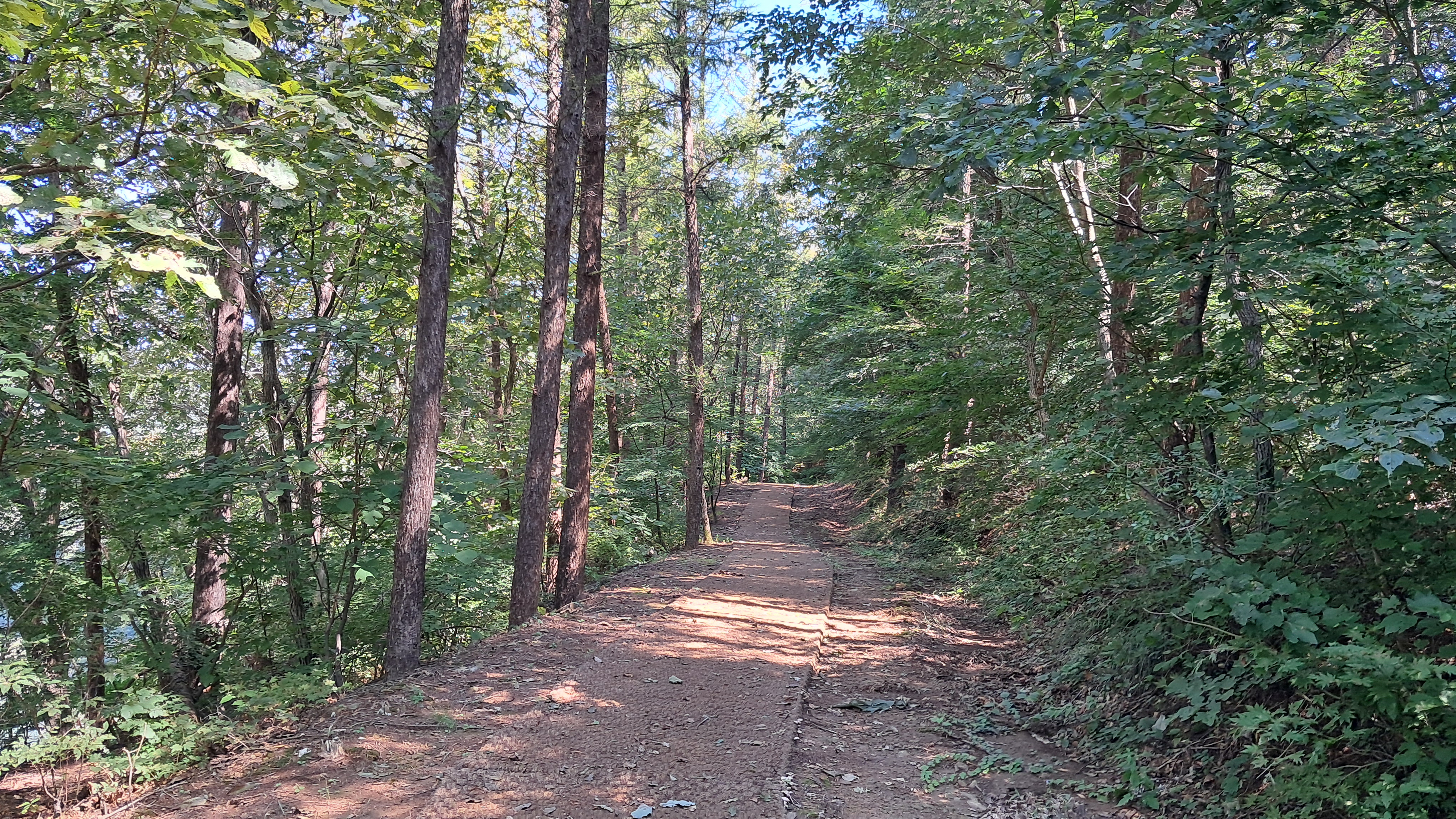 숲으로 우거진 길을 이어 걷습니다.