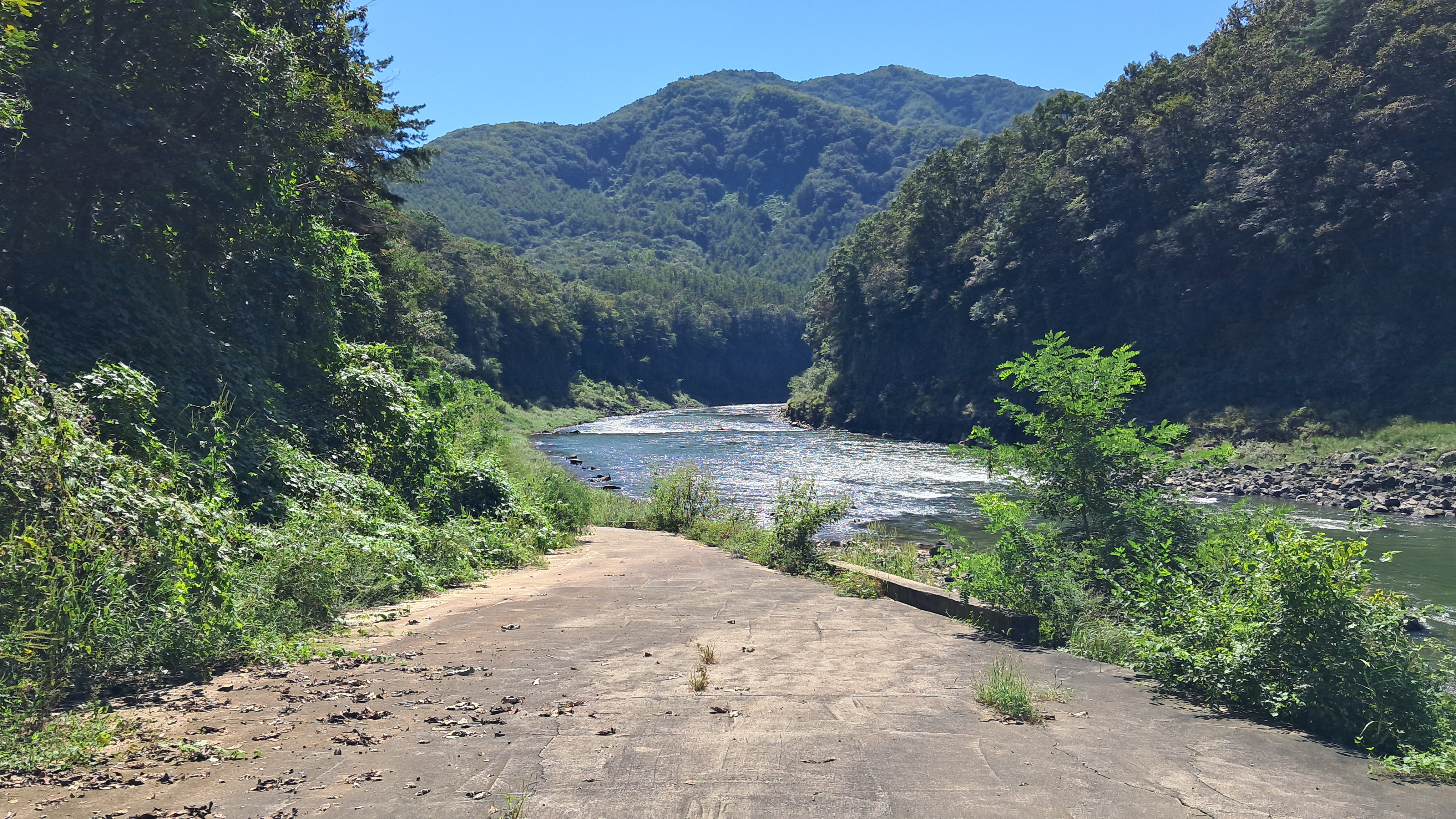 걷기 구간에서 강변으로 내려갈 수 있는 유일한 장소가 나옵니다.