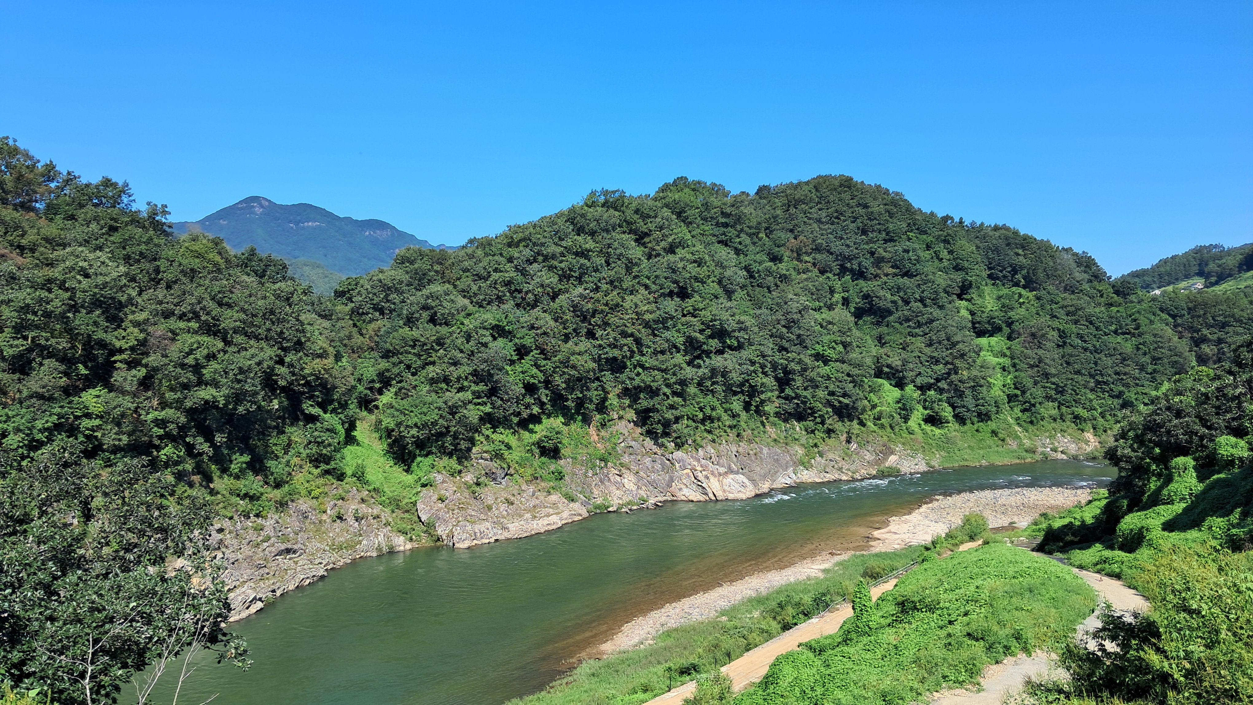 강물이 S(에스) 자로 꺾여 흘러가는 멋진 풍경이 여전합니다.