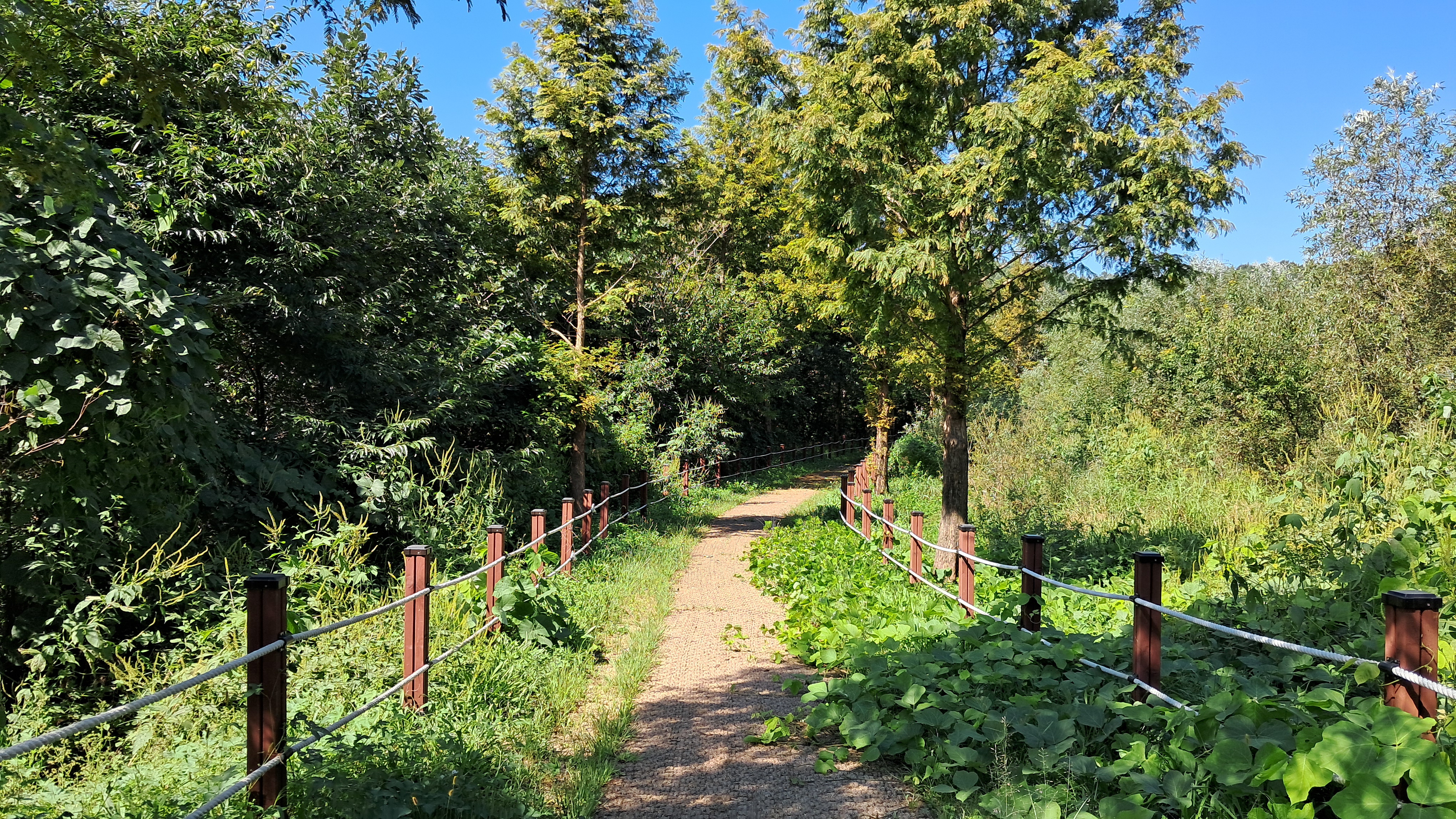 이제 걷는 길 양편으로 나무들도 자리를 잡아가는 모습입니다.