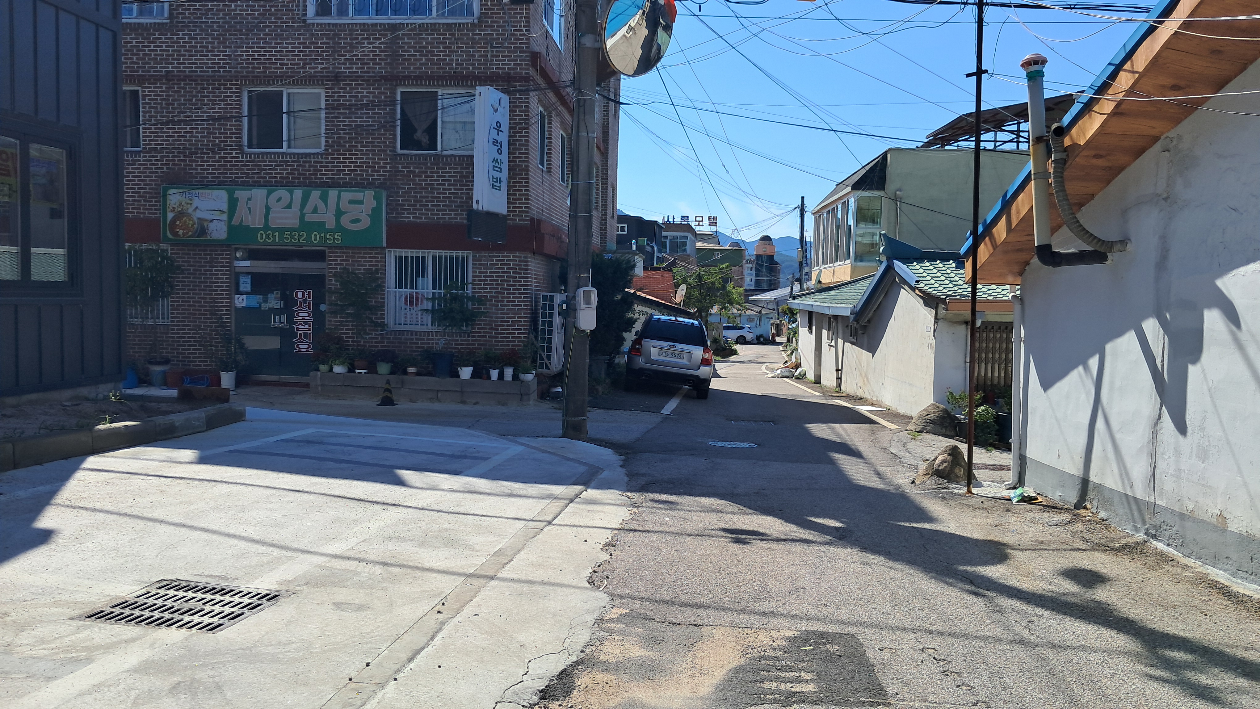 시내 도로를 따라 걸어가다가 운천파출소 전 골목길로 들어갑니다.