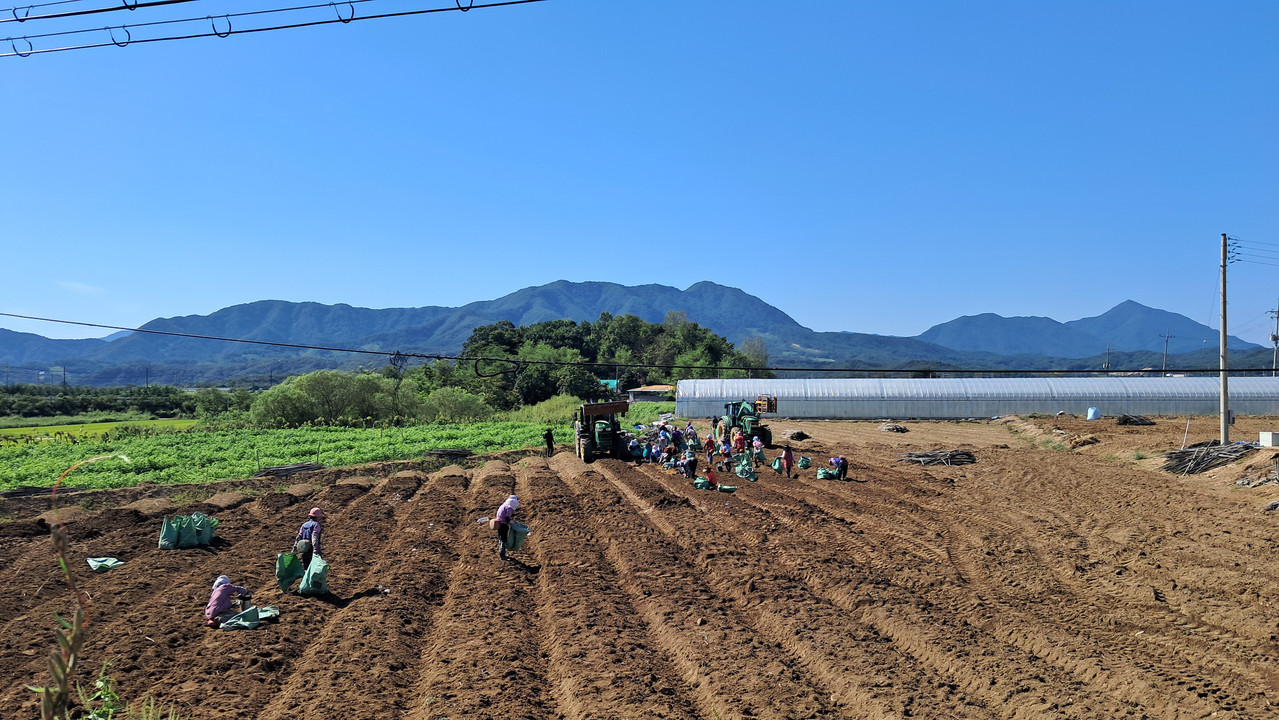 밭에서 오랜만에 많은 사람들이 일하고 있는 모습을 볼 수 있었습니다.