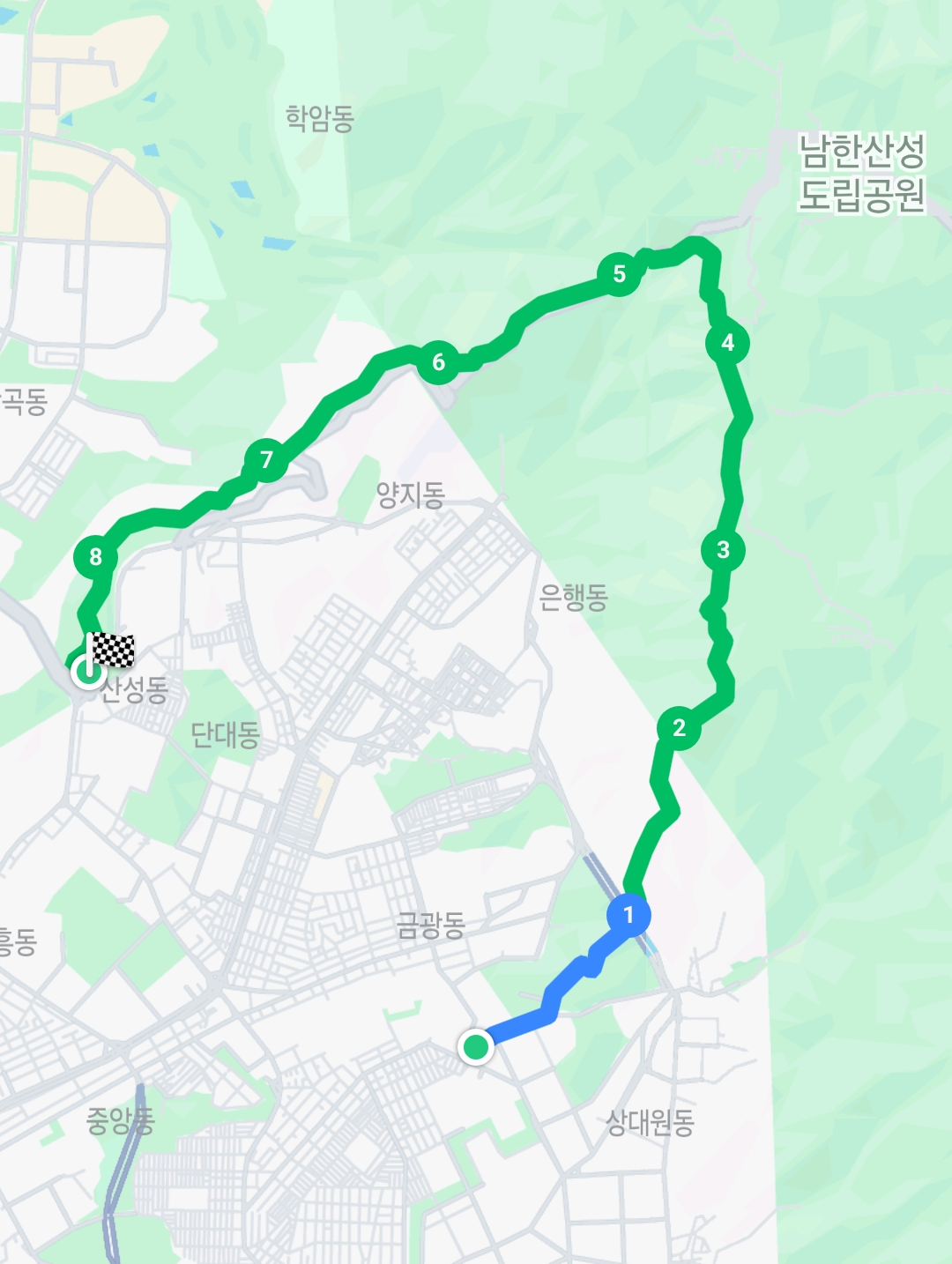 성남중원경찰서에서 시작해서 황송공원을 통해 남한산성 남문으로 향합니다.