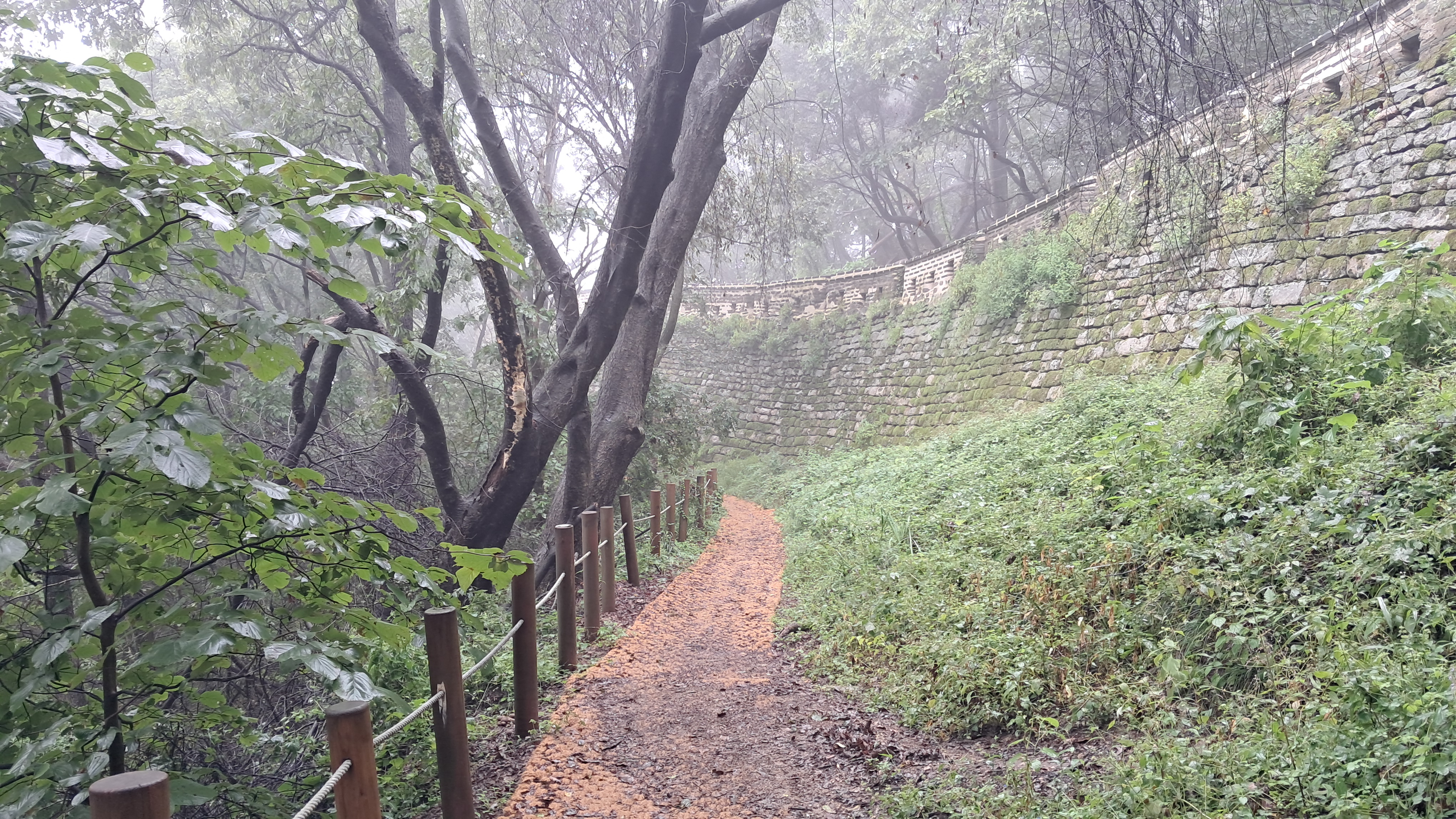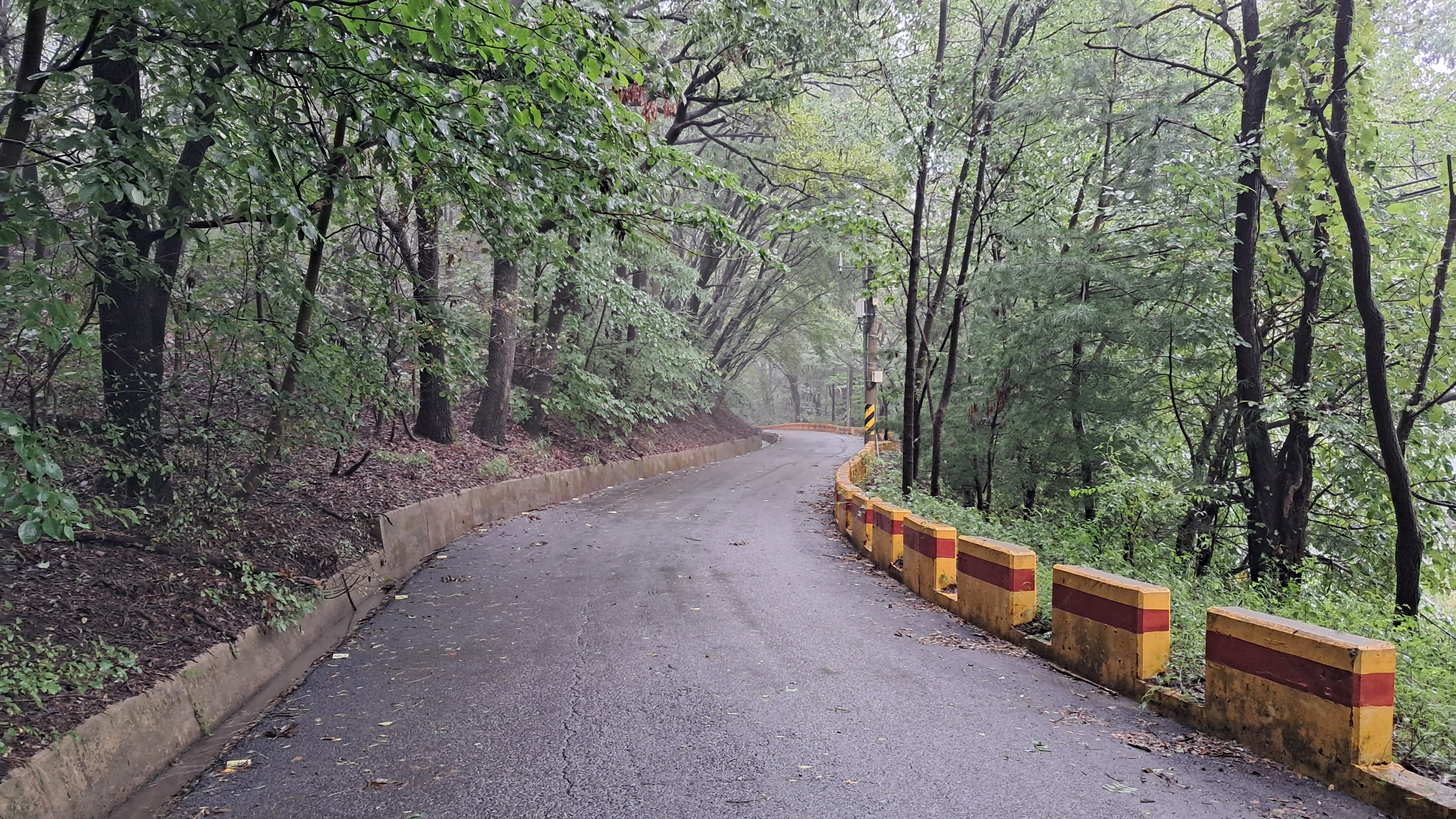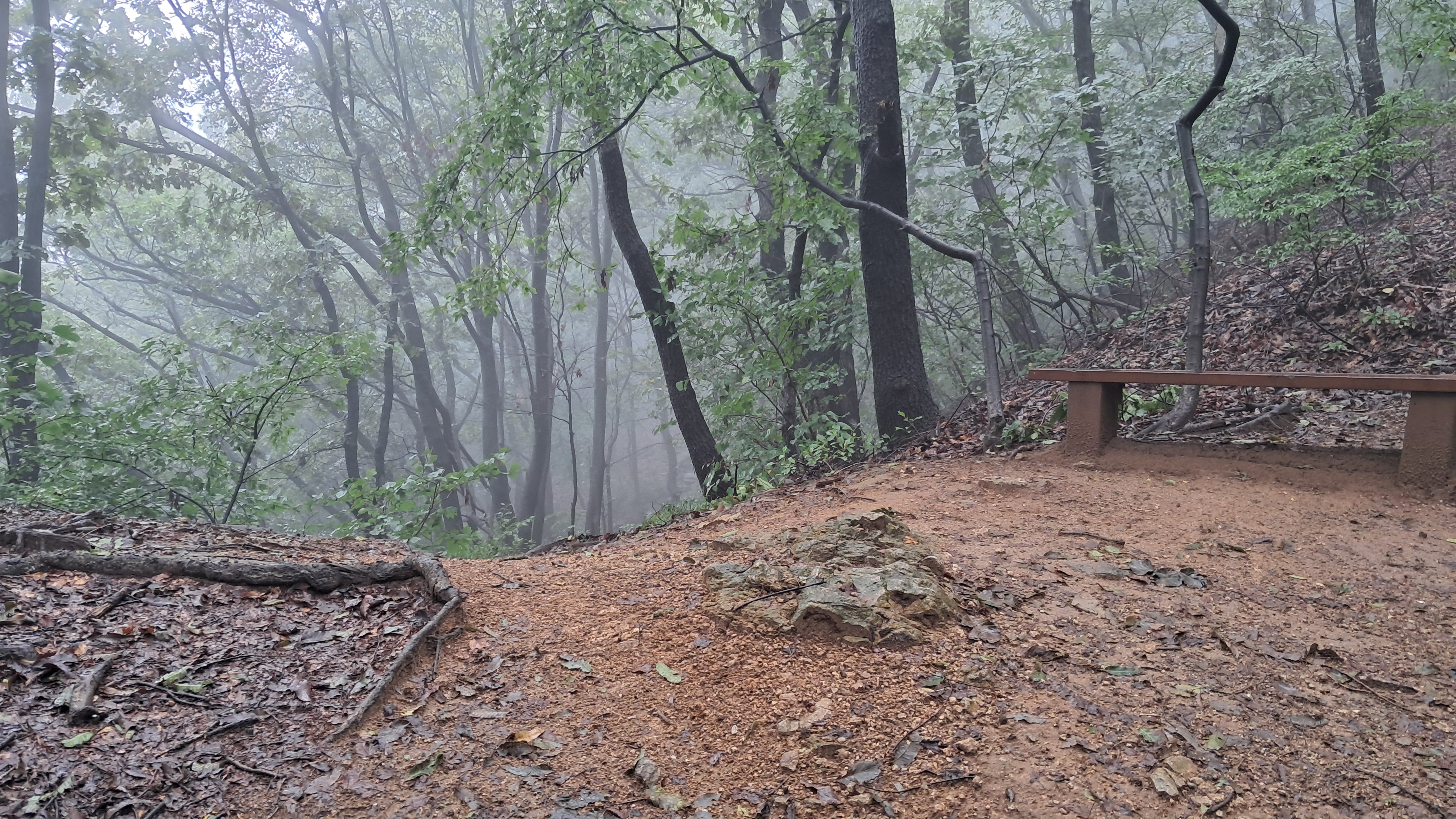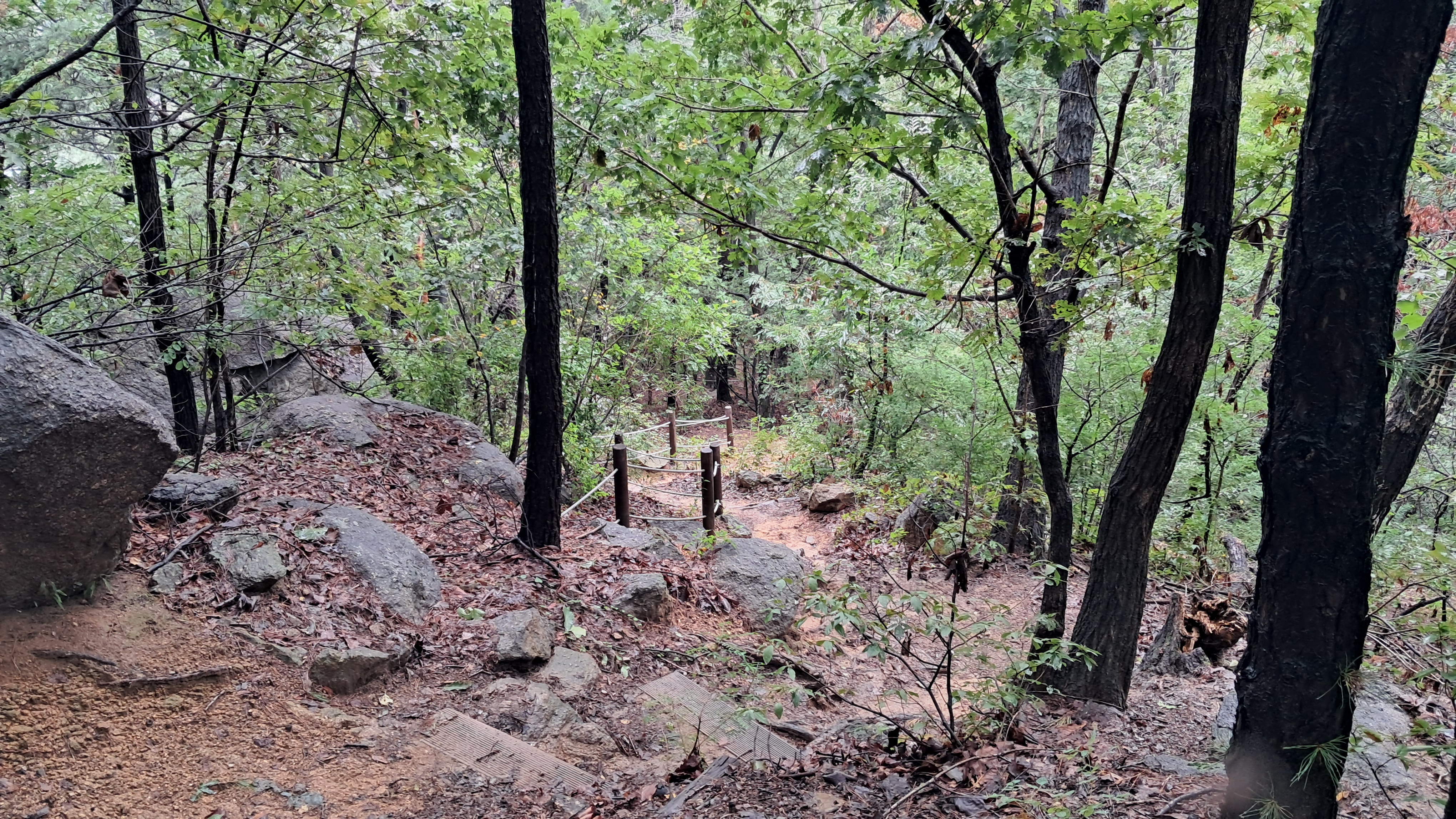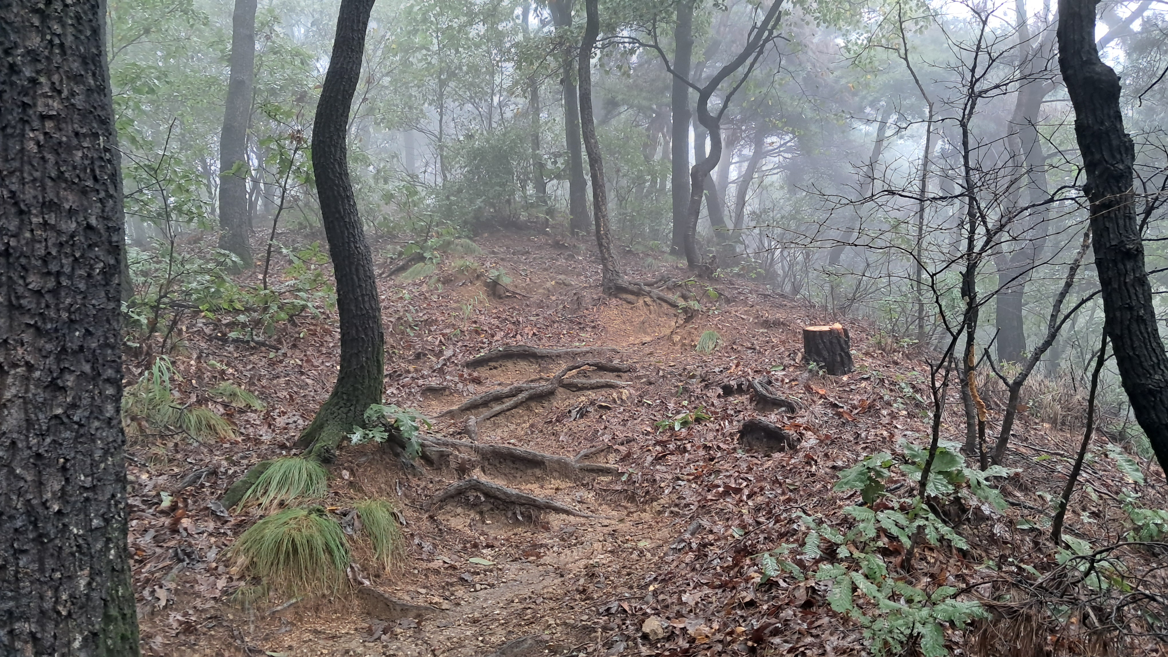 산길이 촉촉하게 젖어있어 걷기에 나쁘지 않습니다.
