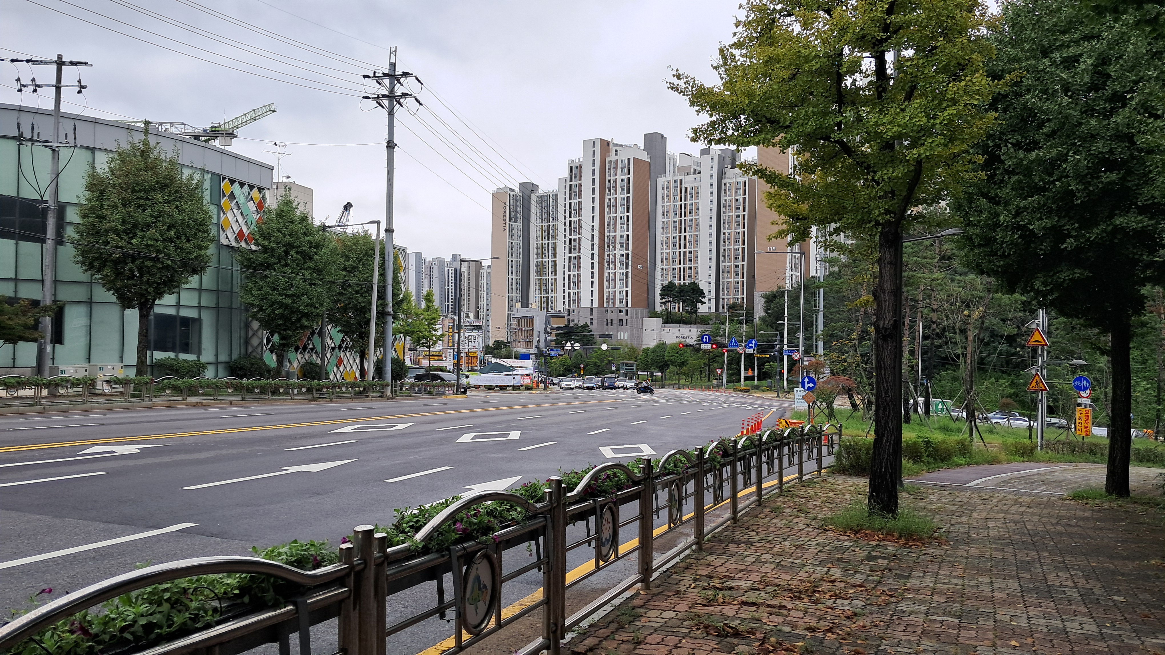 걷는 길은 도로를 피해 구획되어 있습니다.