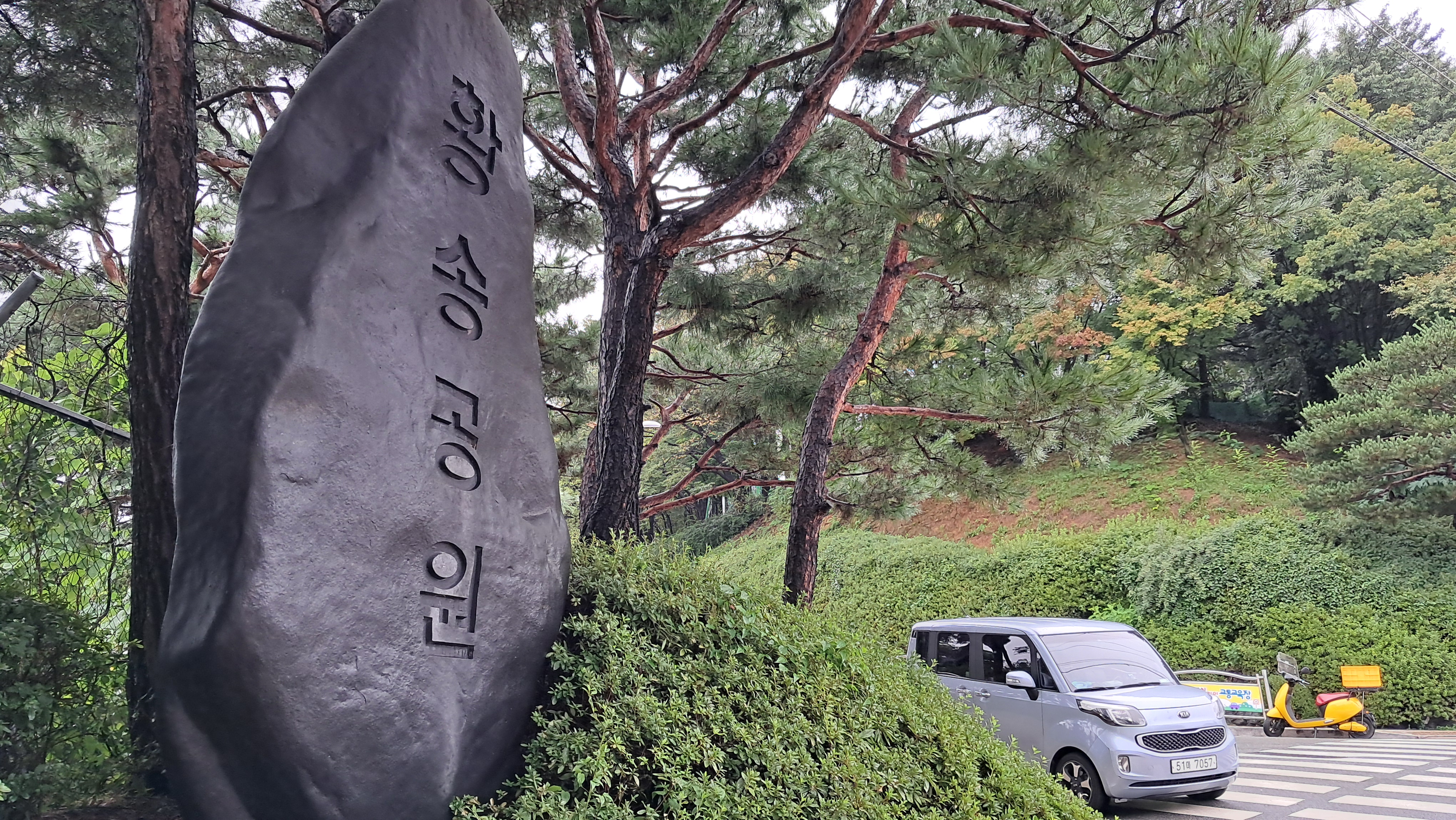 황송공원 입구에서 분수대를 따라 아래로 내려가면 주차장이 있습니다.