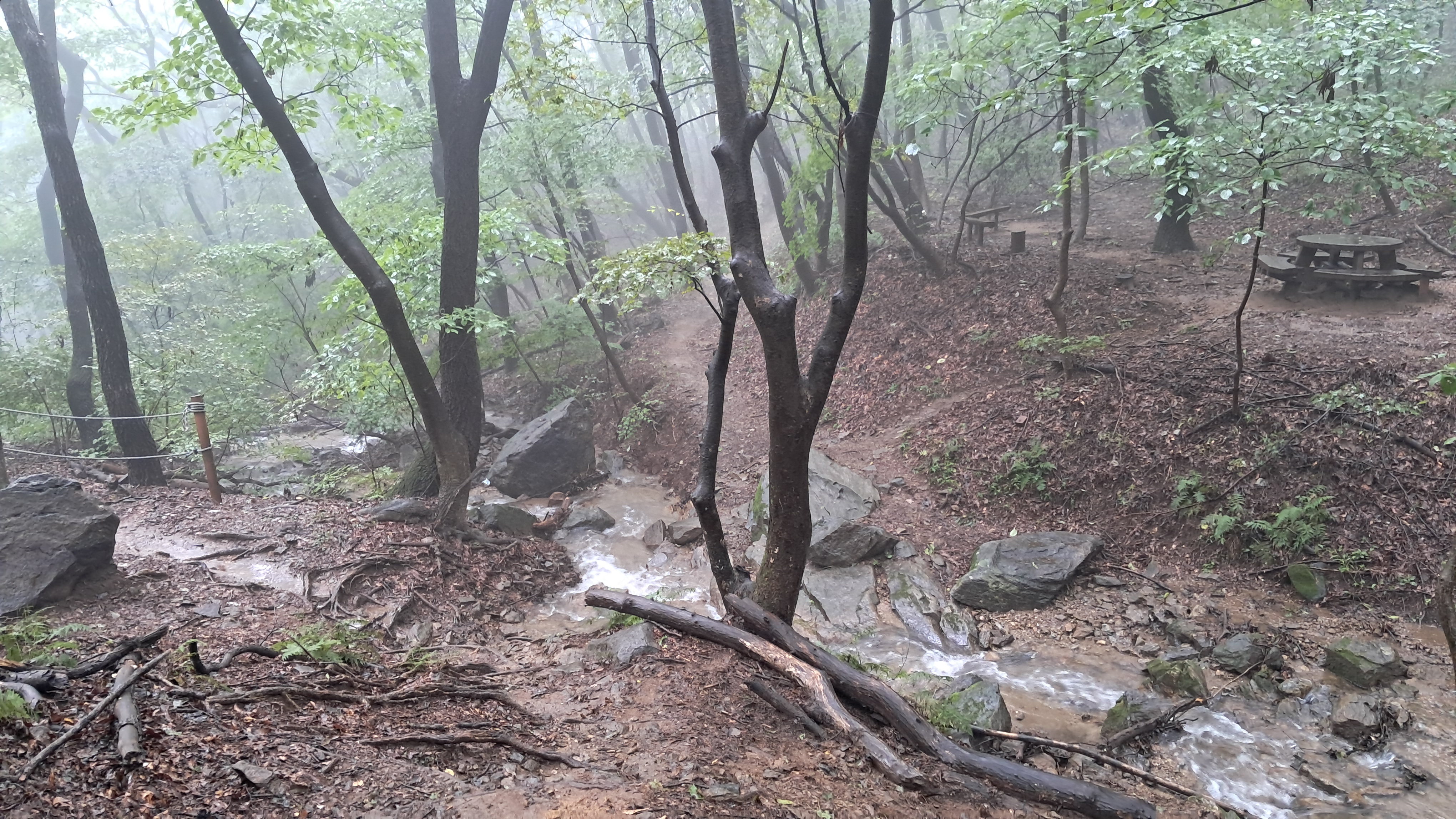 아직 하늘에는 구름이 많이 드리워져 있지만 산을 오를 때와는 달리 흩날리는 비는 그쳤습니다.
