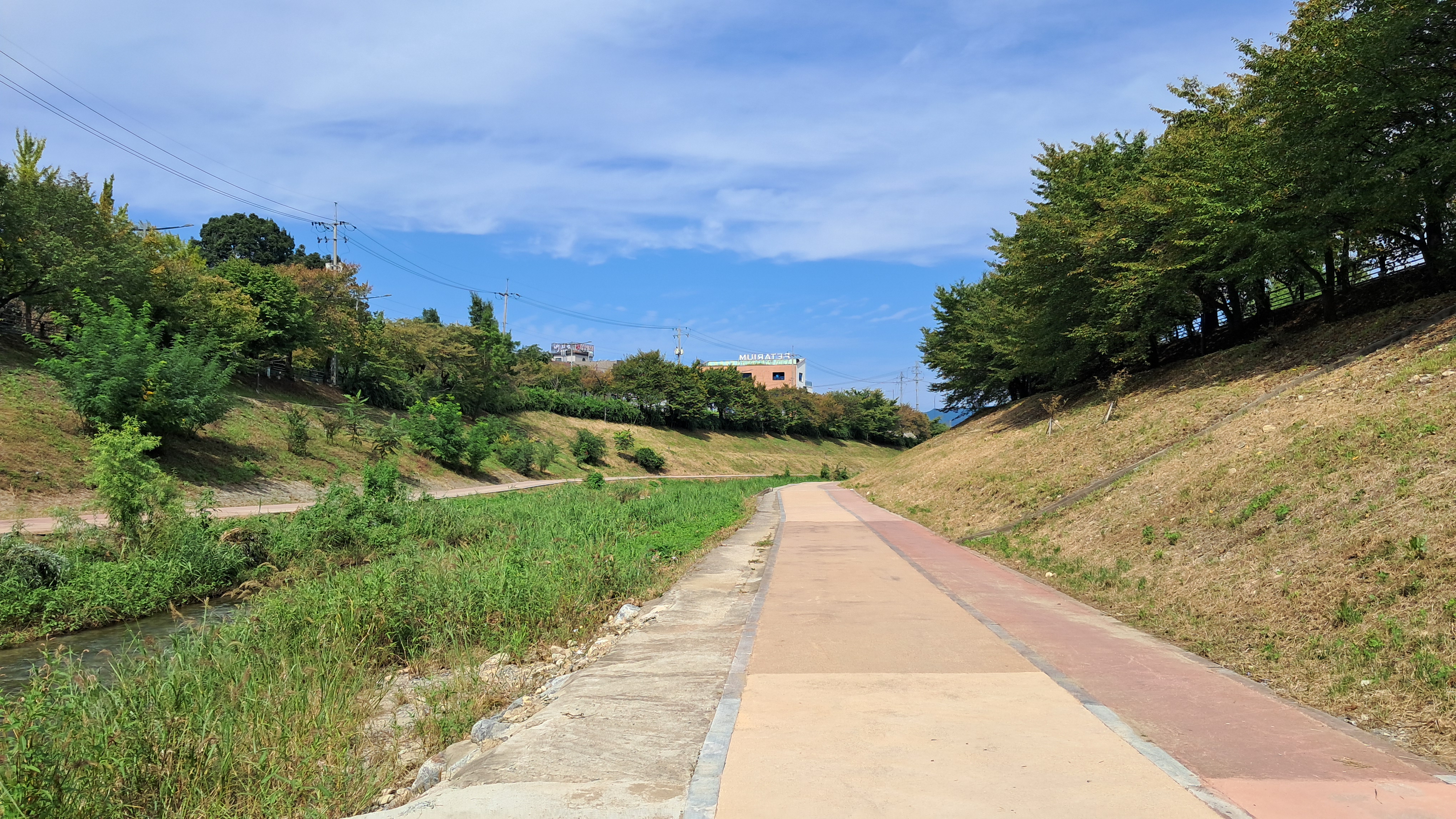 이제부터 잘 정비되어 있는 하천옆 산책로를 따라서 걷습니다.