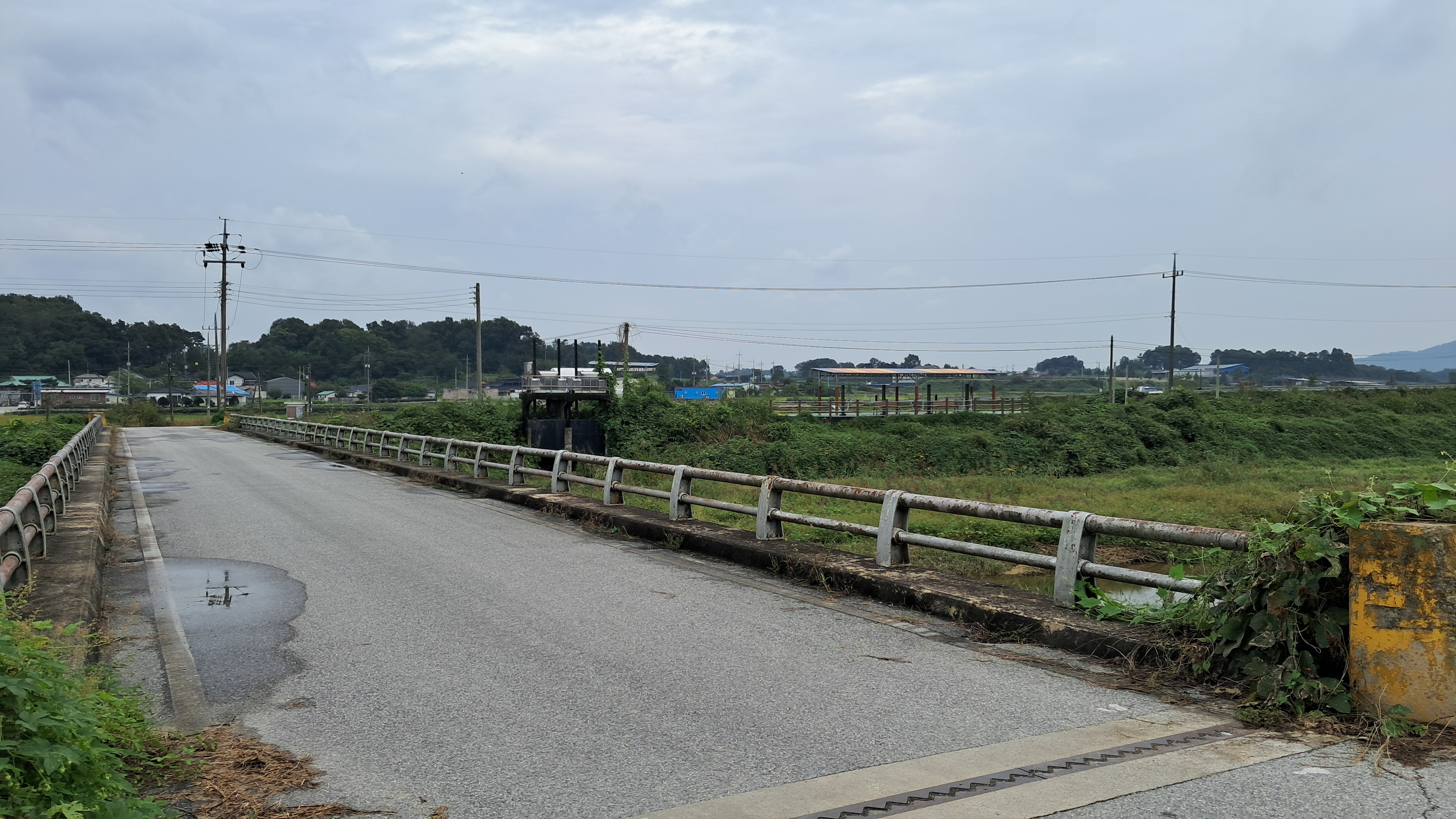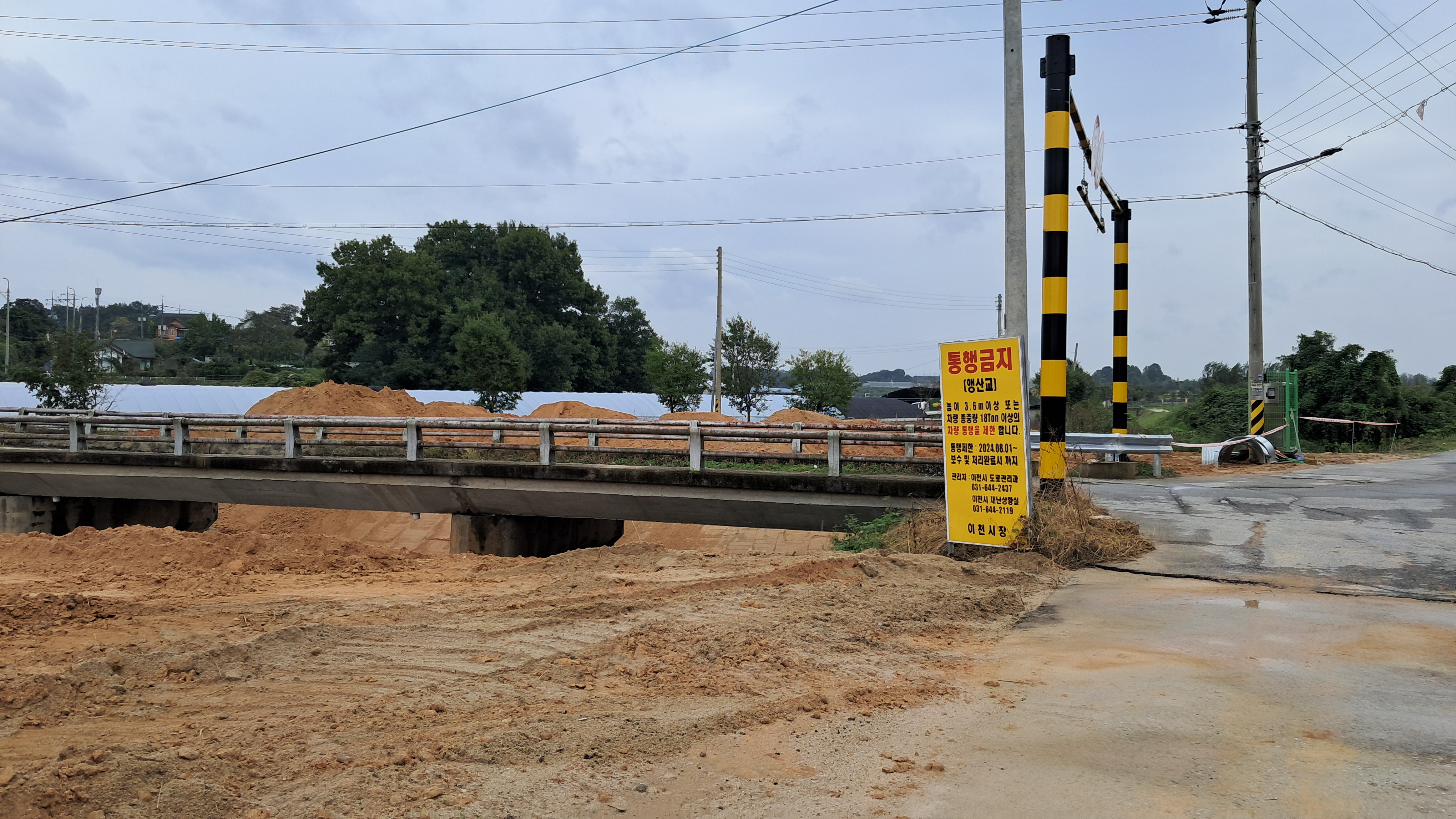 교량 공사가 진행 중인 곳에서 다시 하천을 넘습니다.