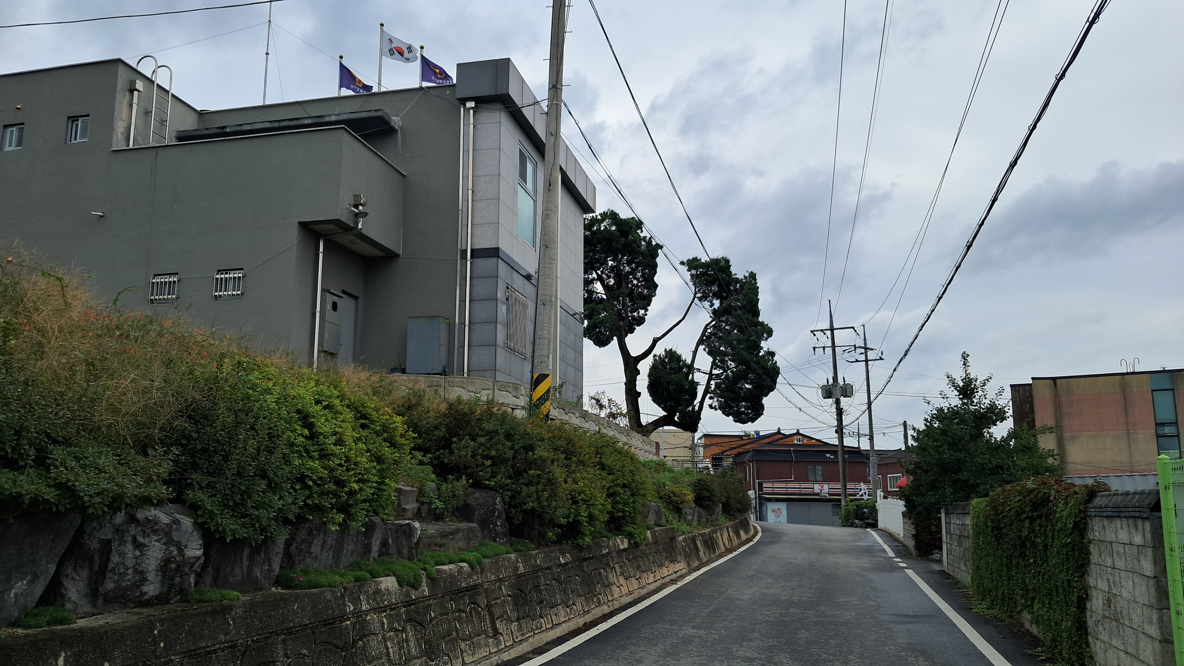 커다란 향나무가 앞에 서있는 파출소가 나옵니다.