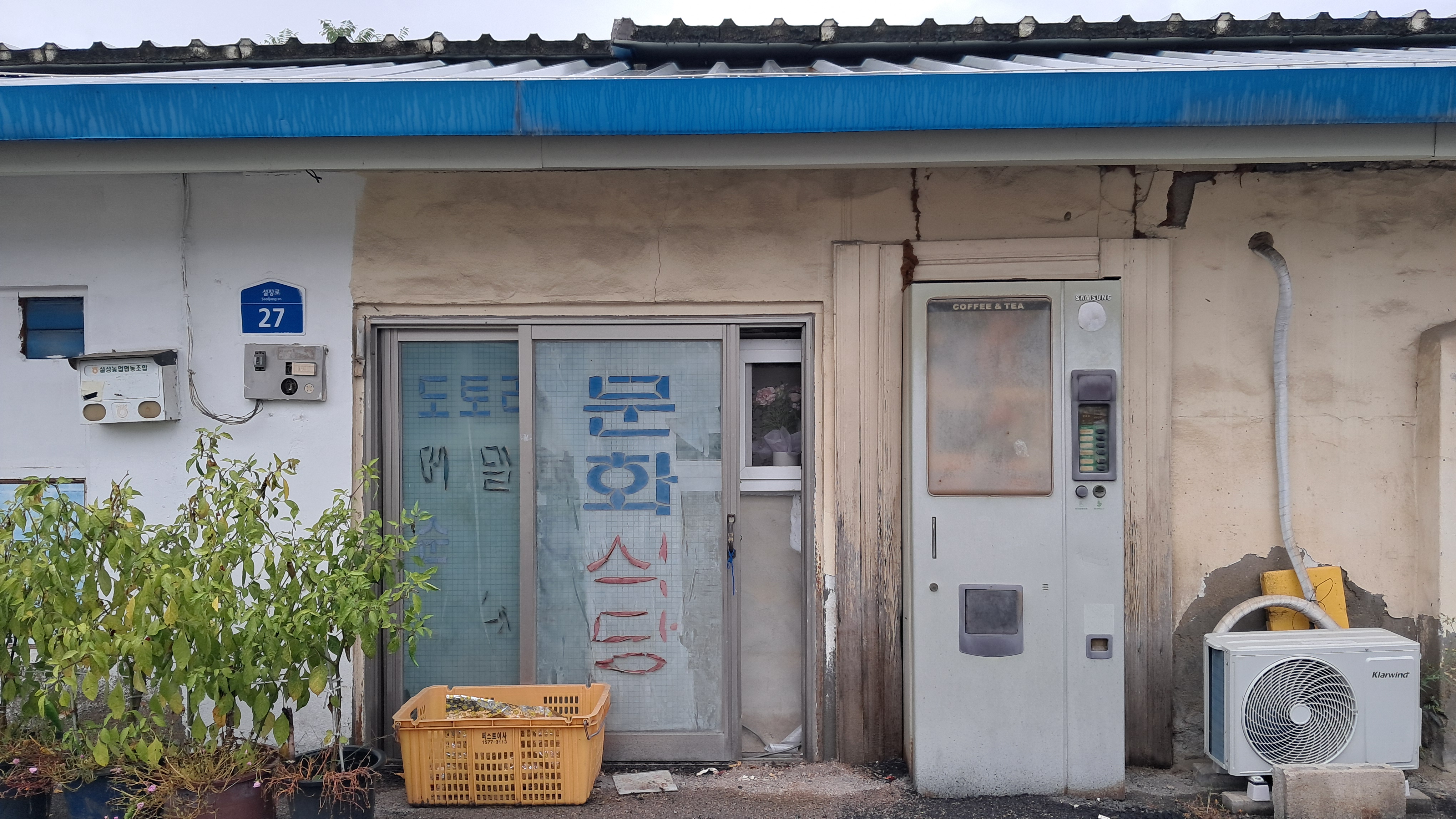 마을마다 으레 있는 농협창고 그리고 오래된 식당은 정겹습니다.