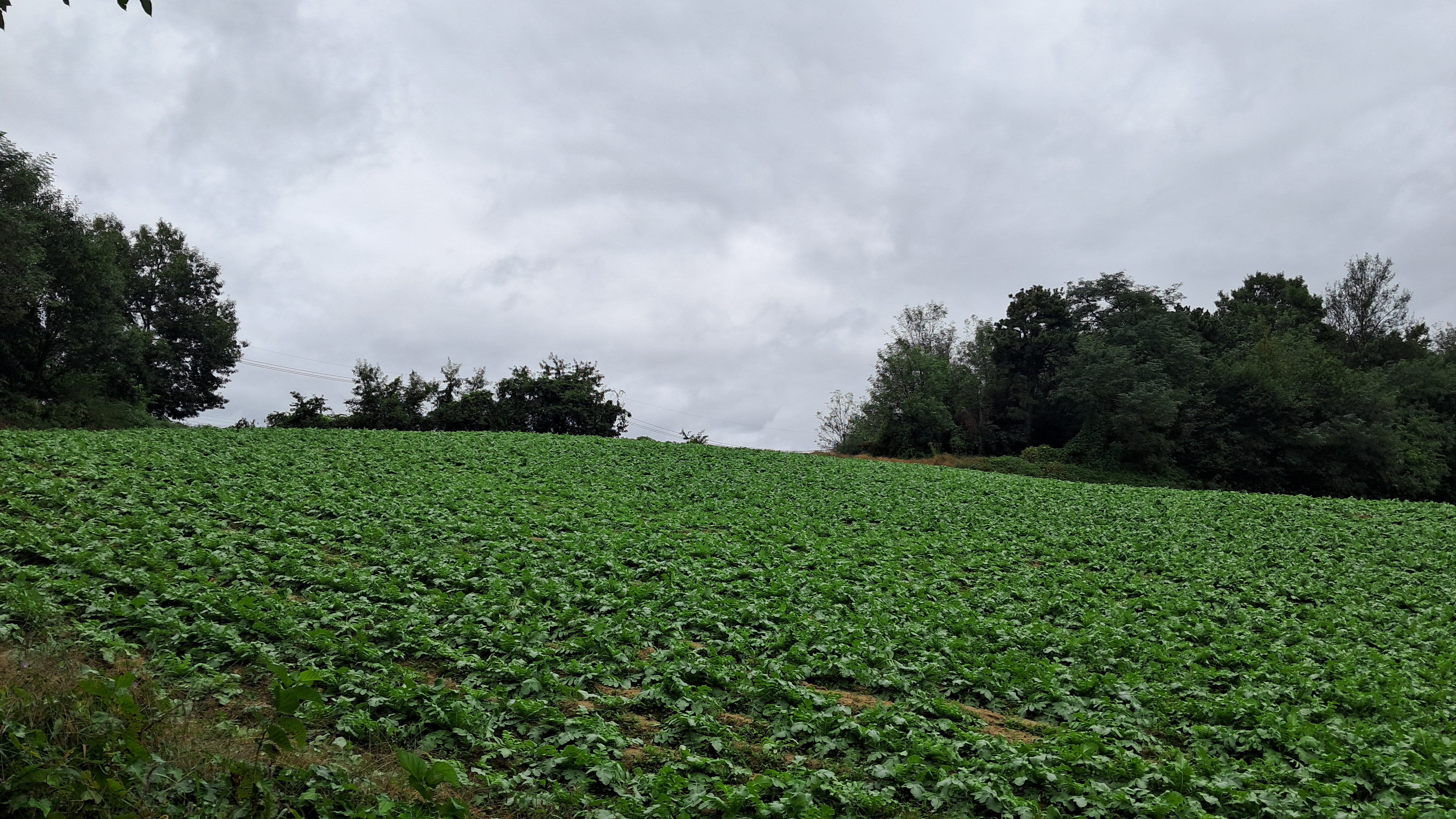 구릉지대의 넓은 밭은 온통 푸른 잎으로 가득합니다.