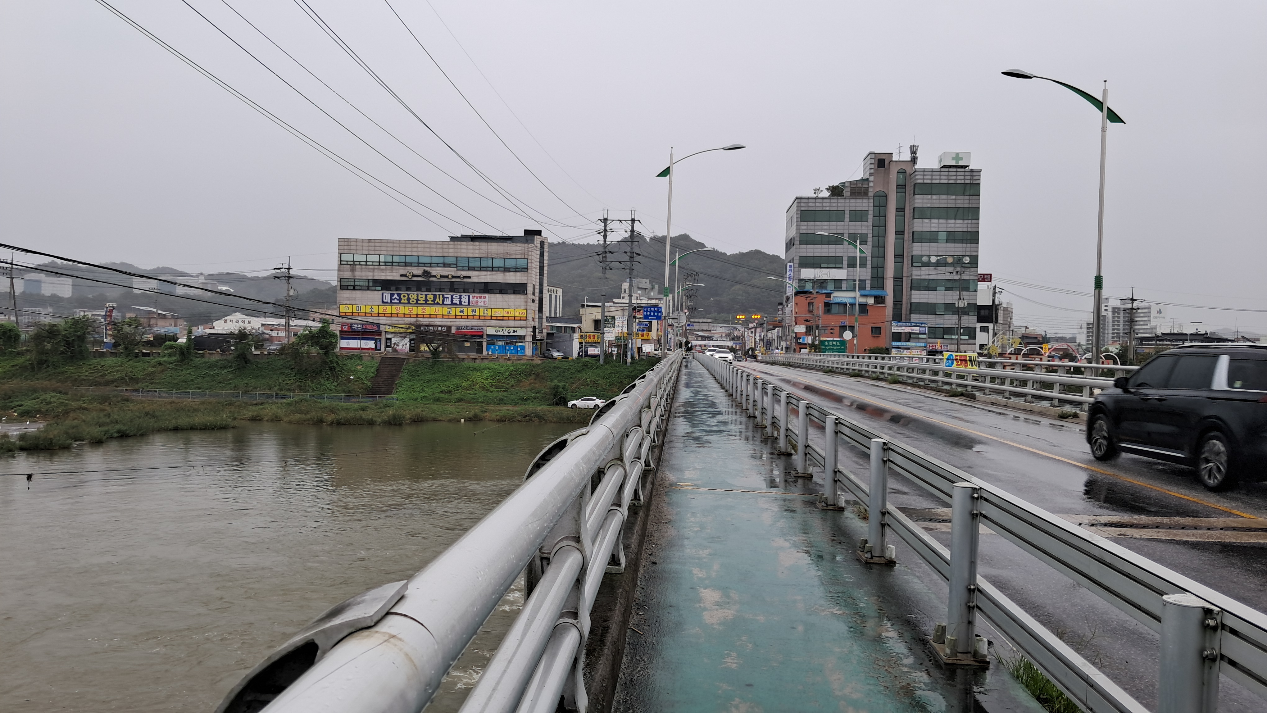 우산을 쓰고 이제 눈앞에 있는 청미교를 향해 갑니다.