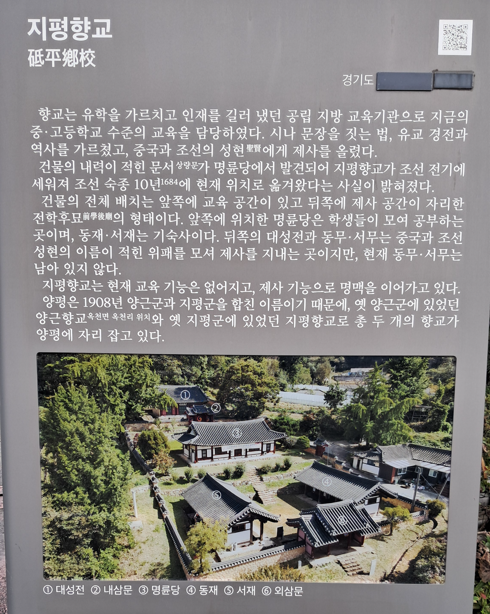 기념관에서 도로를 따라 조금 더 가면 지평향교가 위치해 있습니다.