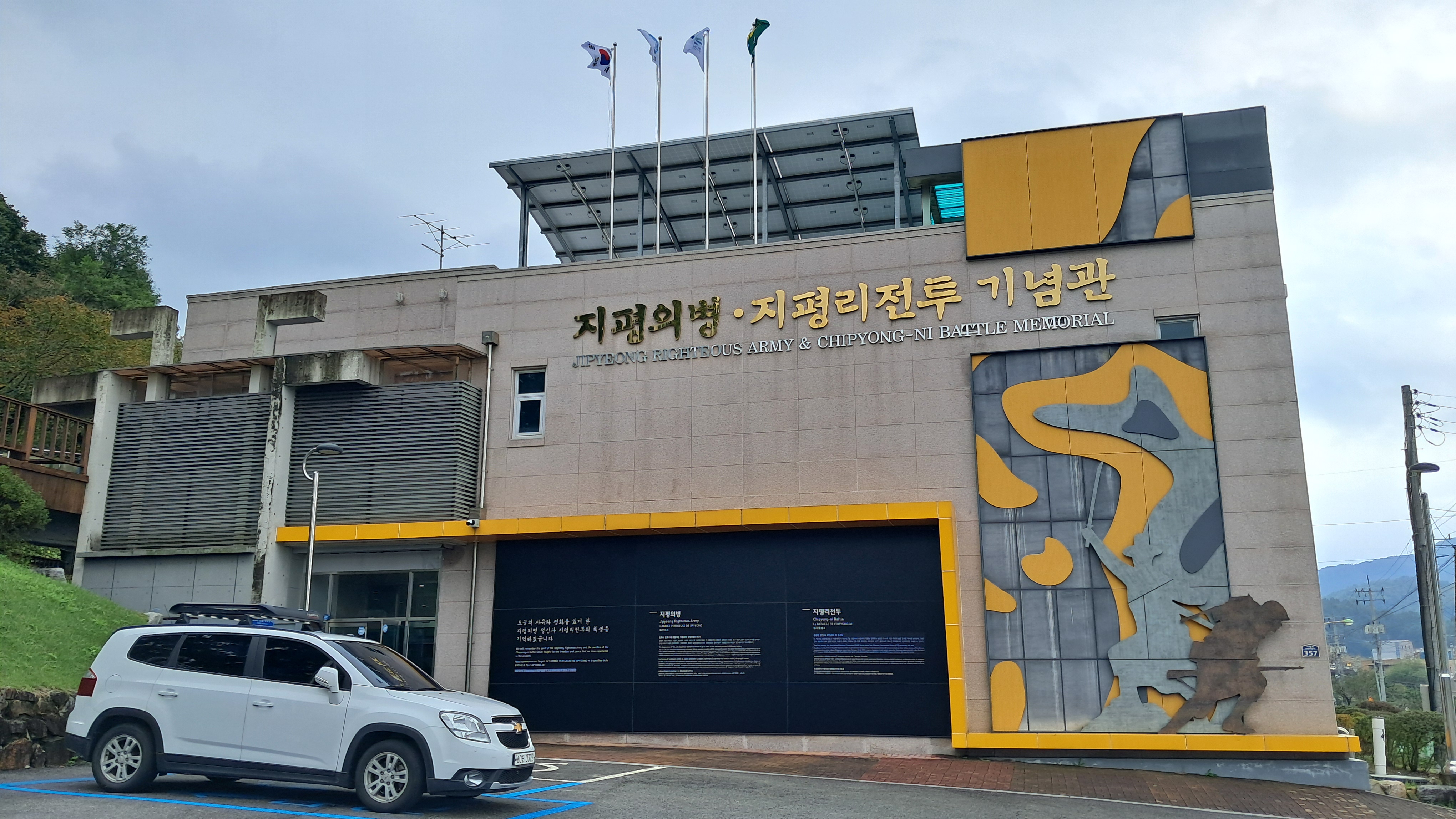지평시내에서 벗어나 지평로 도로를 따라서 가다 보면 우측에 넓은 주차장이 있고 전차가 전시되어 있는 지평의병지평리전투 기념관이 있습니다.