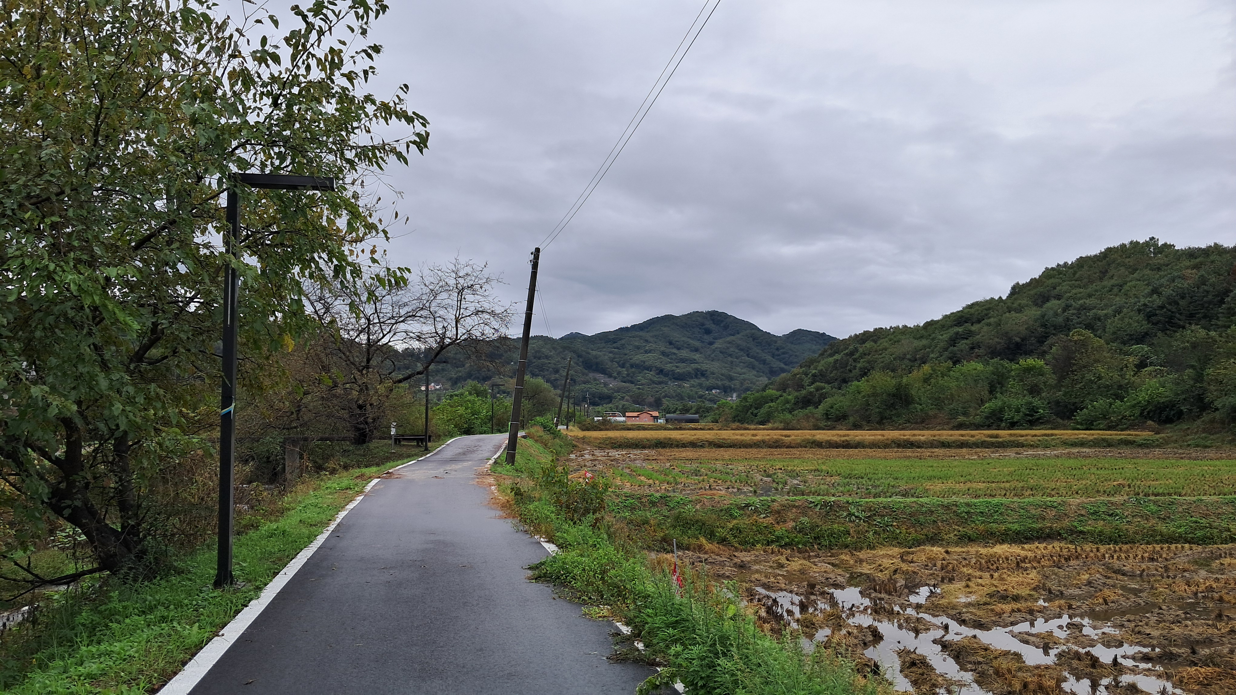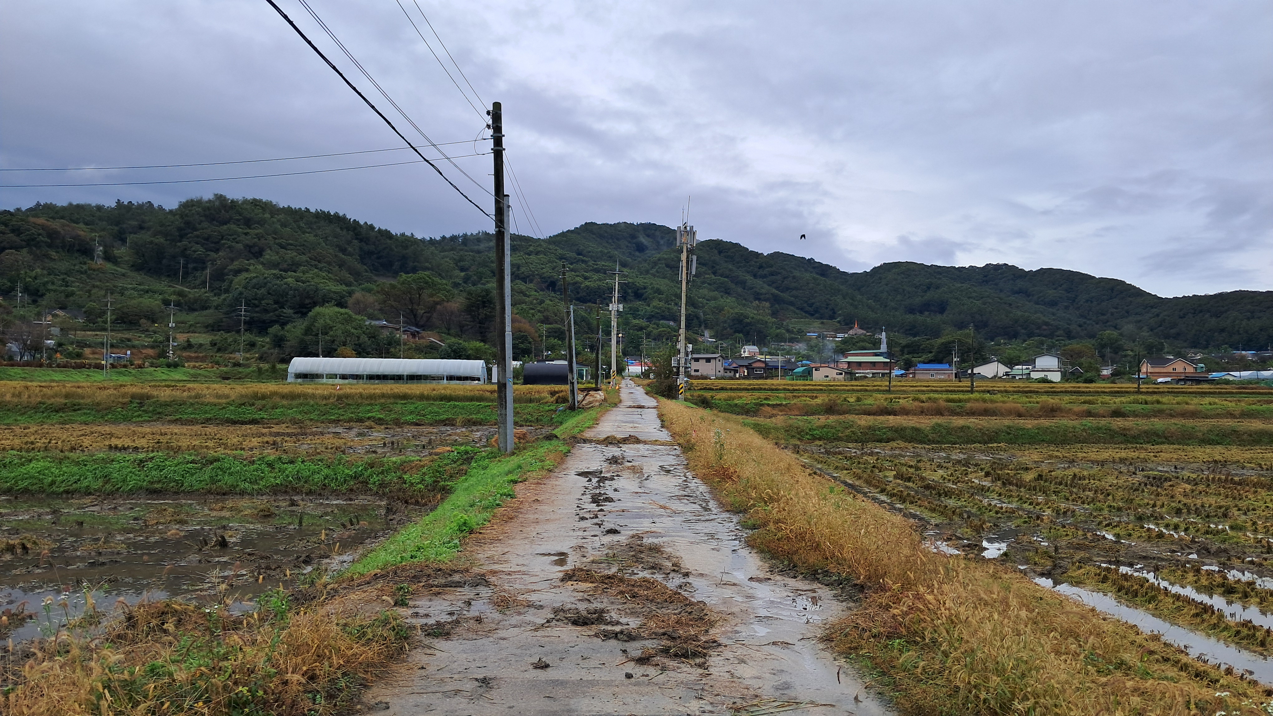 논이 양쪽으로 난 농로길은 이곳도 수확이 끝난 곳도 있고 그렇지 않은 곳도 있습니다.